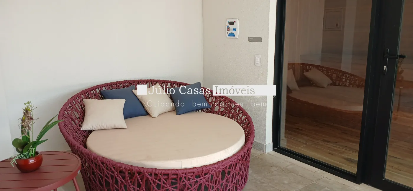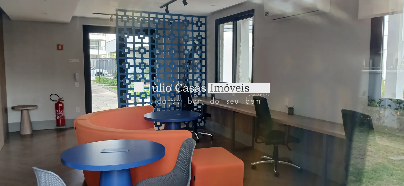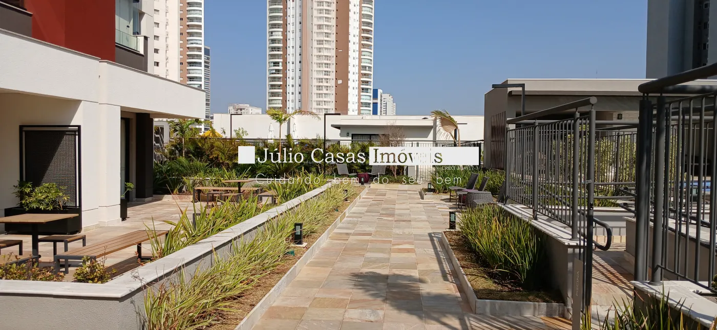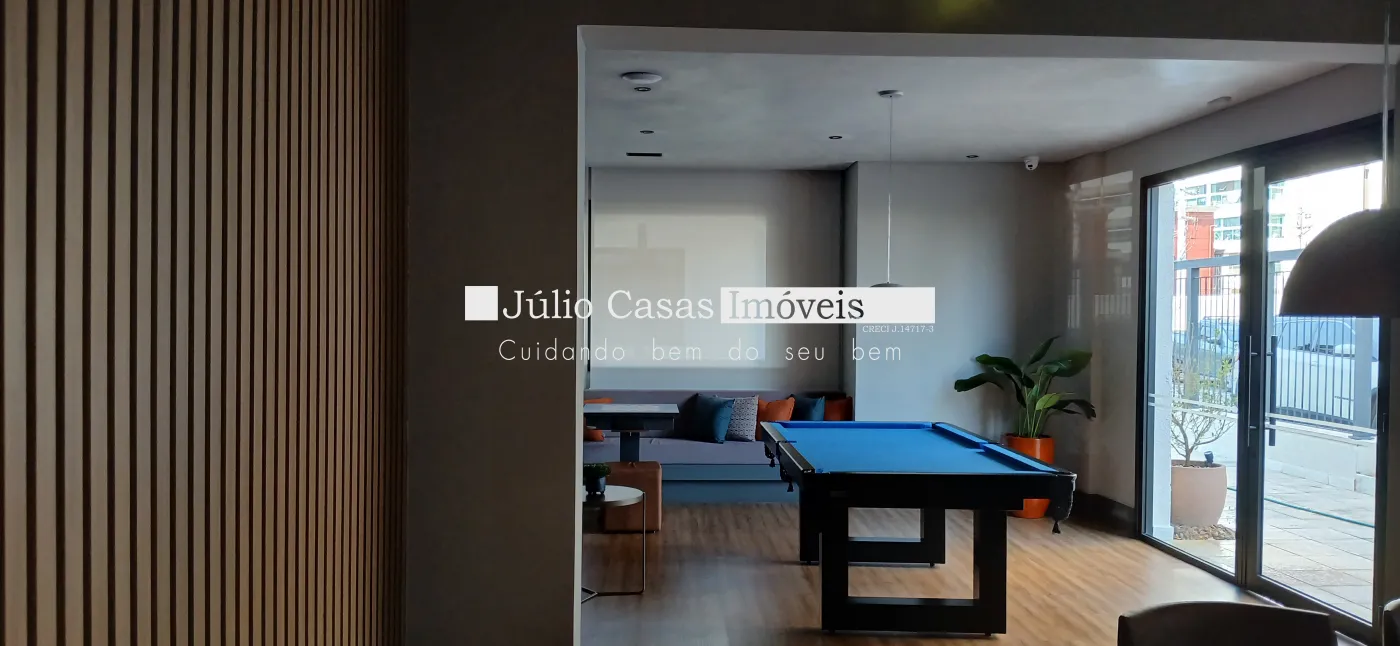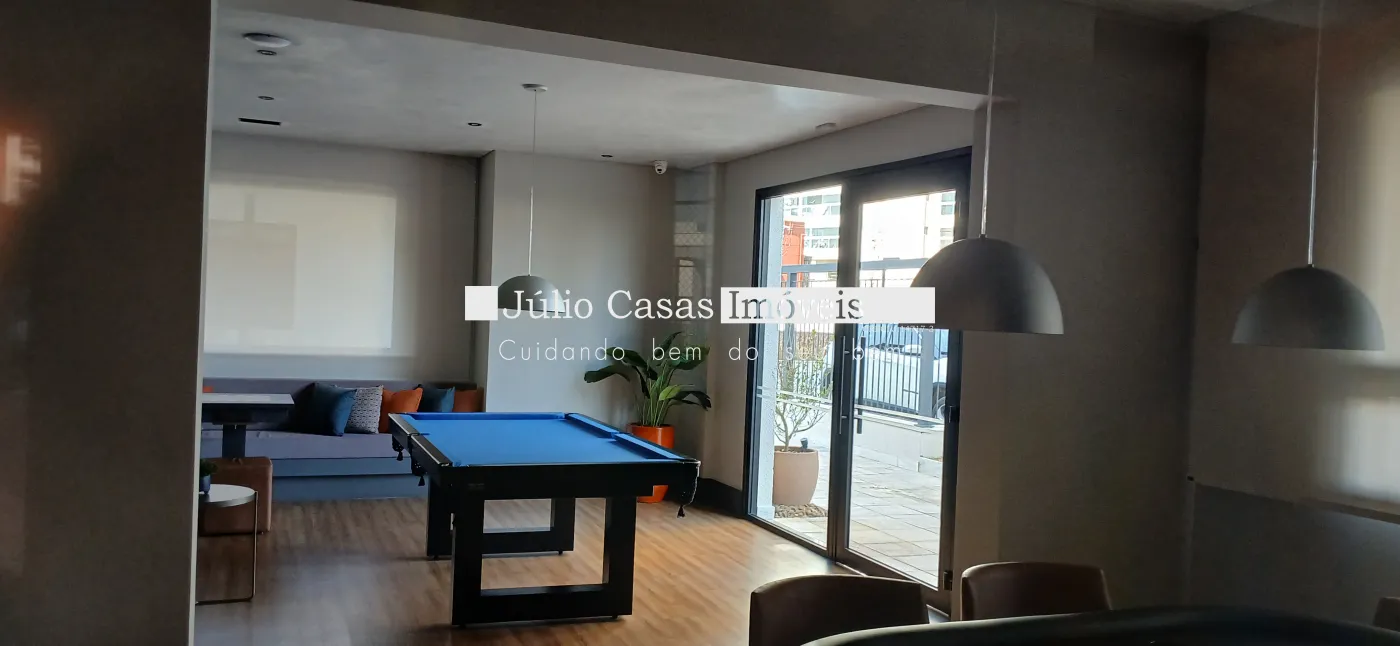 Flat de 44m², sala integrada, cozinha, área de serviço e varanda gourmet. Conta com fechadura biométrica, depósito privativo e vaga de garagem com ponto para recarga de carro elétrico.