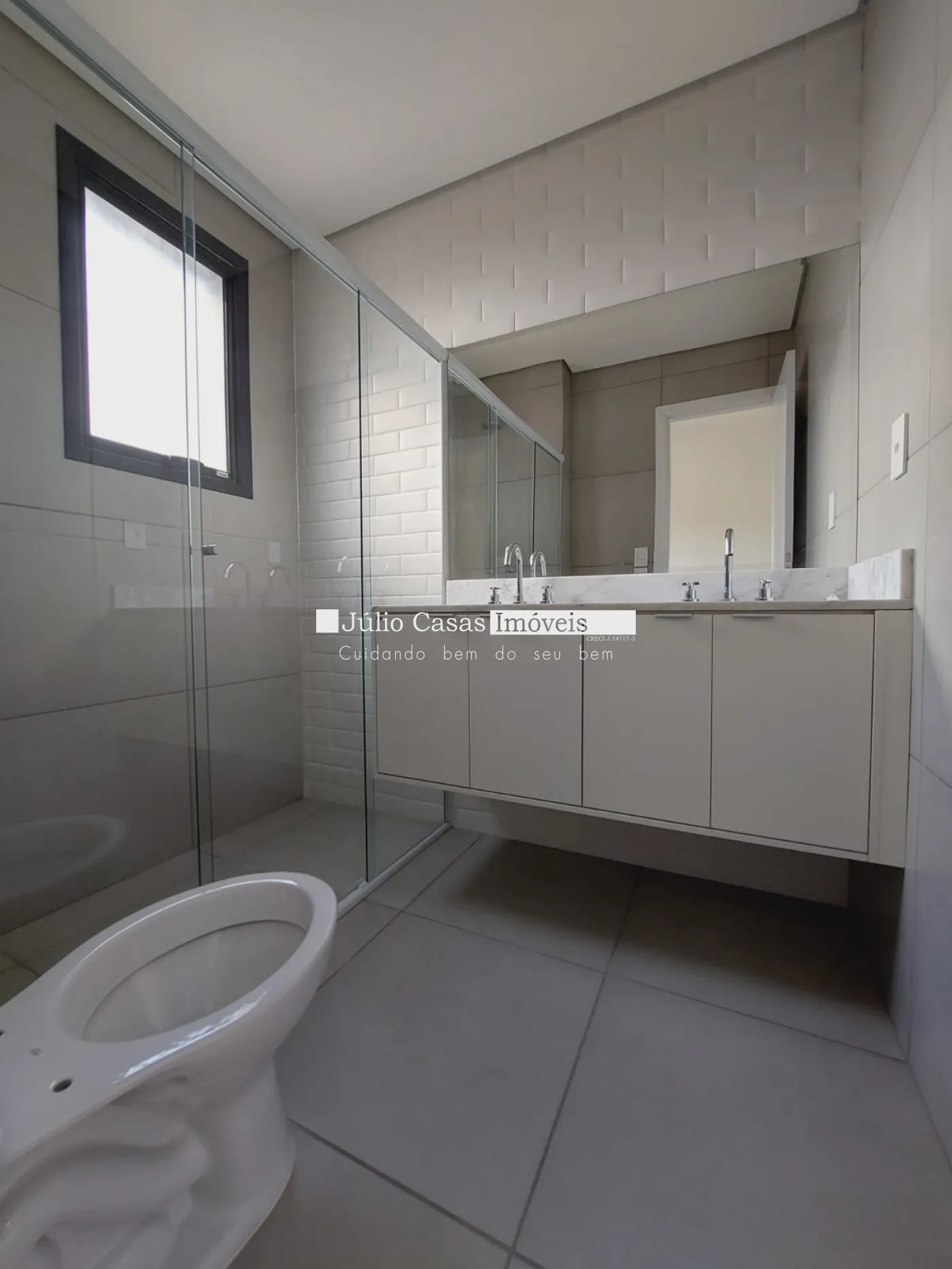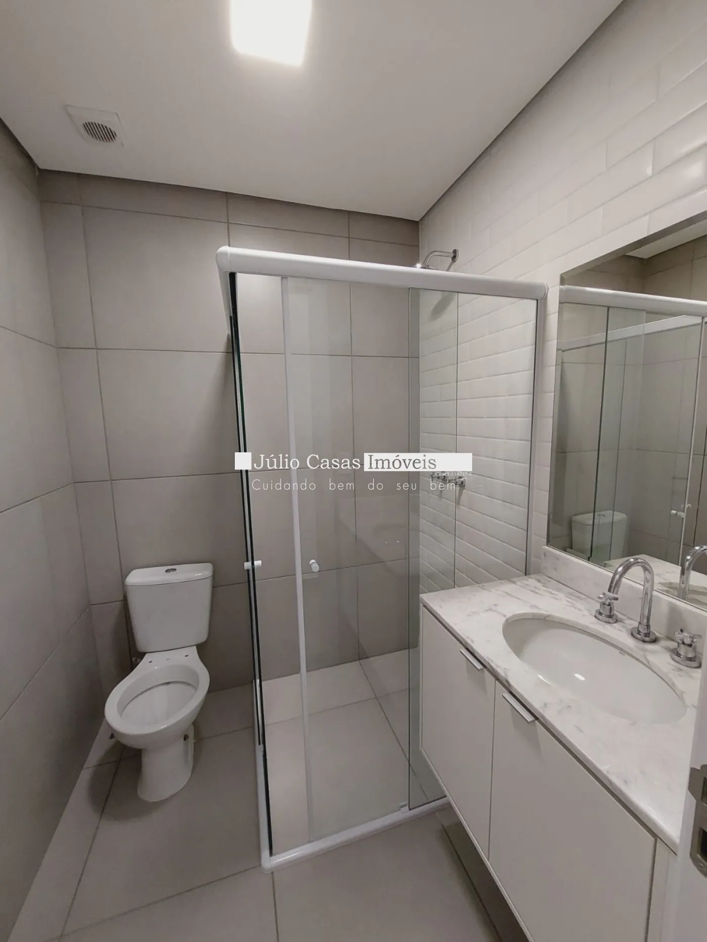 Banheiro Social: Equipado com armários e box instalados, garantindo conforto e privacidade.