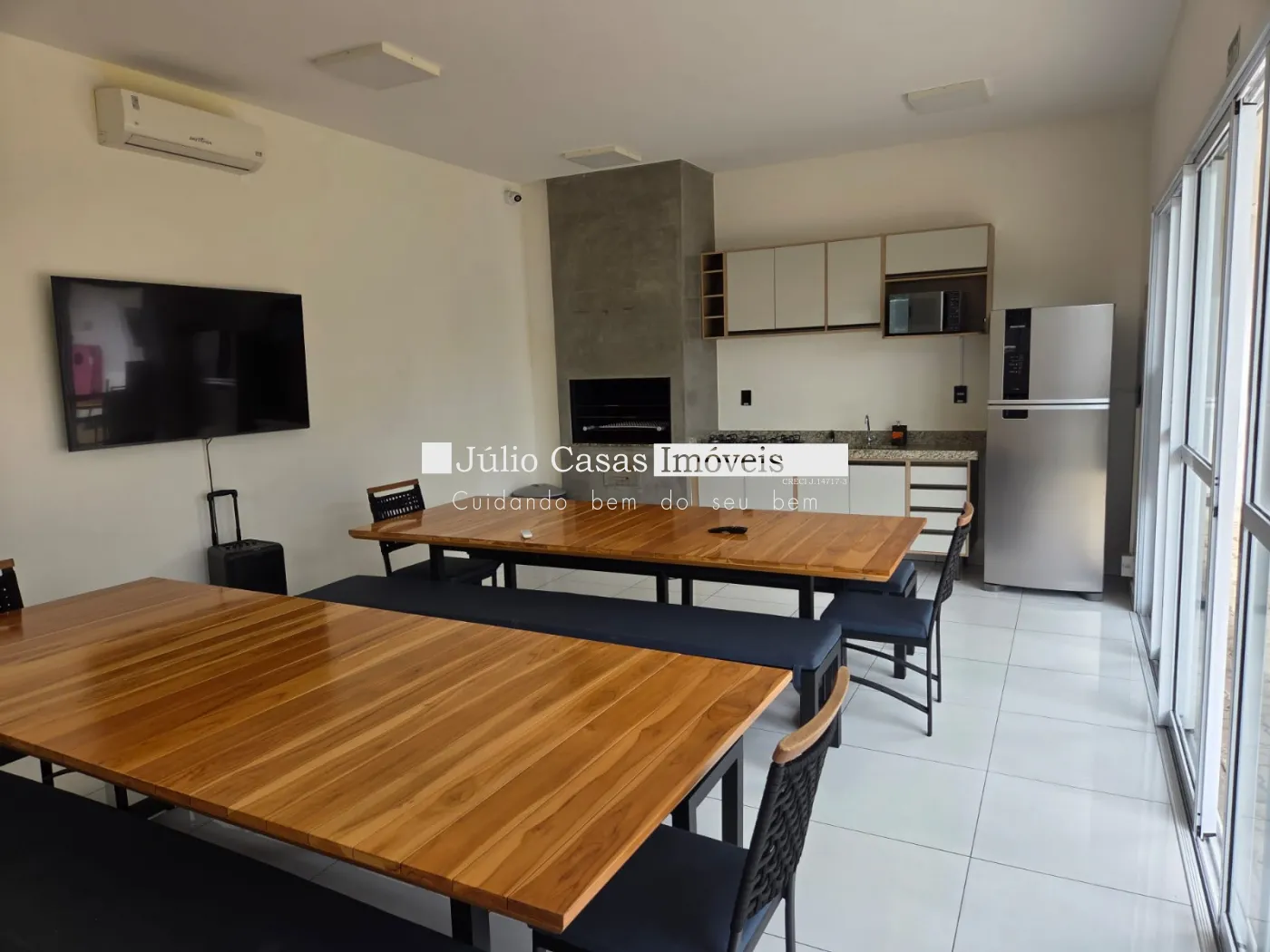 Apartamento com sala , varanda gourmet, cozinha com armários, pia em granito, área de serviço, 2 quartos. wc social . todo em piso e revestimento em porcelanato, 1 vaga de garagem coberta. Bairro com grande infraestrutura em comércios, escolas, farmácias, Shopping, restaurantes . Condomínio com piscina adulto e infantil, academia, playground, salão de festas, salão de jogos, quadra poliesportiva, piscina coberta, portaria 24 horas remota.