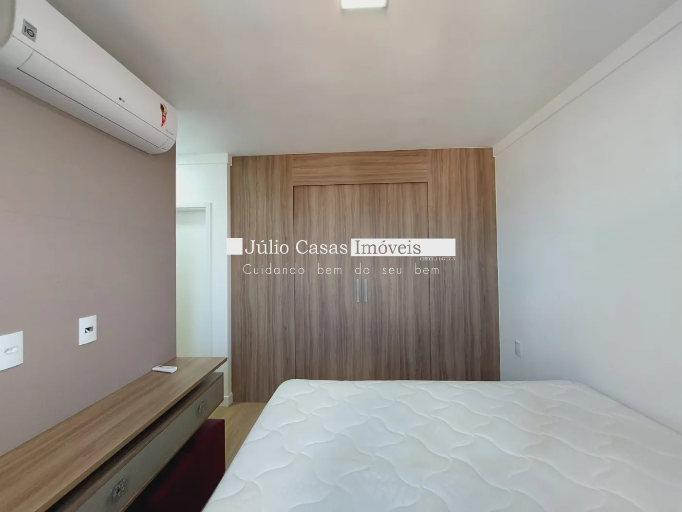 3 quartos modulados e equipados com camas, 1 sendo suíte com amplo closet.