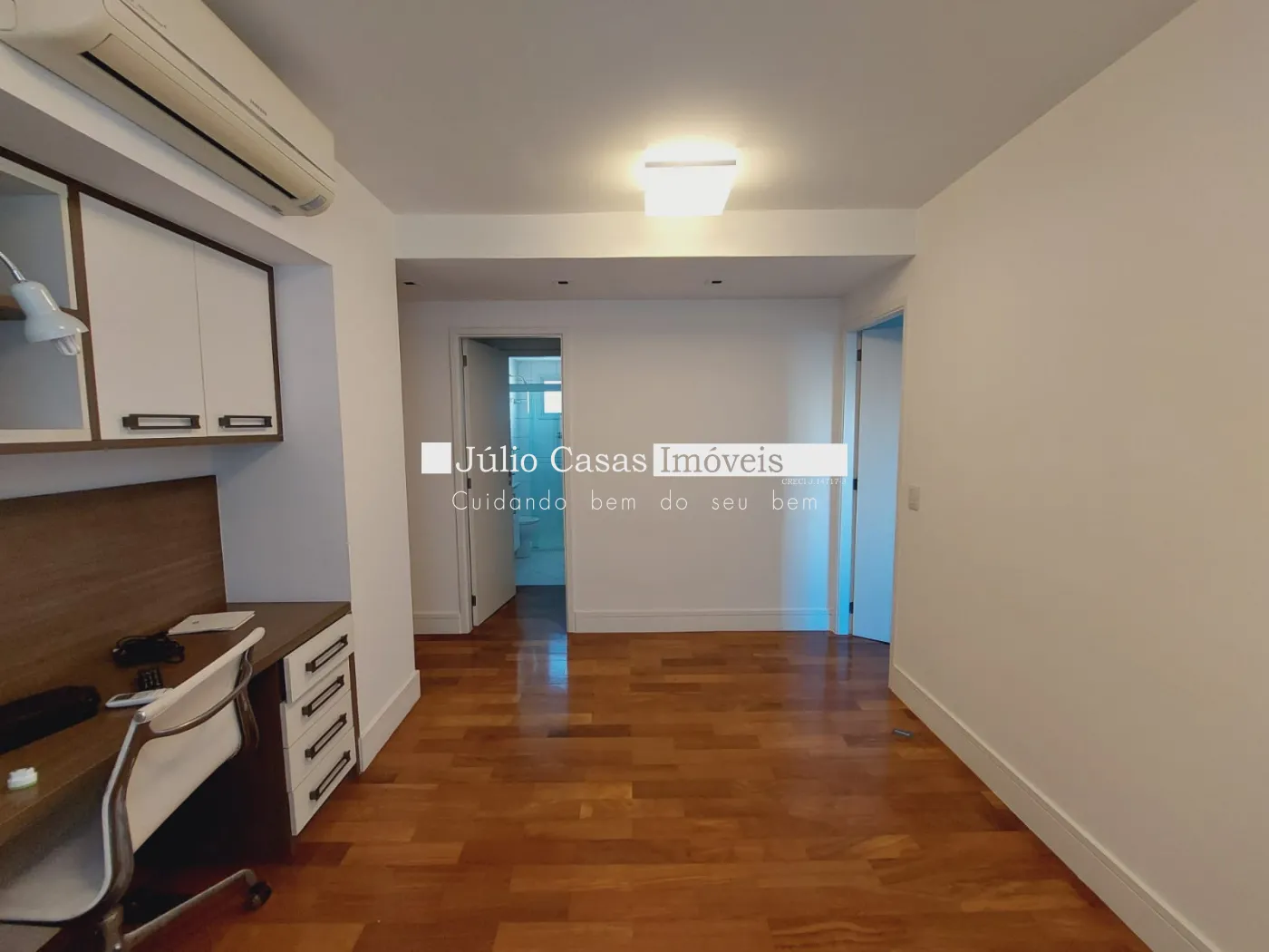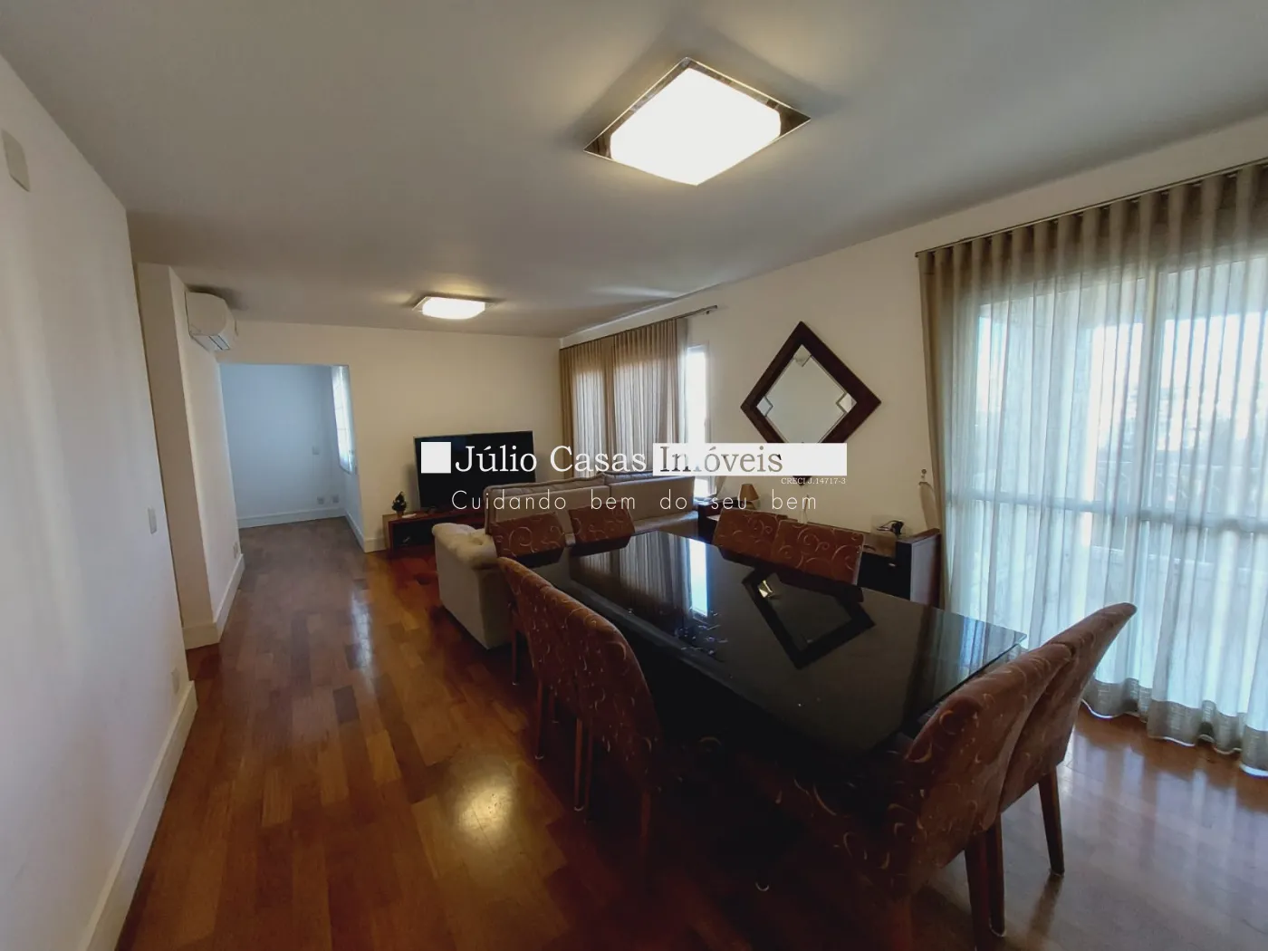 Apartamento de alto padrão com 161m² de área construída localizado na região do Campolim contendo sala para 2 ambientes, lavabo com fino acabamento, acesso a varanda gourmet toda equipada com vista panorâmica, cozinha com modulados e utensílios domésticos, lavanderia, despensa e 1 banheiro de empregados, aconchegante escritório, área de circulação interna com acesso a 3 suítes, sendo 1 delas máster, todas equipadas com camas e armários embutidos. Nas áreas quentes assoalho de madeira maciça e nas áreas frias piso em porcelanato. 3 vagas de garagem cobertas com depósito. Elevador privativo.