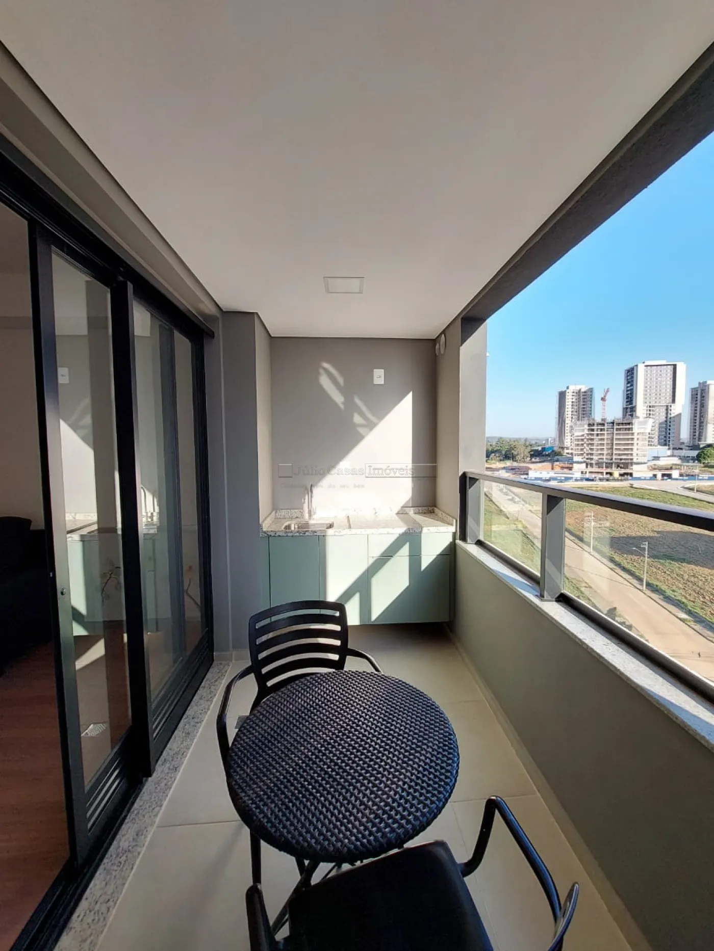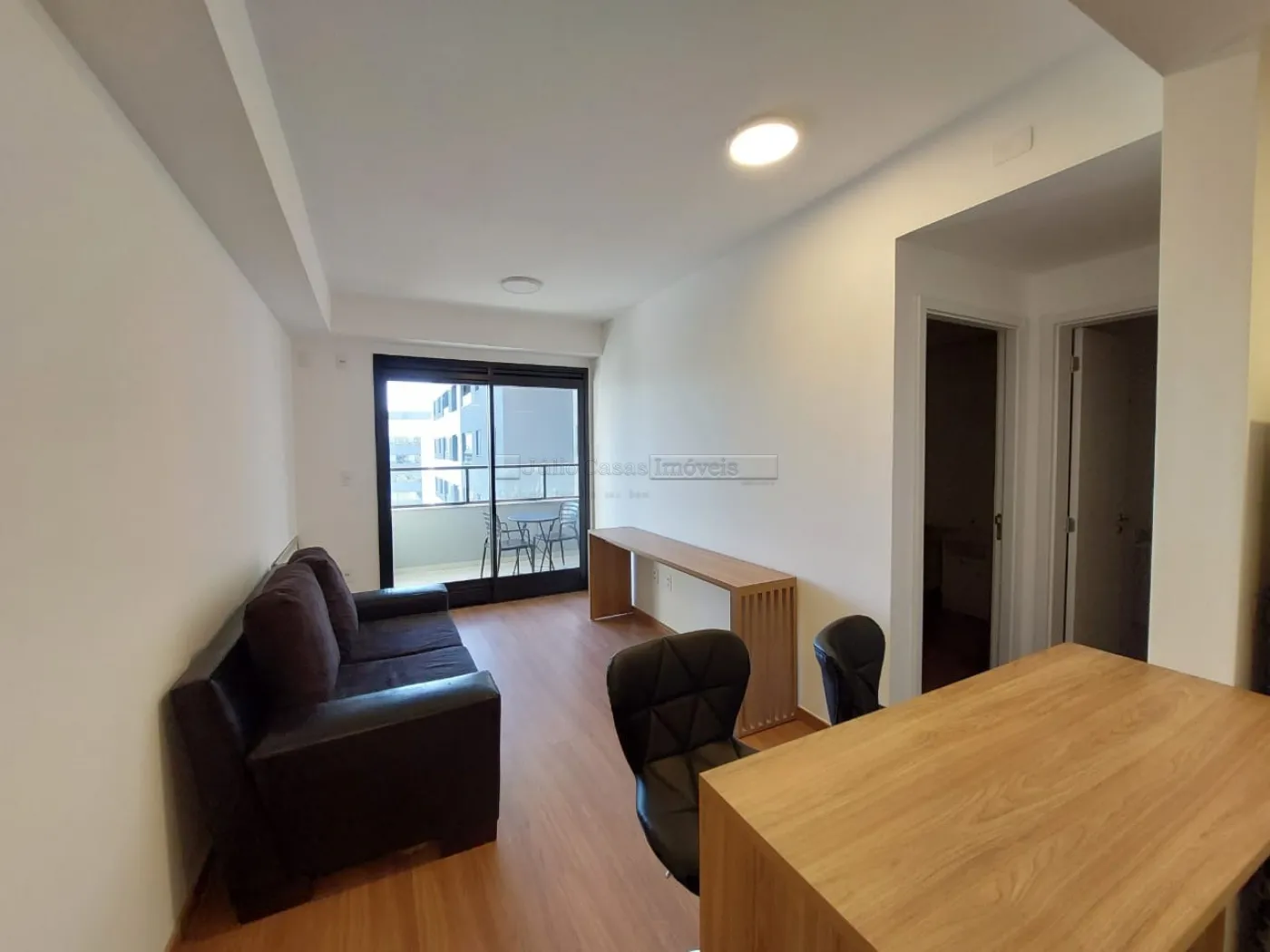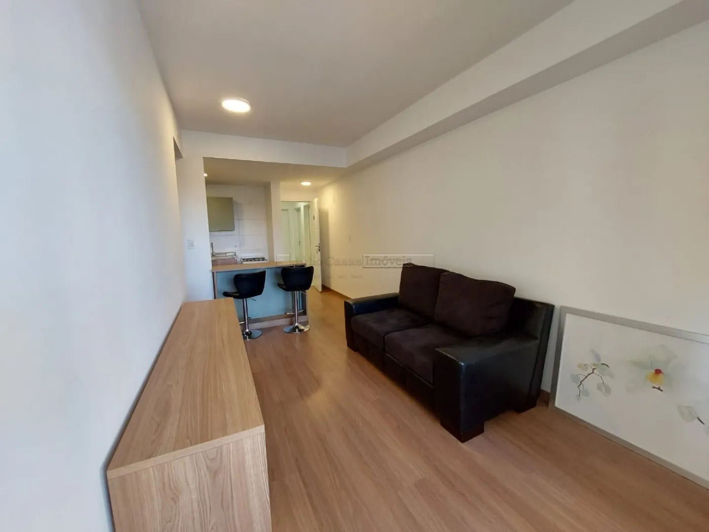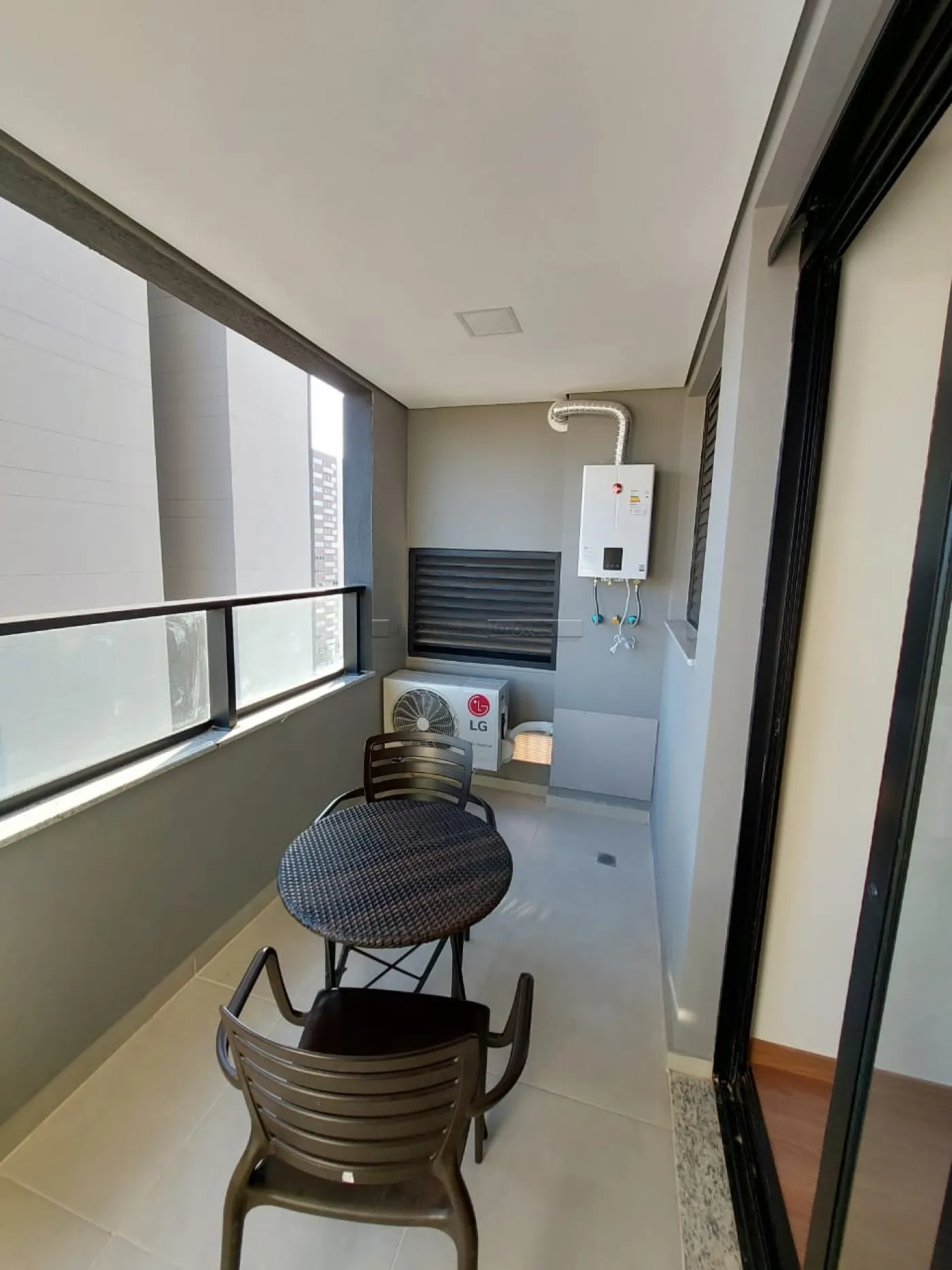 Este apartamento de 45 m² é perfeito para quem busca um espaço compacto e funcional, já totalmente mobiliado. O imóvel possui uma sala aconchegante com sofá e aparador, e uma área gourmet equipada com pia e mesa, ideal para pequenas refeições ou encontros. A cozinha é integrada ao estilo americano, e está equipada com fogão, geladeira e armários, proporcionando praticidade e funcionalidade.