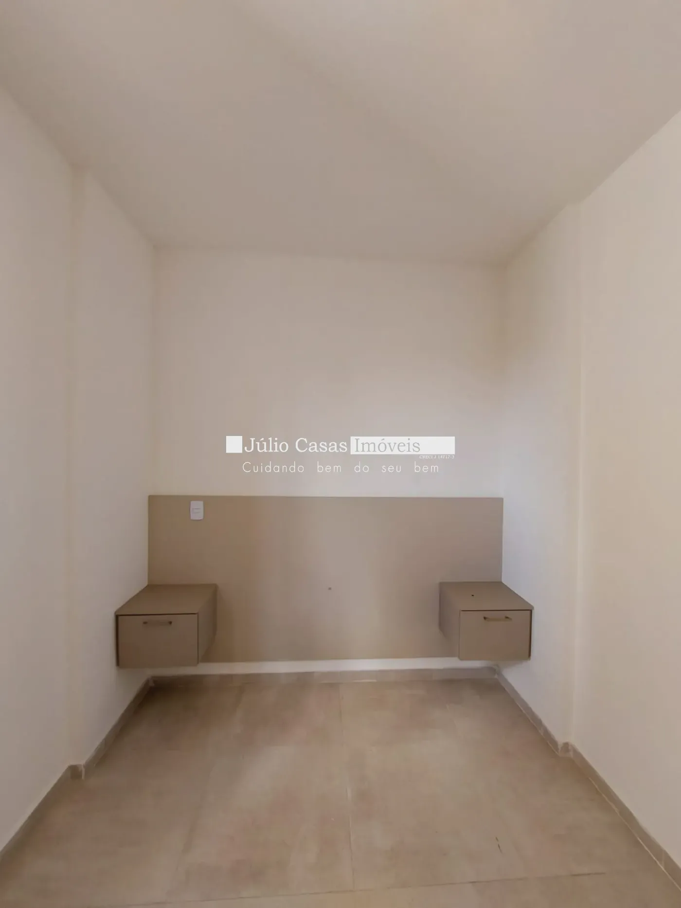 Sala, 2 ambientes com piso em porcelanato com painel para TV, 2 dormitórios modulados, 1 wc social com box em vidro e gabinete, cozinha modulada e área de serviço com móveis. Todo em piso porcelanato. 1 vaga de garagem descoberta.