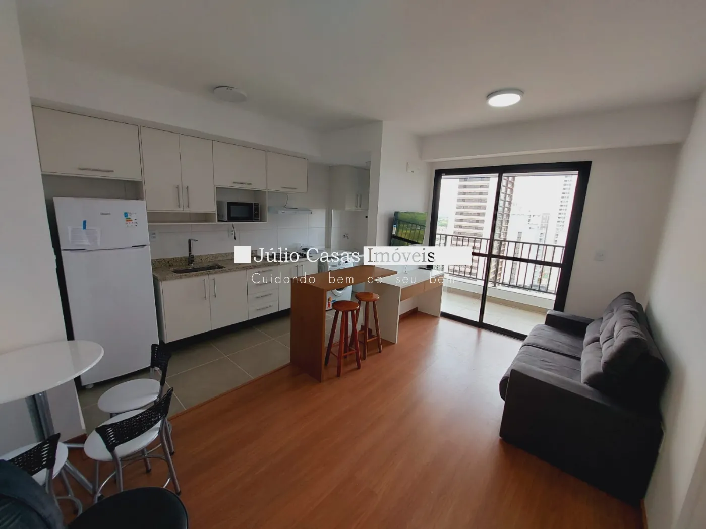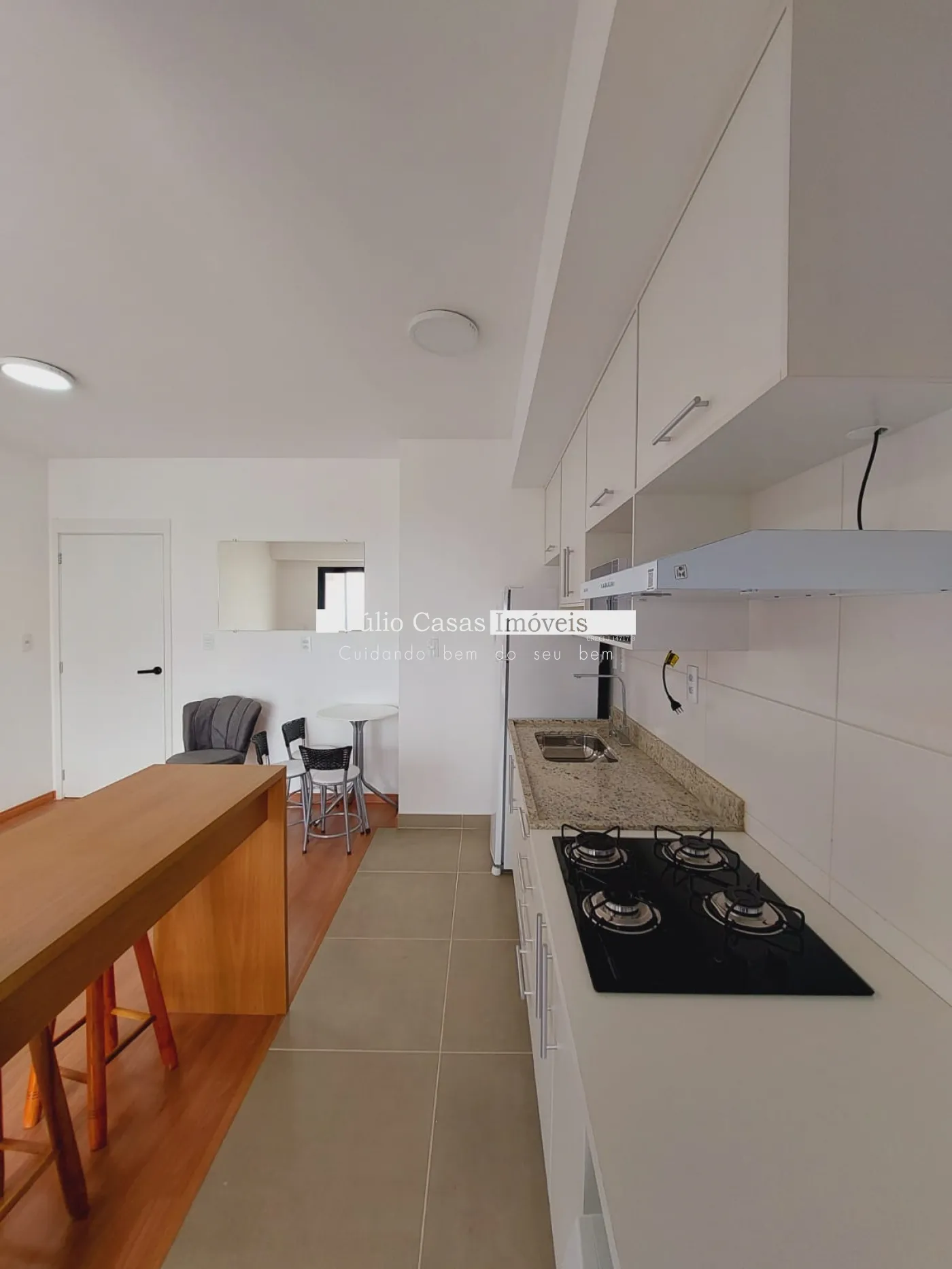 Apartamento mobiliado, modulado e equipado, pronto para morar. Sala integrada com a cozinha e varanda, dormitório modulado e mobiliado, wc com box em vidro e gabinete, piso em porcelanato ar condicionado. 2 vagas de garagem cobertas.