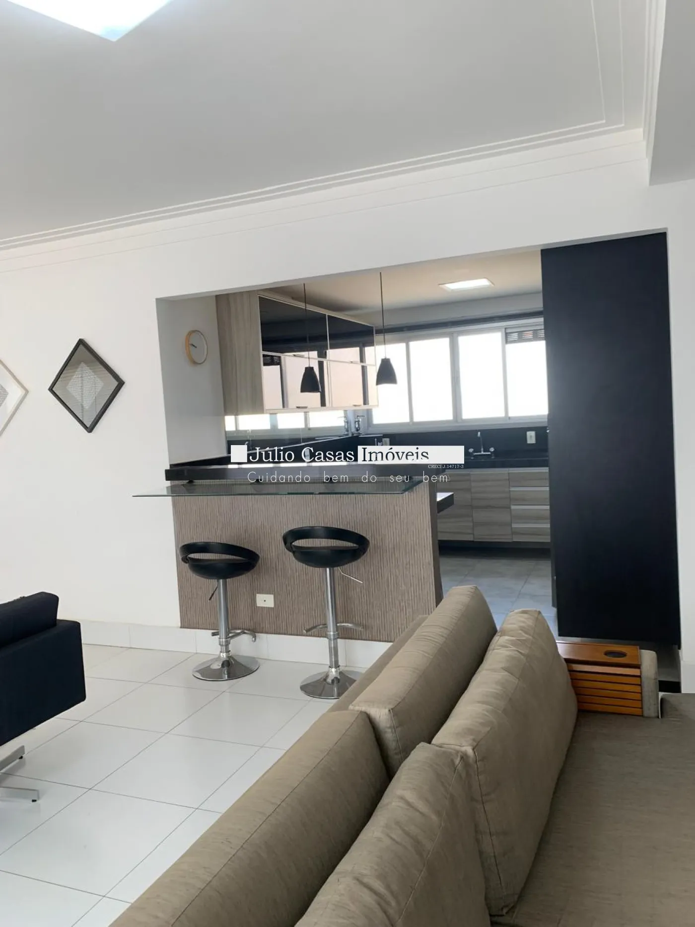 Ambientes Integrados: Sala ampla com dois ambientes (estar e jantar) totalmente integrada à cozinha, proporcionando um conceito aberto e moderno.