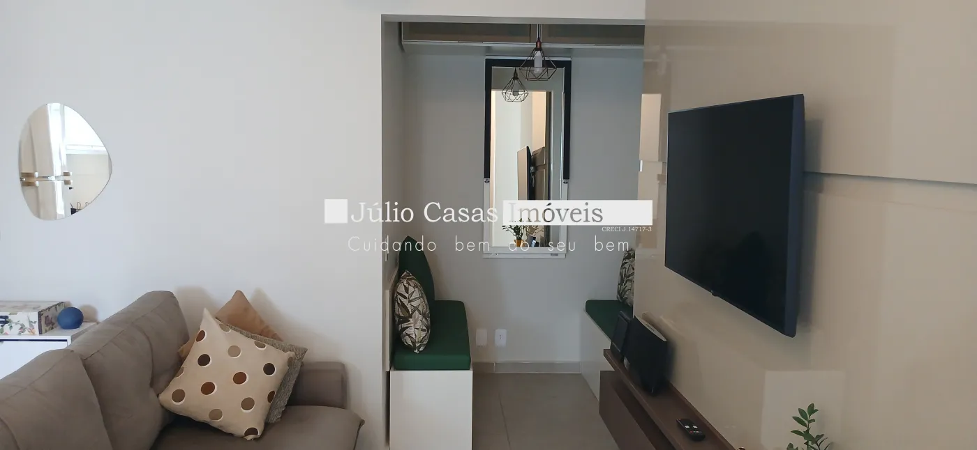 Apartamento mobiliado de 2 dormitórios com armários, Cozinha integrada com móveis planejados, lavanderia com área envidraçada e armários, espaço alemão com mesa retrátil, Sala com painel, toda planejada para otimizar o espaço, Banheiro com box, gabinete planejado, Garagem com 2 vagas (gaveta) privativas, Salão de Festas, Academia e Brinquedoteca.