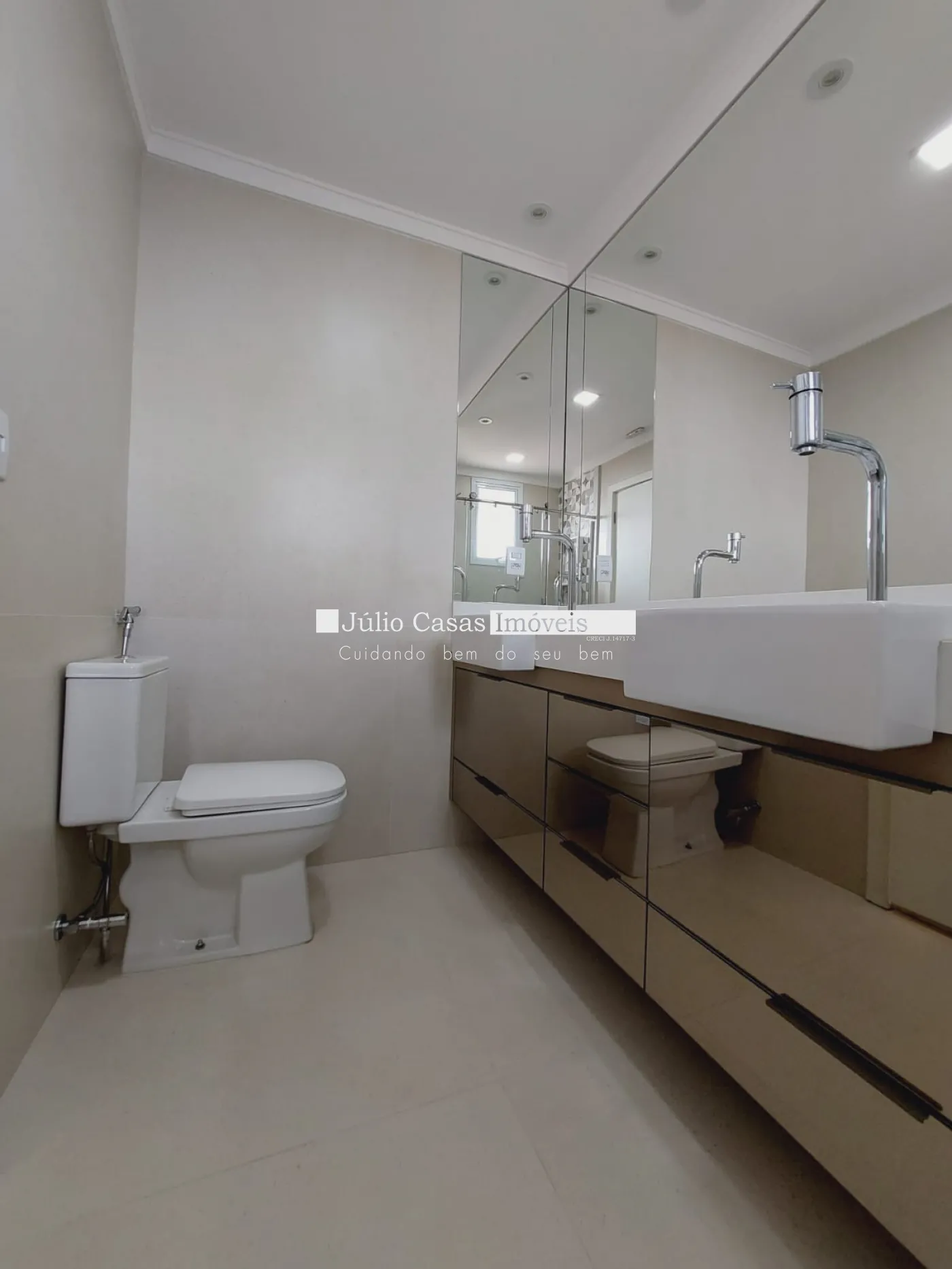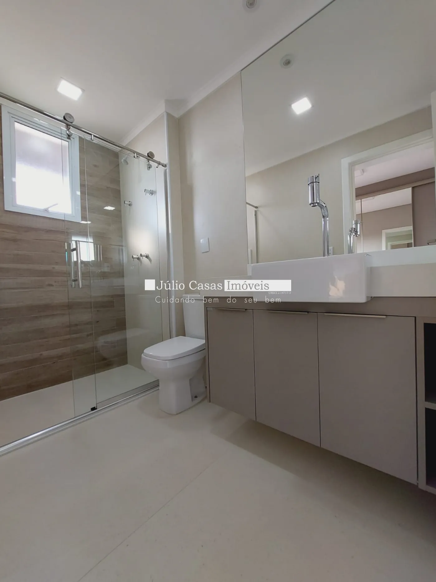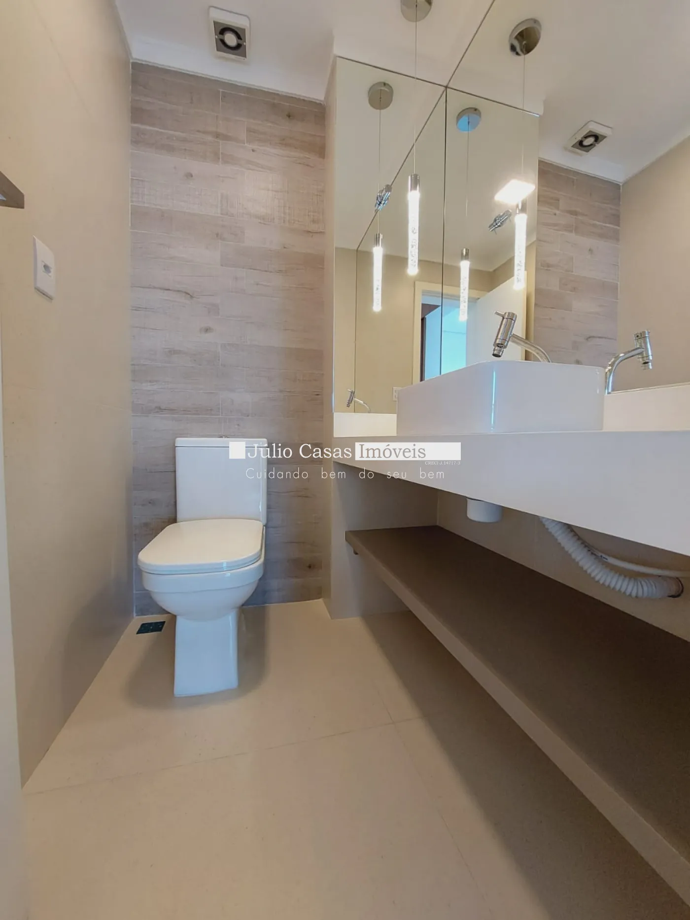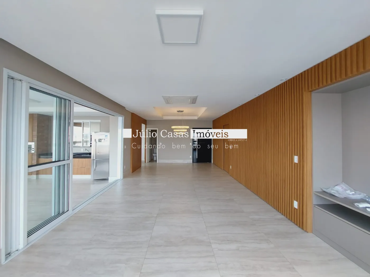 apartamento para aluguel todo modulado, sala dois ambientes com amplo painel ripado e rack para TV totalmente integrada com a varanda gourmet com churrasqueira, modulados e geladeira, ar condicionado central nos ambientes, lavabo, cozinha toda modulada e equipada com eletrodomésticos, lavanderia com armários e lava e seca, wc de serviço. Varandas fechadas em vidro temperado, proporcionando uma linda vista da Cidade.