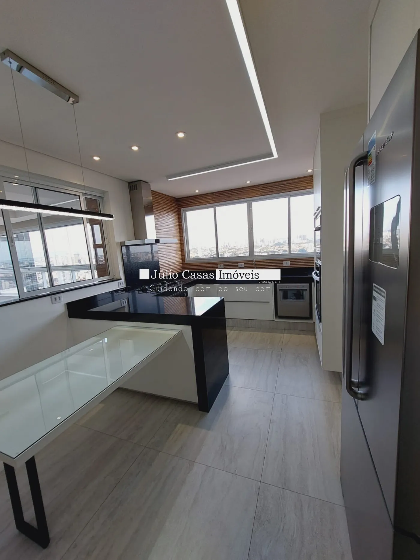 4 vagas de garagem cobertas. Apartamento com 220m² com ambientes amplos e iluminados.