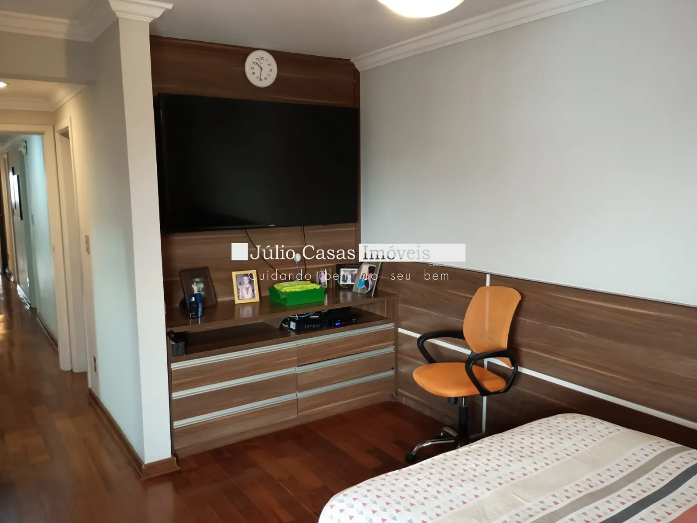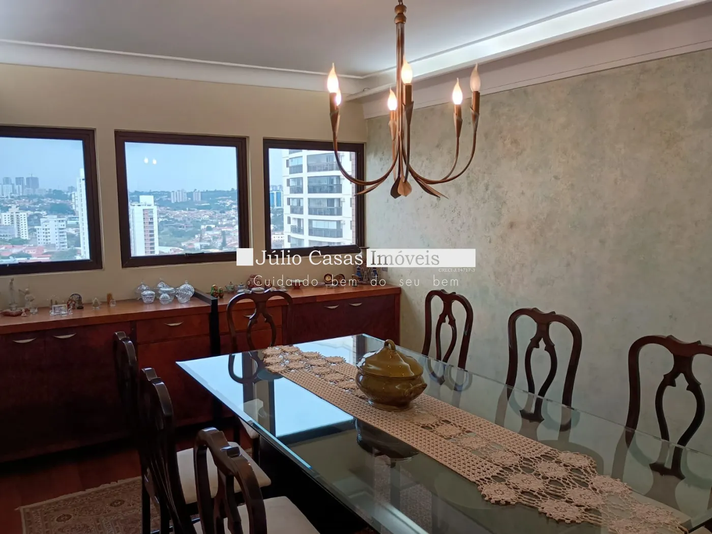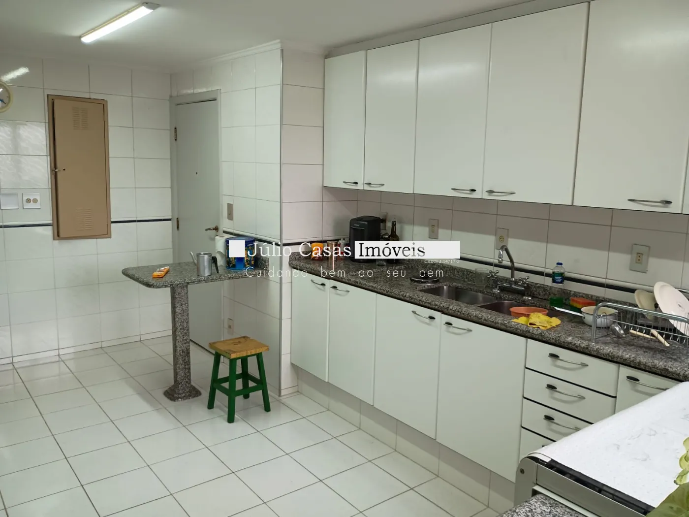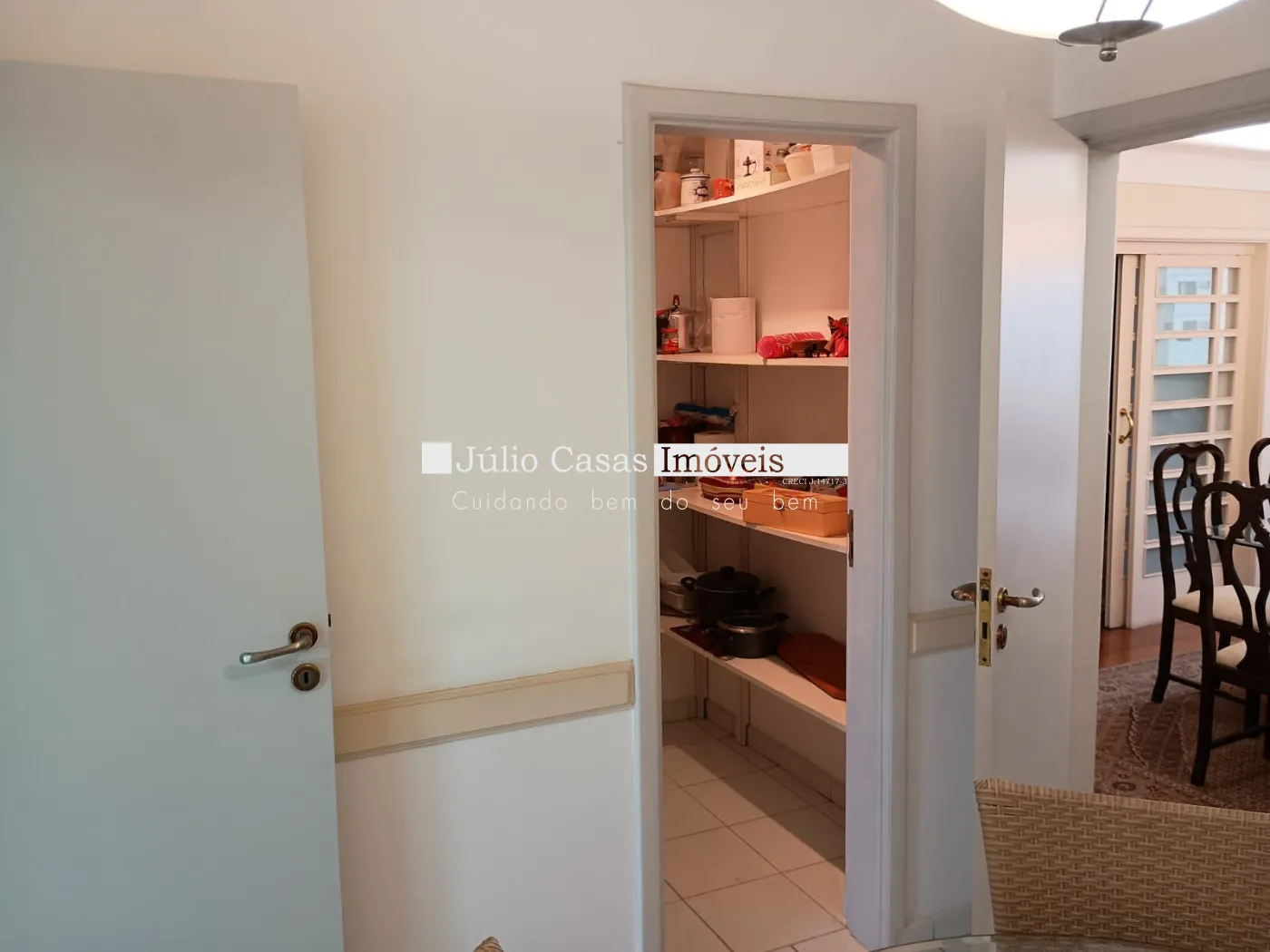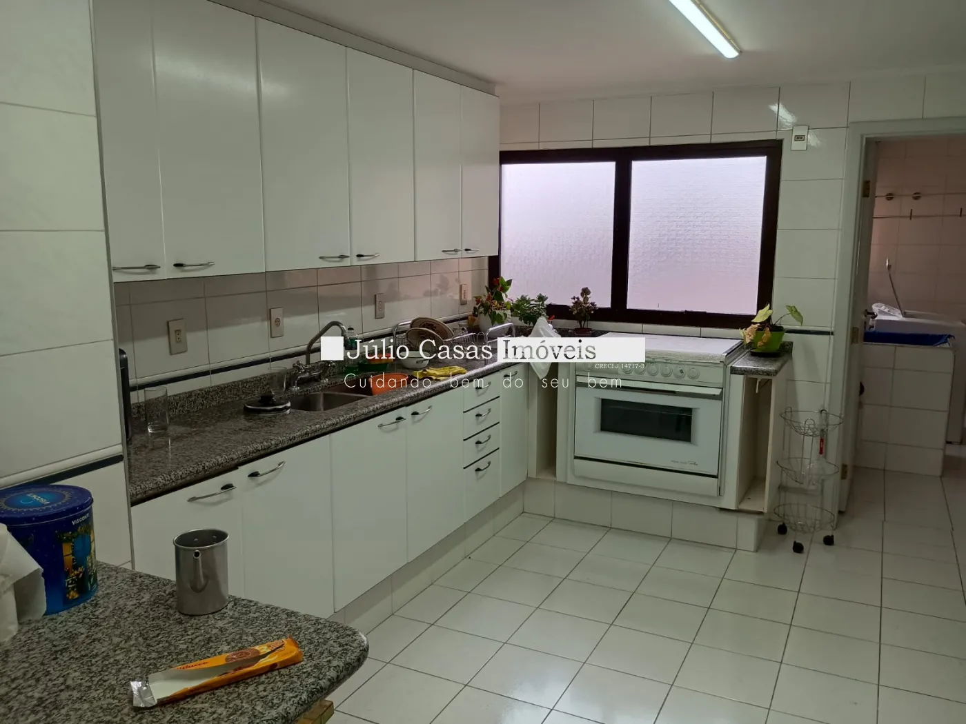 O apartamento conta com uma ampla sala de estar com porta balcão e sacada, salas de TV, jantar e almoço que se integram harmoniosamente. A cozinha, toda modulada, está conectada à área de serviço funcional, além de quarto e banheiro de empregada. São três dormitórios, sendo duas suítes, incluindo a master com banheira e closet. Há também um banheiro social, todos com aquecimento a gás.