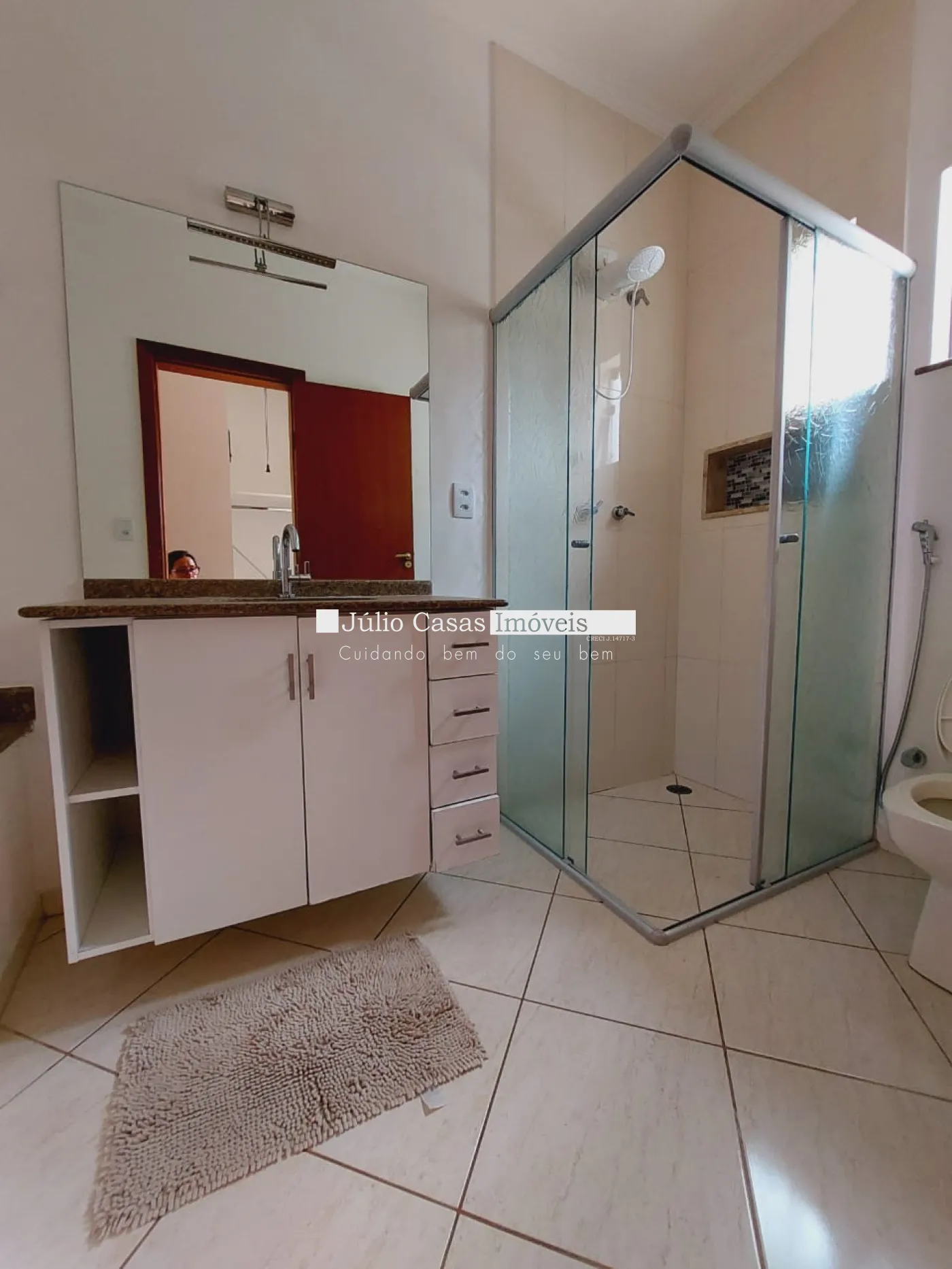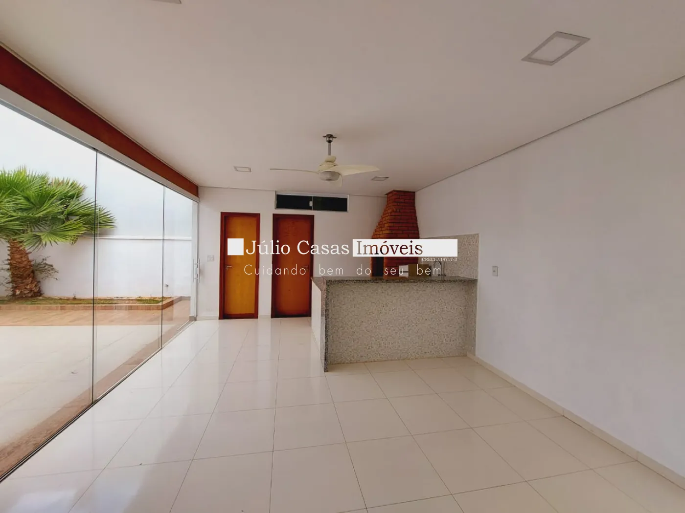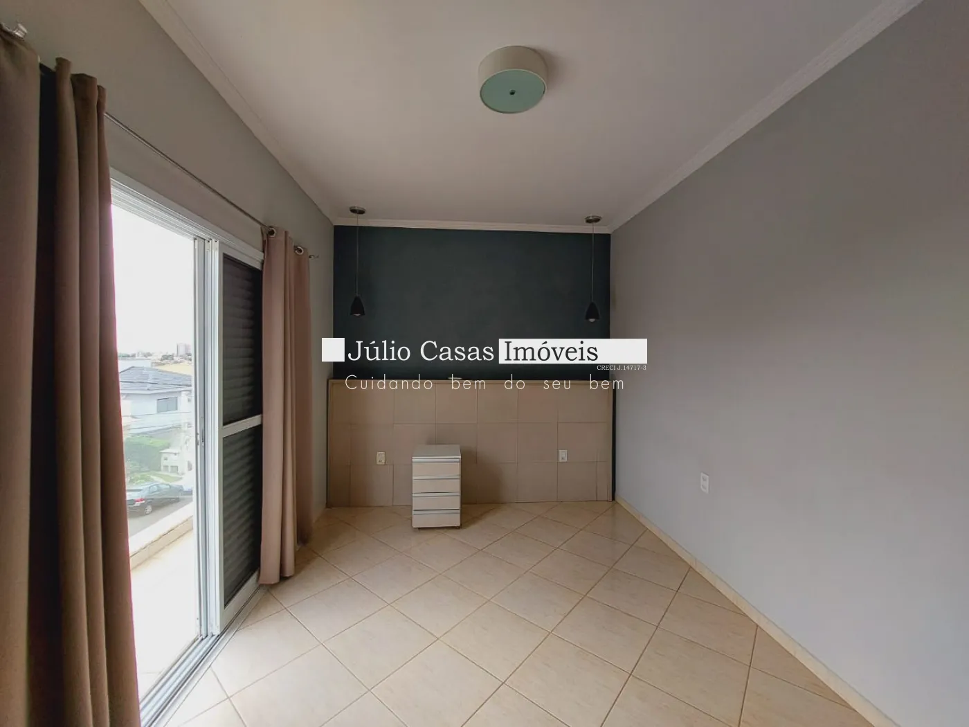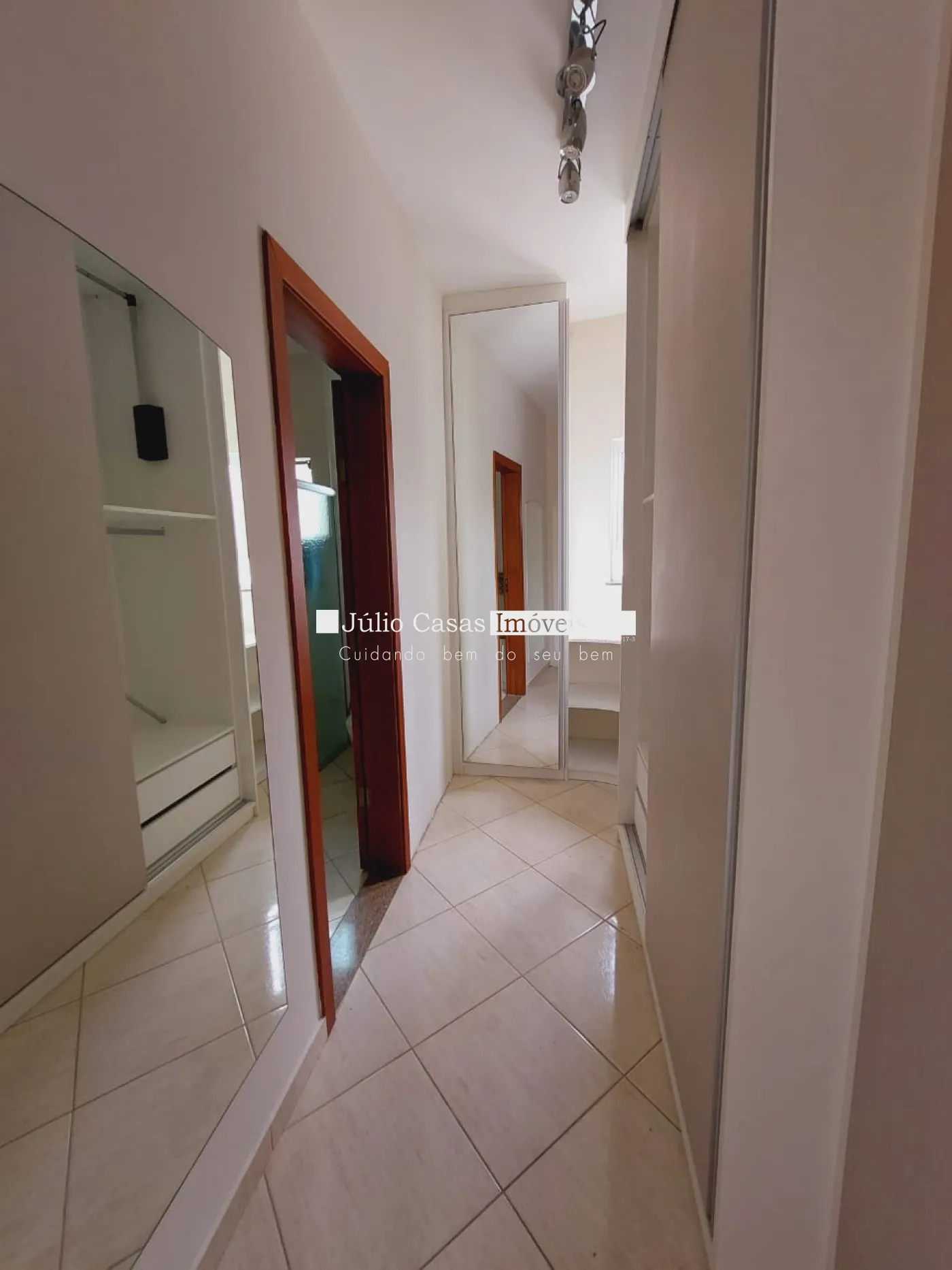 Casa em condomínio para aluguel com sala ampla em piso porcelanato, escritório modulado em piso cerâmico, lavabo, cozinha modulada com coifa em inox, despensa, lavanderia com armários, área gourmet com churrasqueira, pia de apoio, armários com fechamento em vidro temperado, quarto com modulados e wc. Quintal com Jacuzzi.