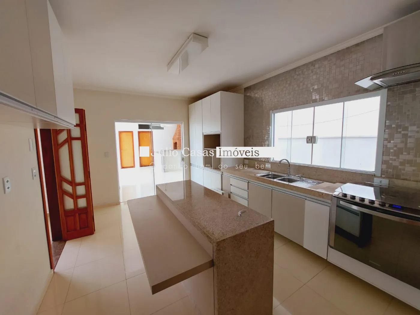 Sobrado para aluguel com sala 2 ambientes, sala de tv, lavabo, cozinha ampla com armários e sala de almoço, área de serviço com despensa. área gourmet com churrasqueira e pia, quintal grande. Andar superior com 4 quartos sendo 1 suíte máster com espaço para closet. wc social. amplo espaço entre os quartos, possibilitando uma sala íntima quartos com varandas e piso em madeira. Garagem para 3 veículos cobertos. Espaços amplo e arejados. 2 quartos com modulados.