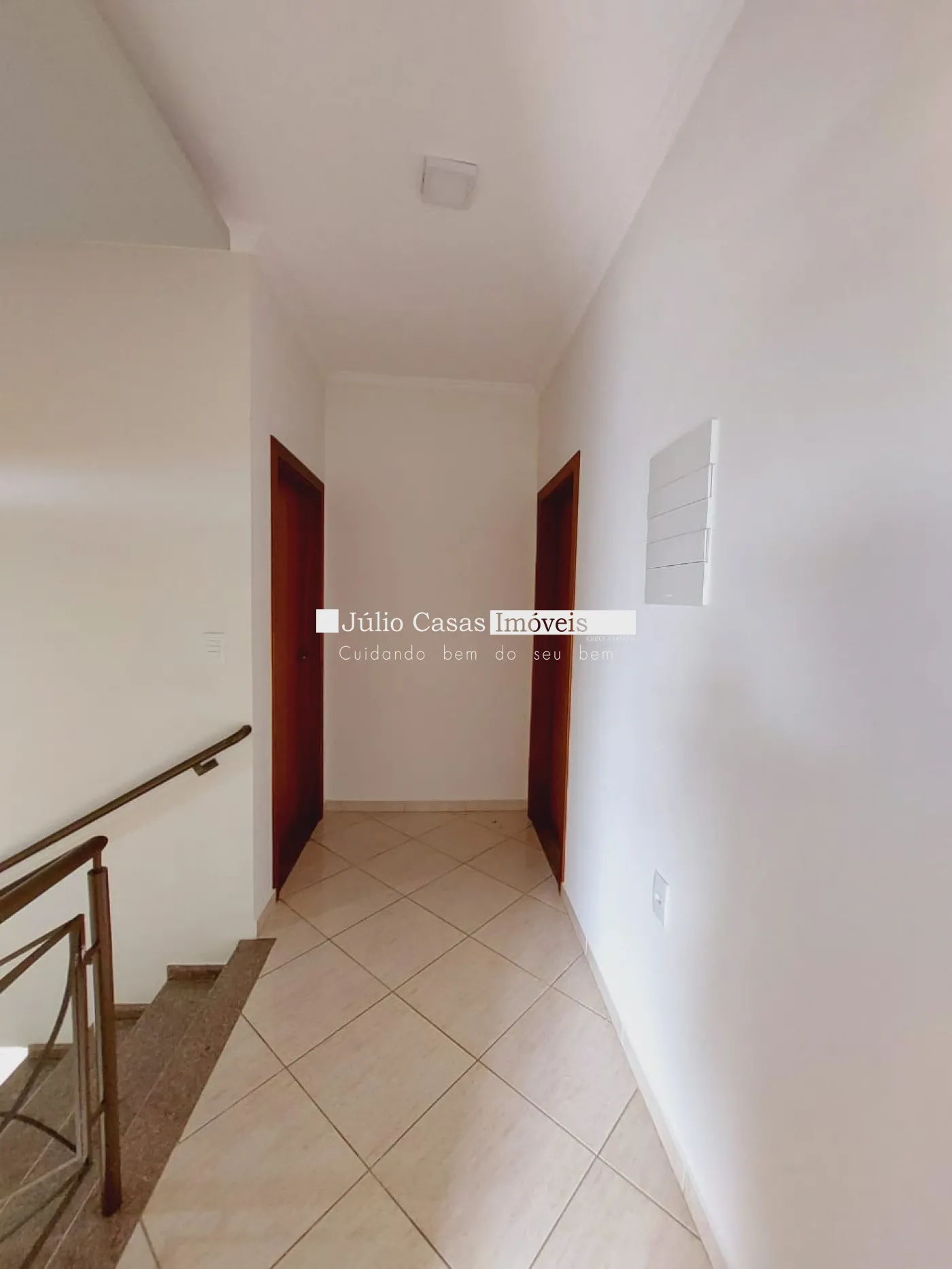 Andar superior com 3 suítes amplas todas com armários e varanda, escada com acabamento em granito.