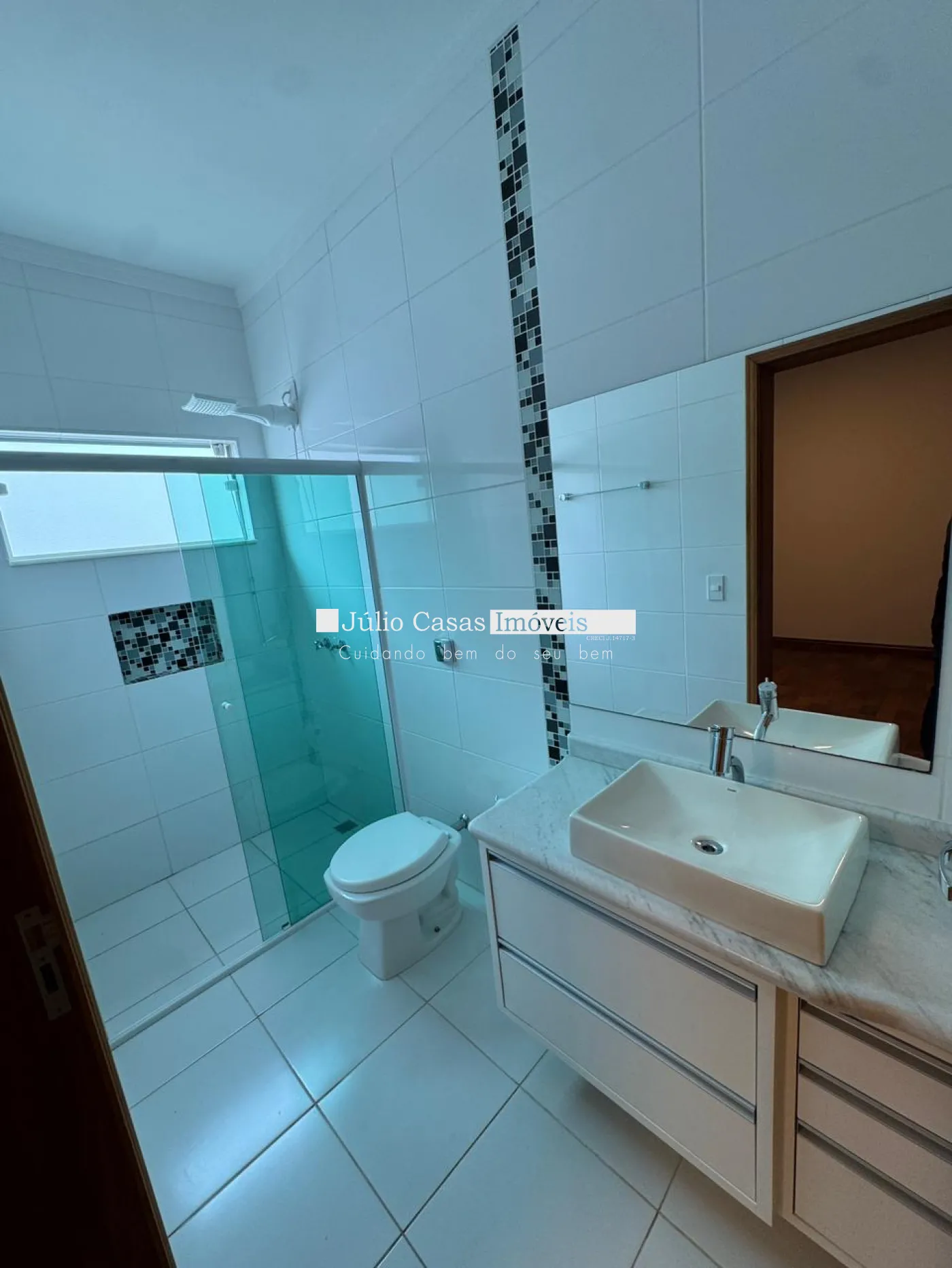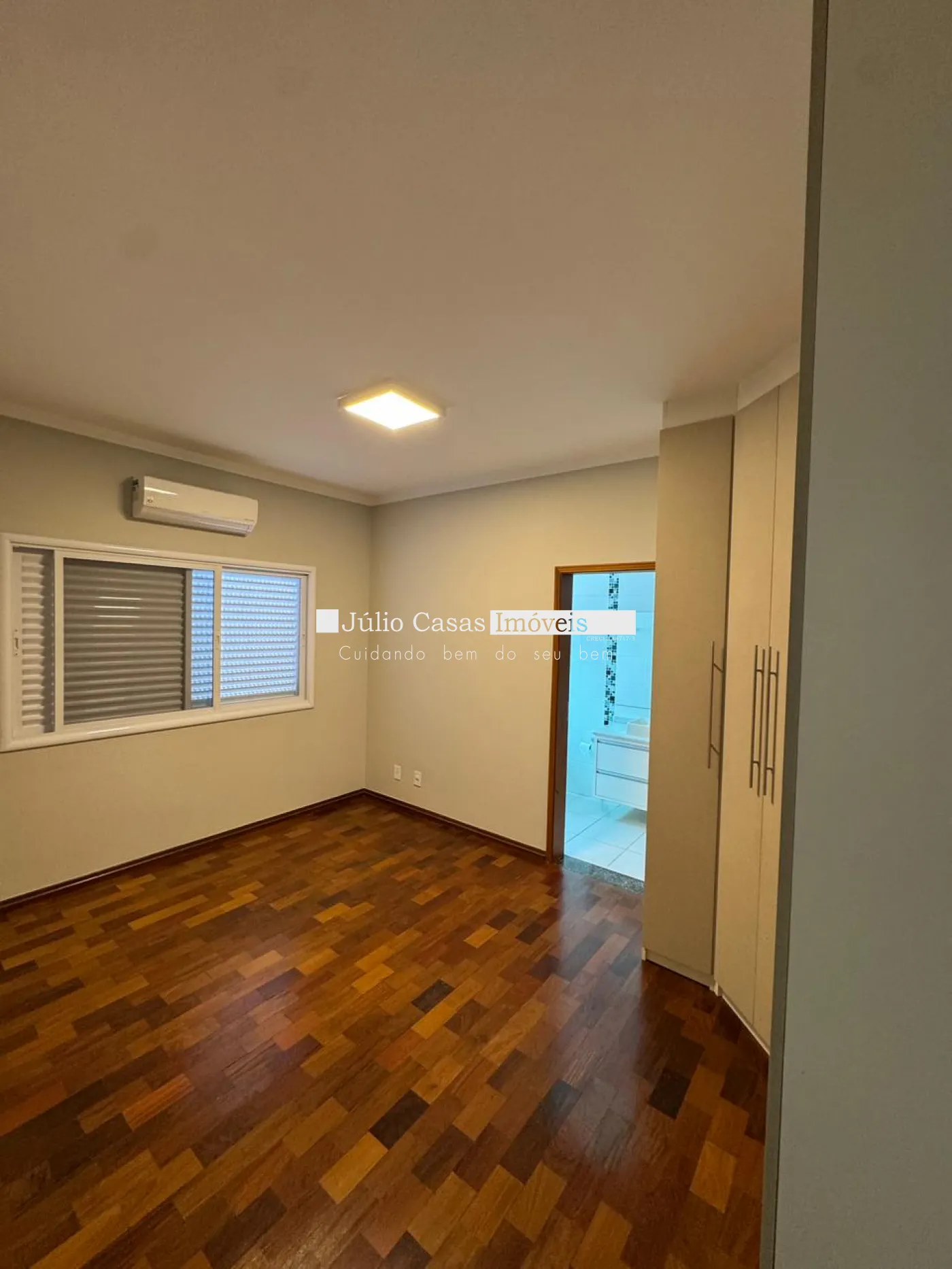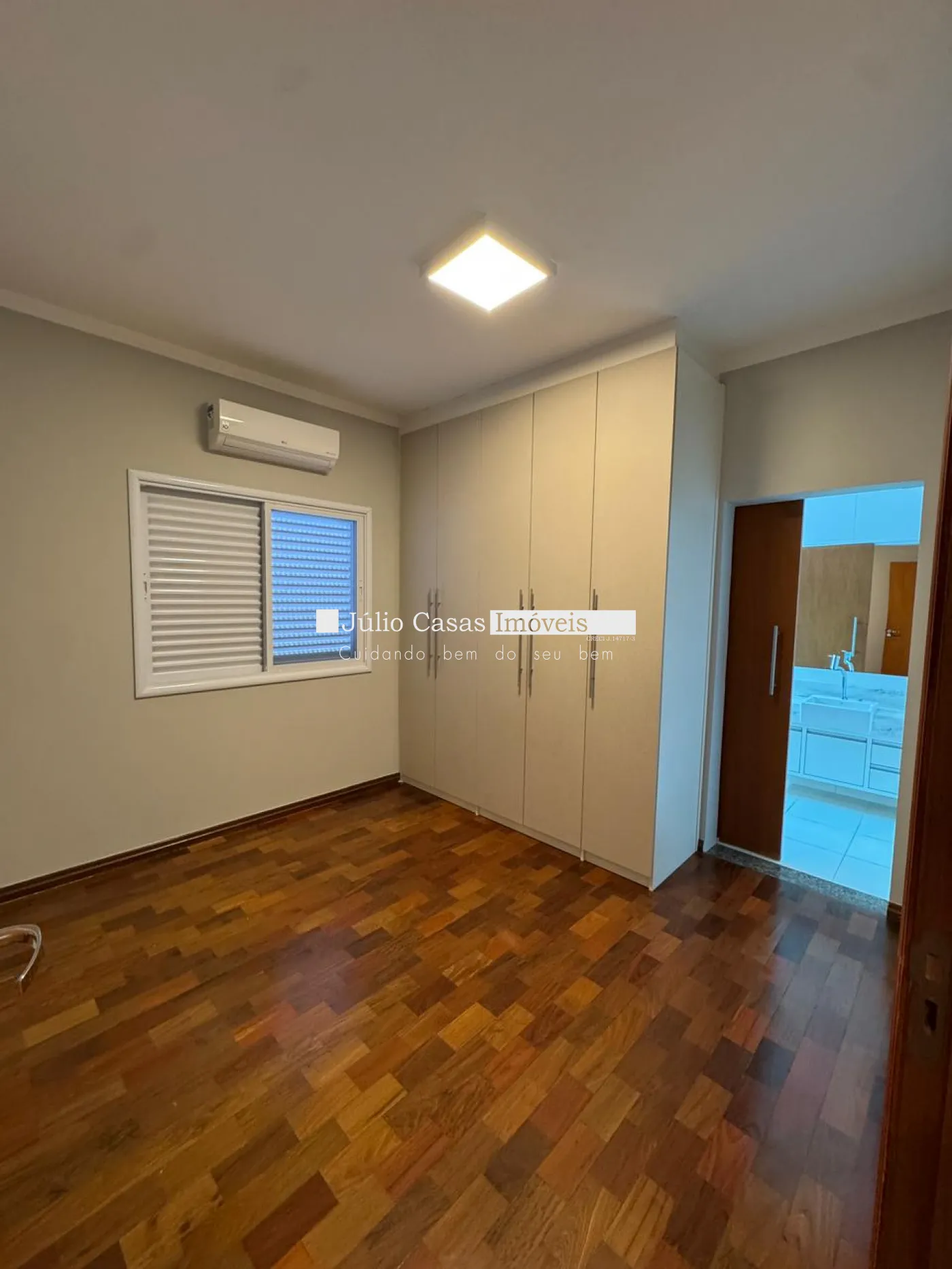 O imóvel conta com 3 suítes confortáveis, todas com armários modulados e ar condicionado, proporcionando praticidade e organização.