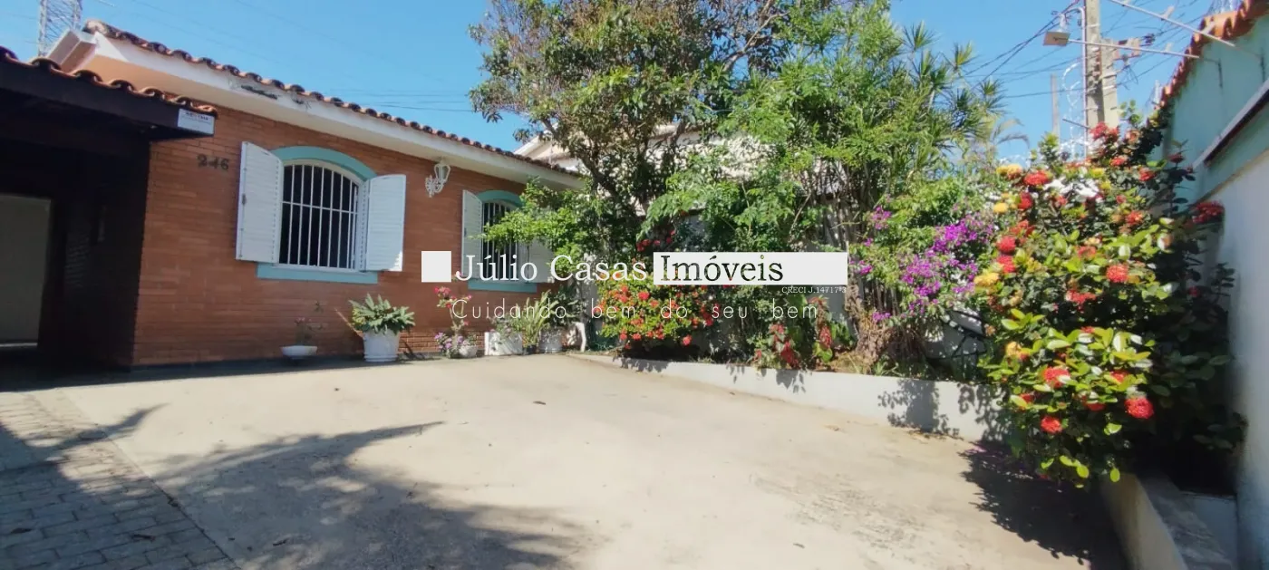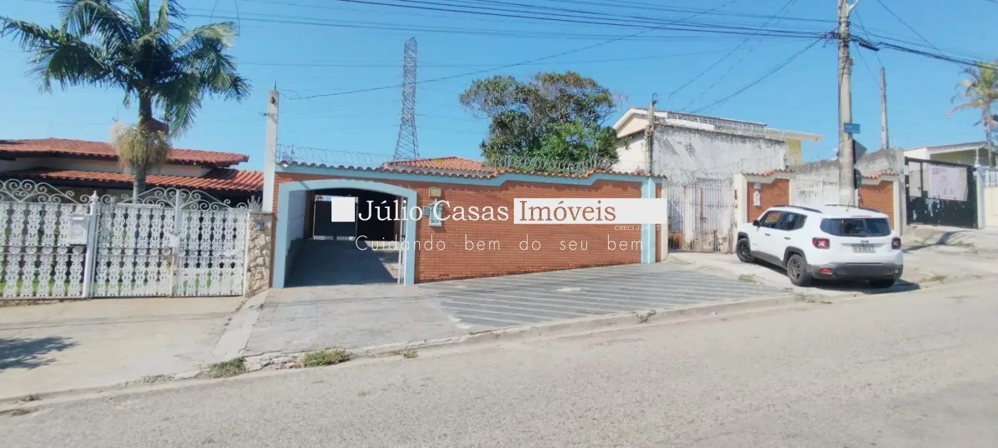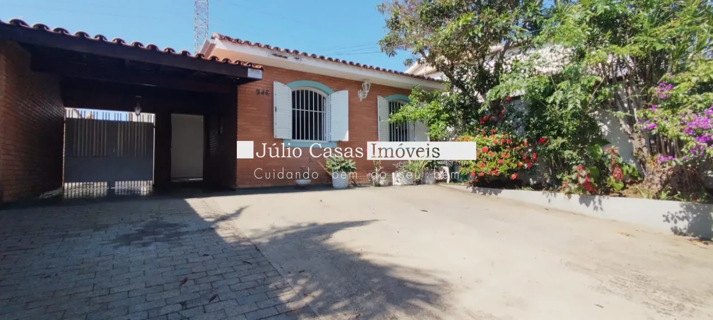 A casa possui piso em ardósia, portão eletrônico, sistema de câmeras de segurança, e garagem coberta para 1 veículo e descoberta para até 3 carros.