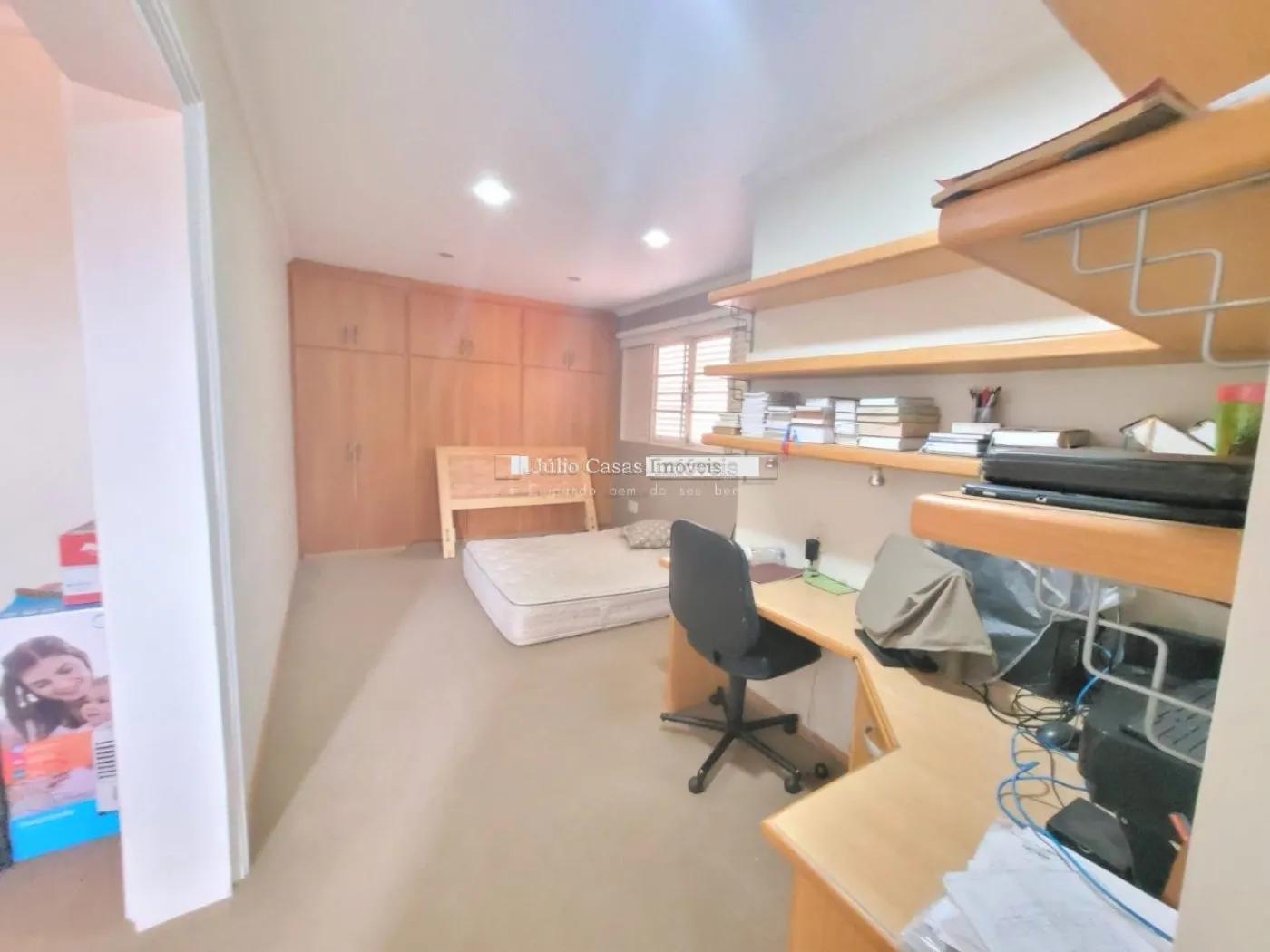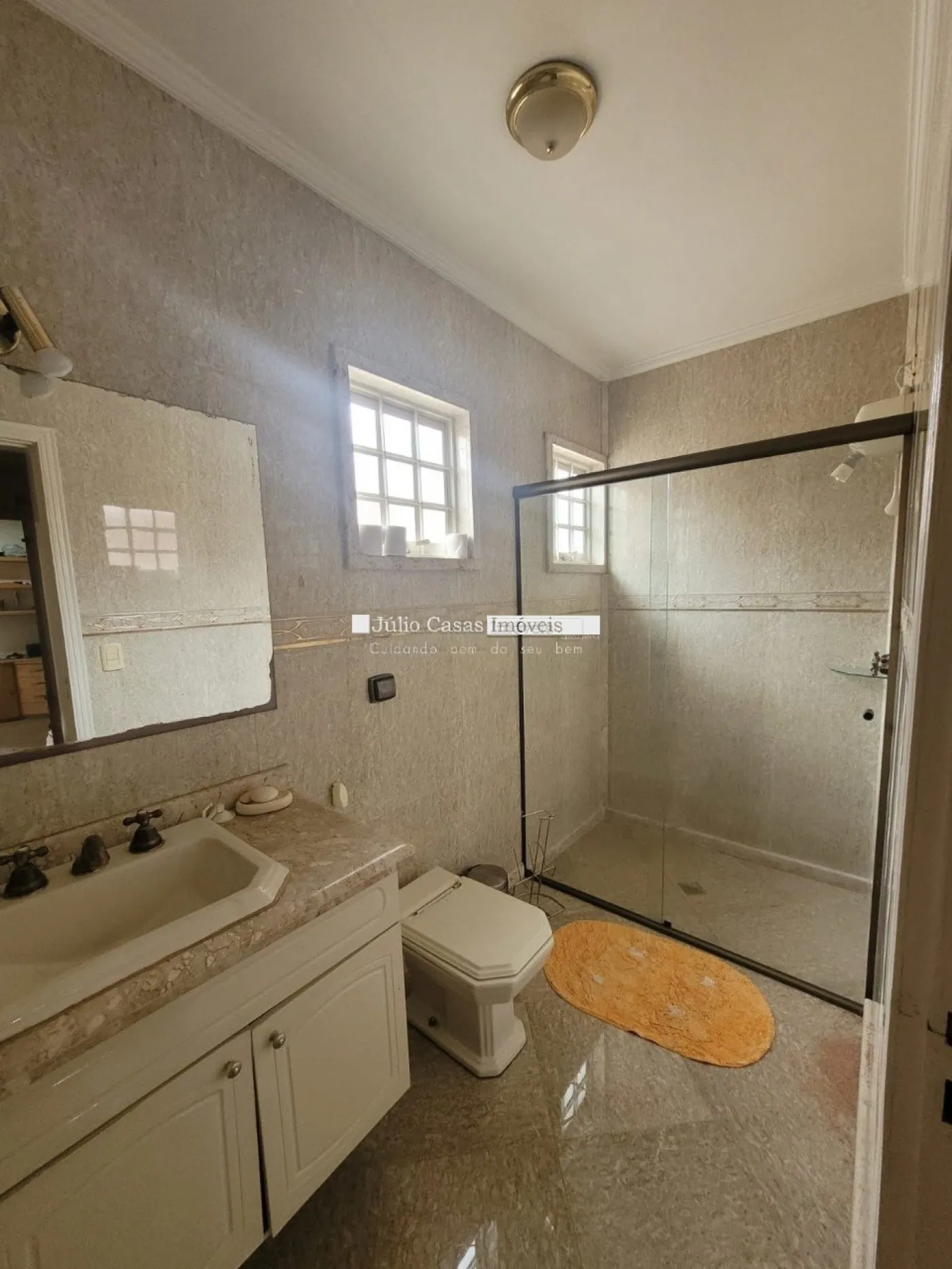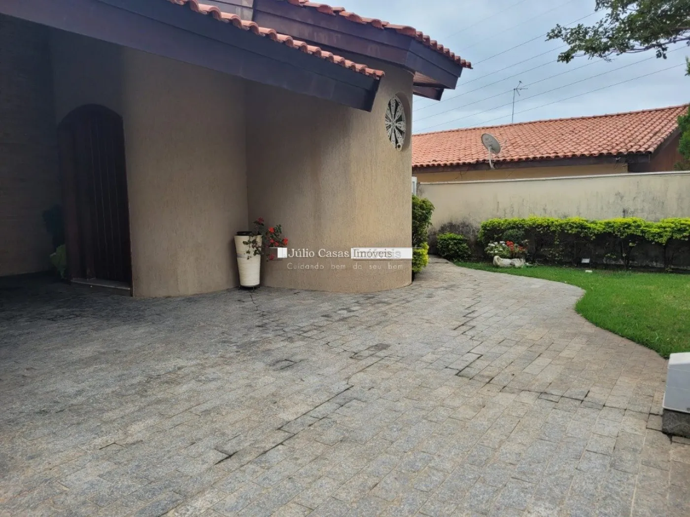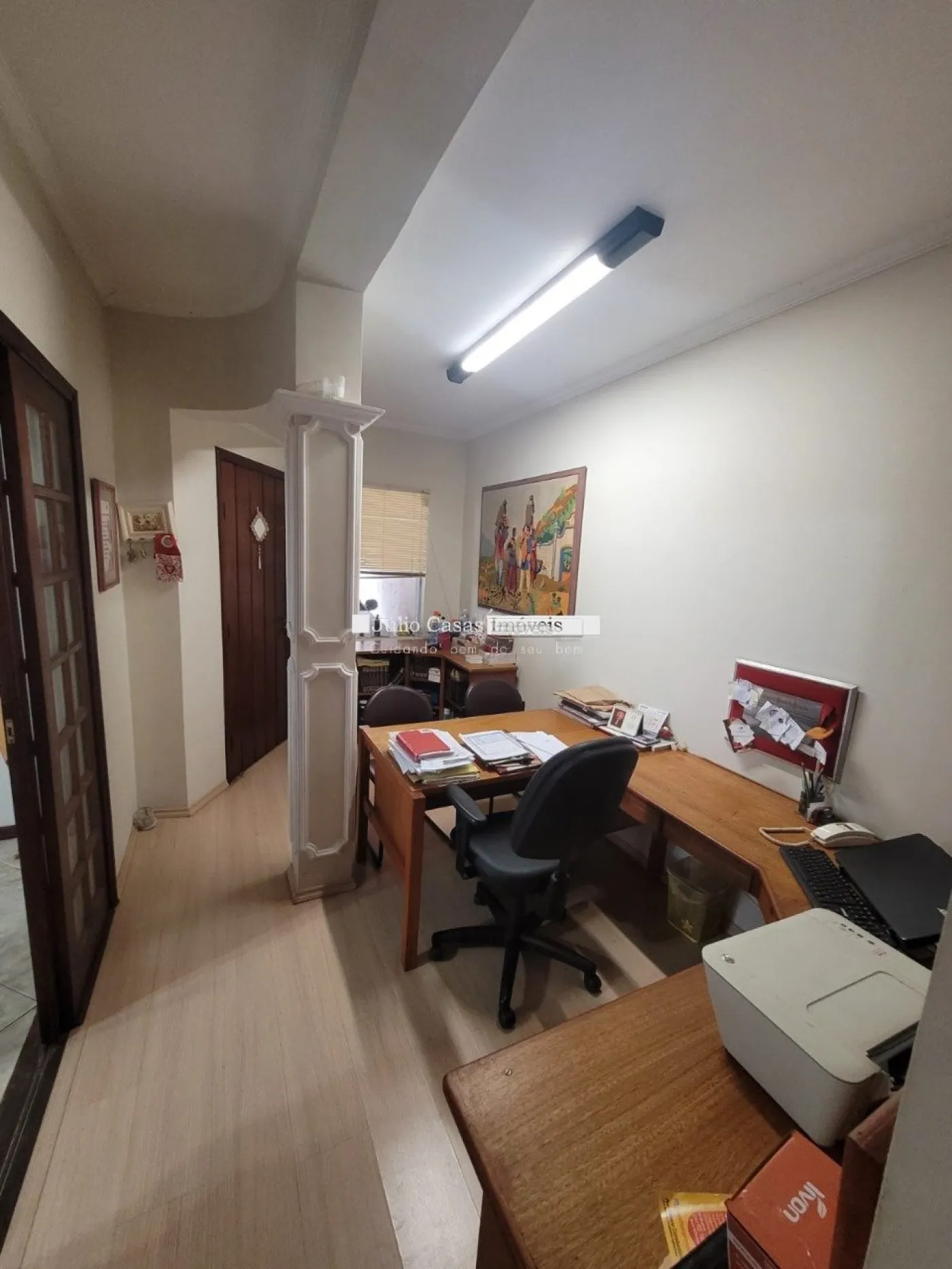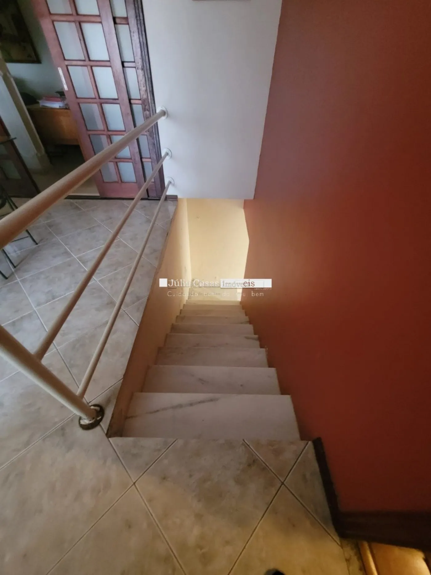 Ótima casa, garagem para 2 carros cobertos, entrada independente para o escritório e este com acesso interno para a sala. 2 salas, estar com piso em madeira e ótima iluminação, sala de jantar com piso cerâmico, cozinha bem ampla com armários, pequena lavanderia. No andar principal há 3 quartos, onde 1 serve como sala de TV, outro é uma suíte com armário, banheiro com banheira e todo azulejado, outro dormitório com pequeno armário, banheiro social com box em blindex e gabinete estes 2 dormitórios dão para uma sacada com portas em alumínio e pintura eletrostáticas. No andar superior há outra suíte e um escritório também com armários, ar condicionado e banheiro com Box em blindex , gabinete. No andar inferior temos uma área que serve como garagem para 6 carros cobertos ou uma área para festa, temos uma pequena área gourmet, banheiro e quarto de despejo, piscina, canil e entrada independente lateral