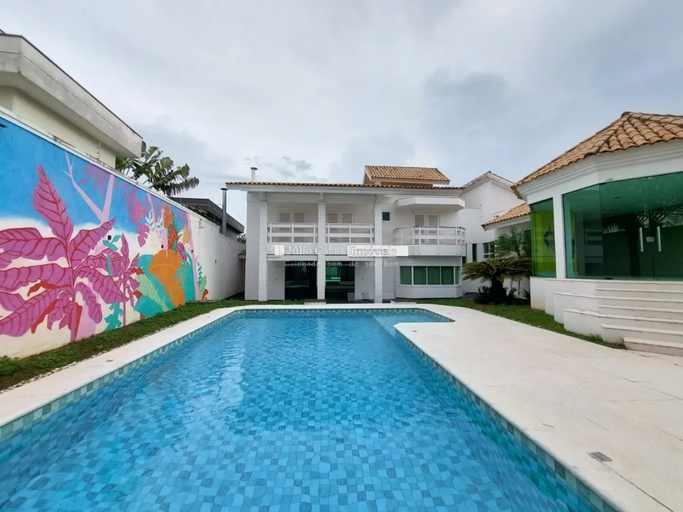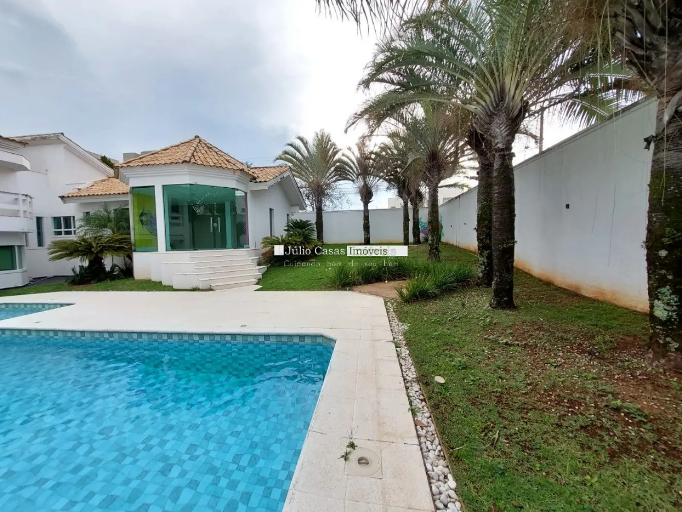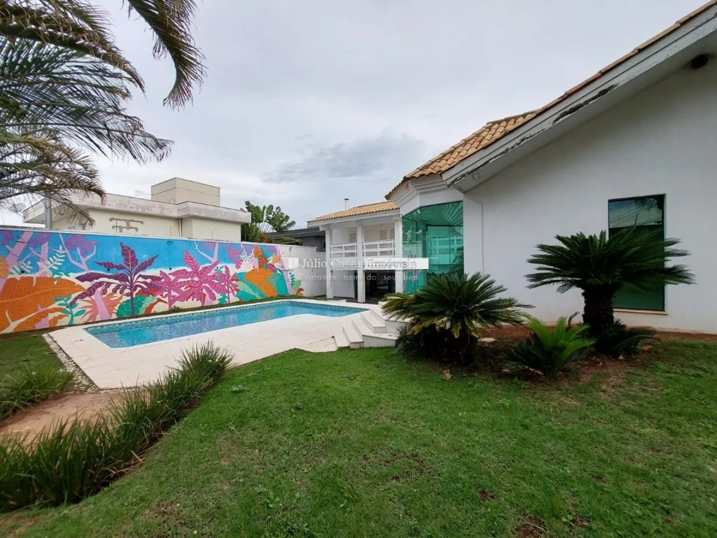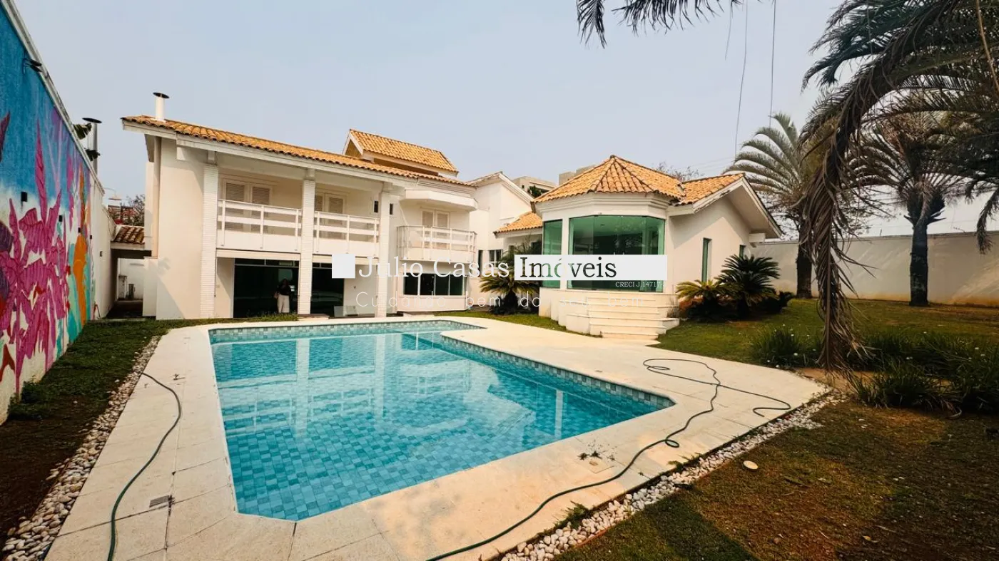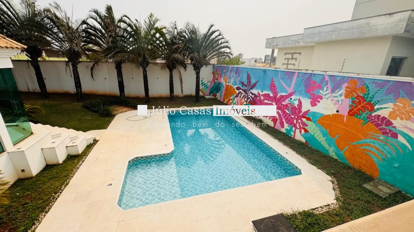 Casa de esquina em alto padrão, oferecendo privacidade e conforto em todos os ambientes. A propriedade conta com uma área gourmet bem equipada, uma sala de dois ambientes, um lavabo, e uma cozinha de apoio com despensa. A piscina está posicionada de forma a garantir total privacidade em relação aos outros espaços da casa. Os ambientes são revestidos em porcelanato e apresentam acabamentos finos em gesso.