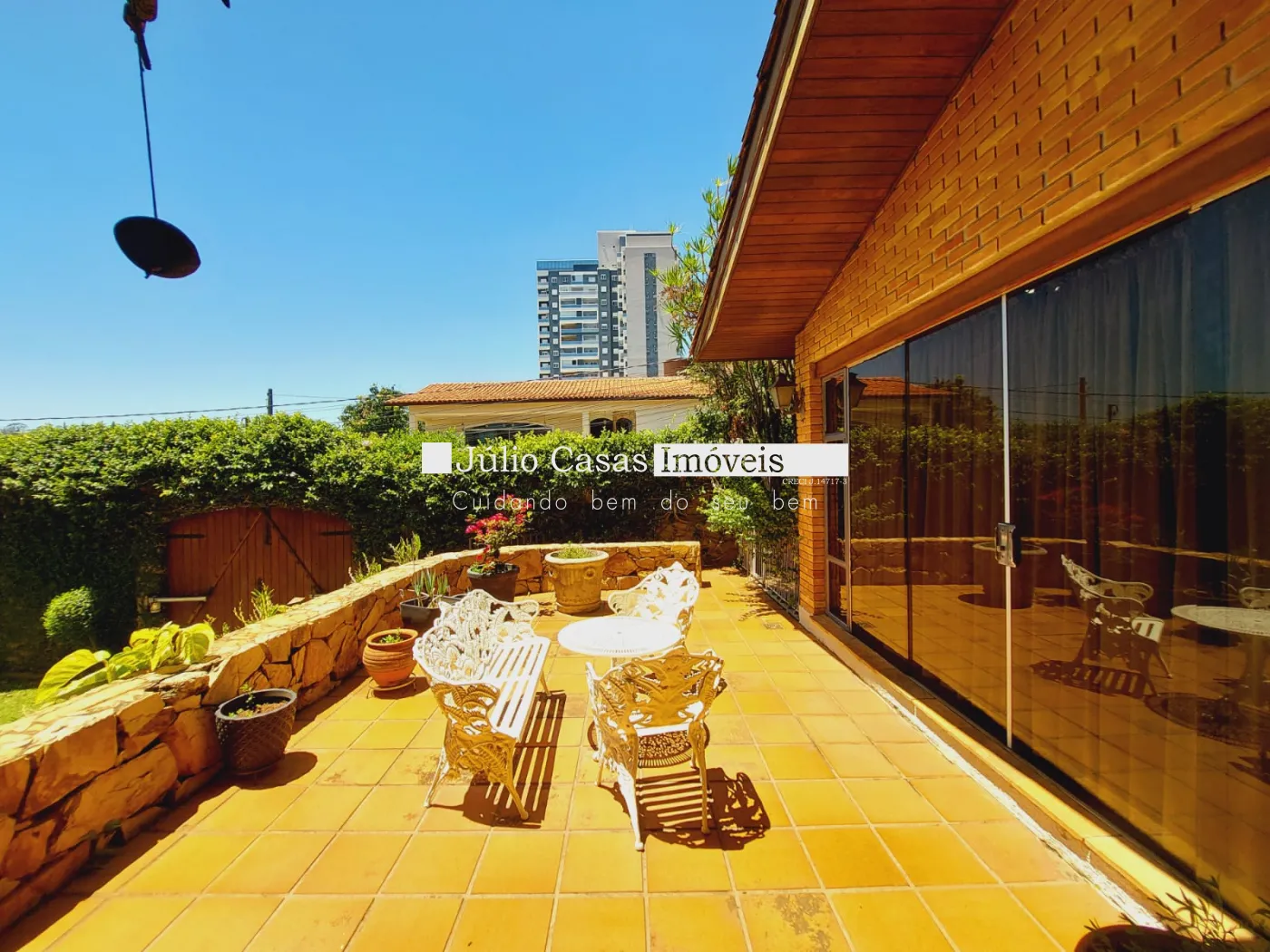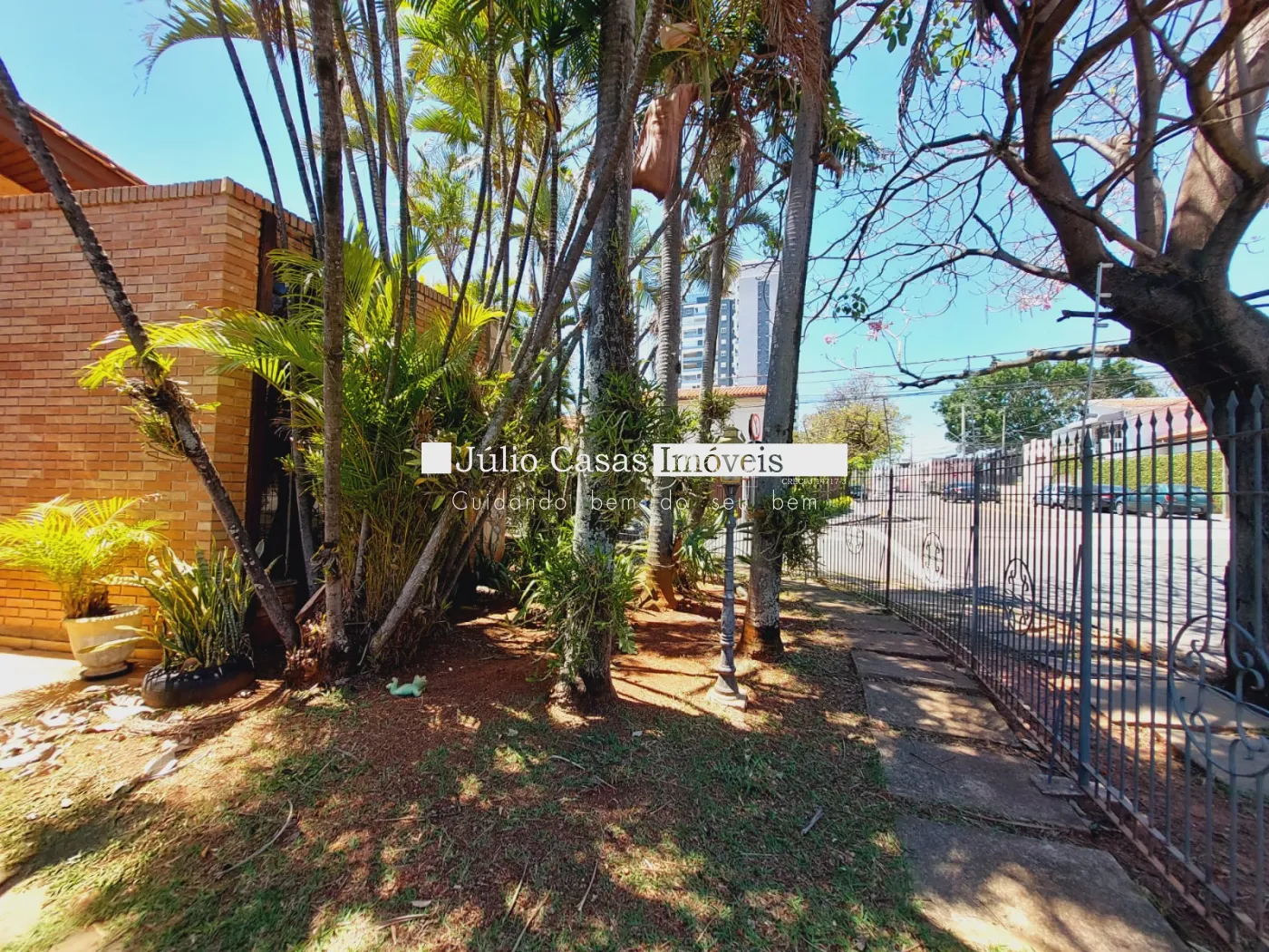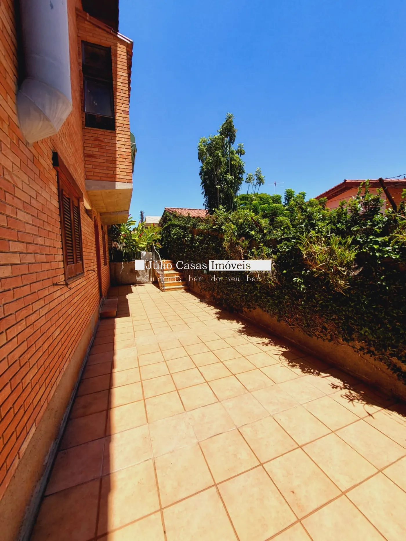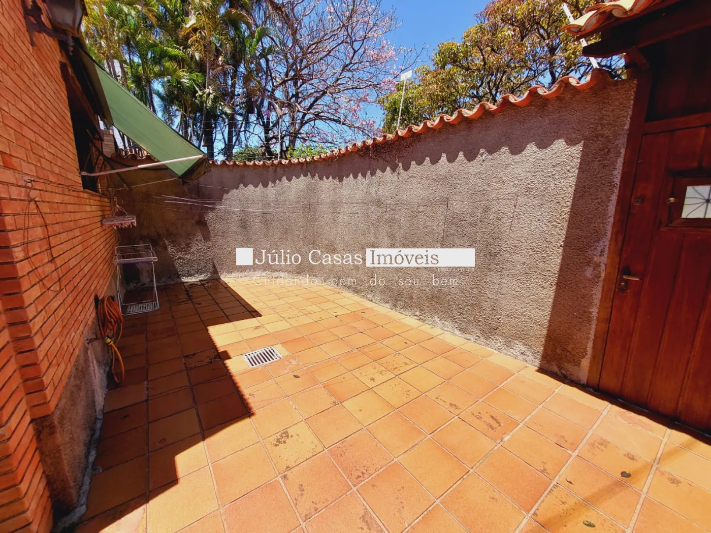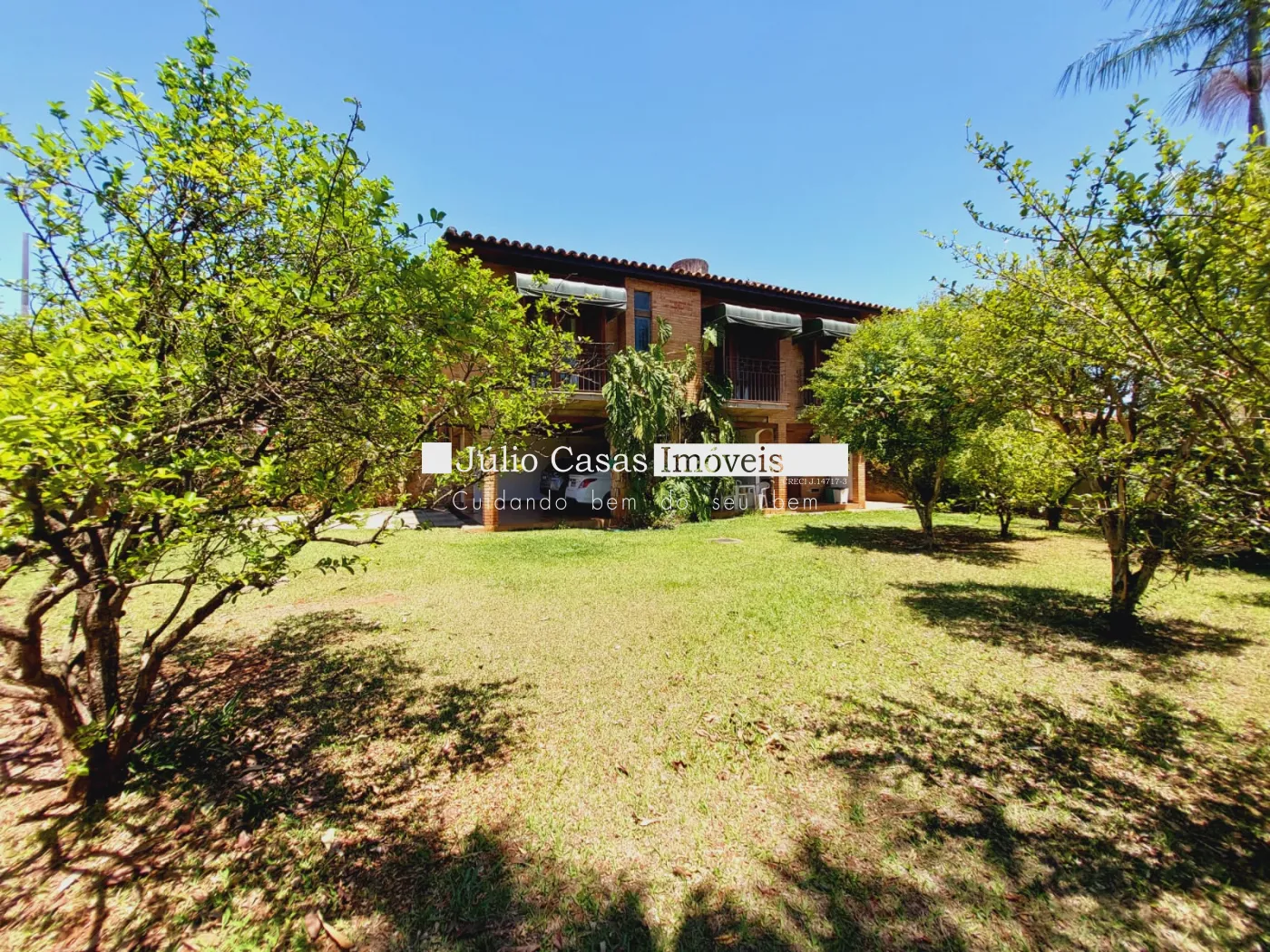 Quintal grande com verde e gramado.