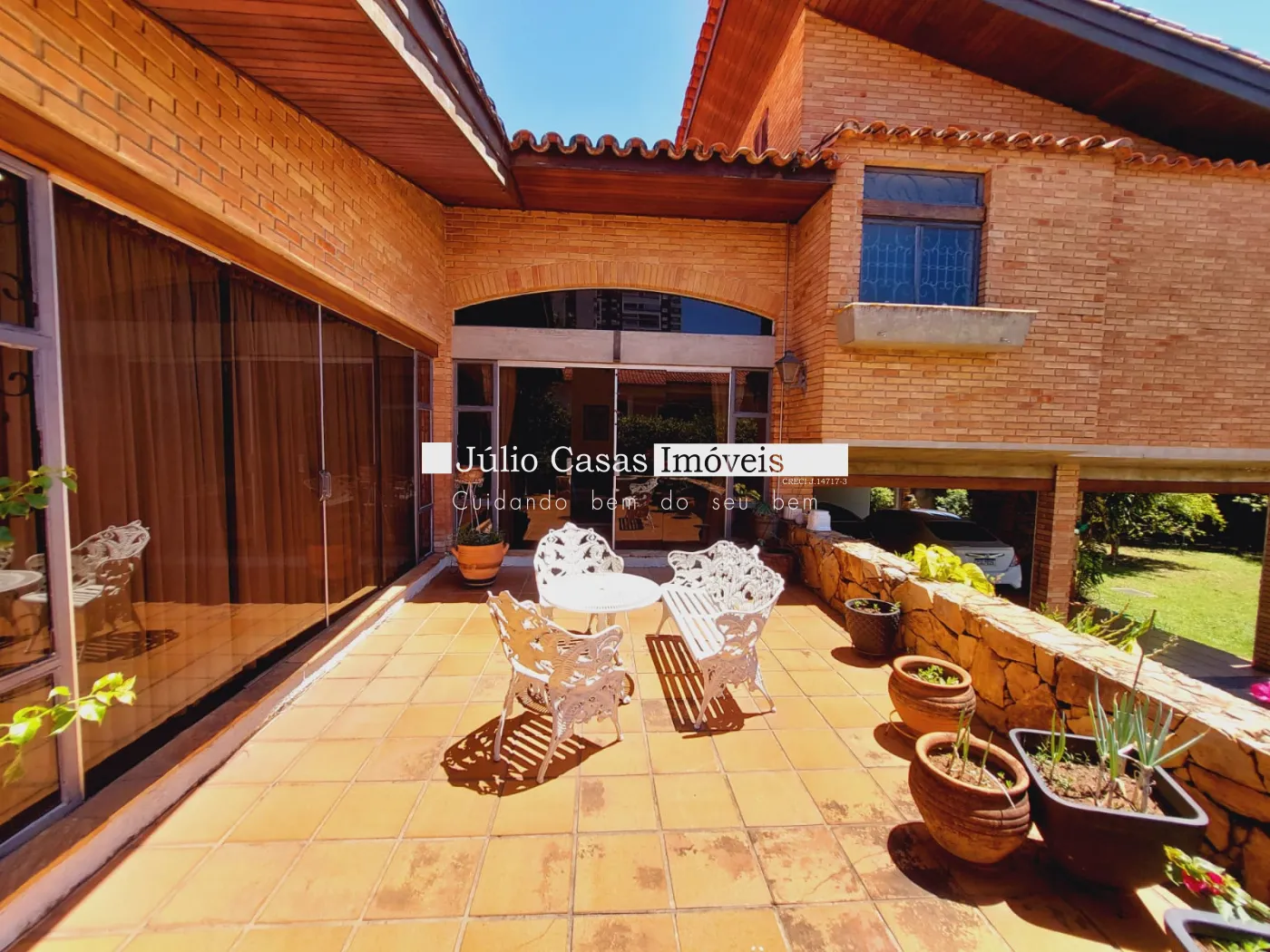Espaço gourmet com churrasqueira e pia de apoio, Garagem para 4 veículos cobertos.