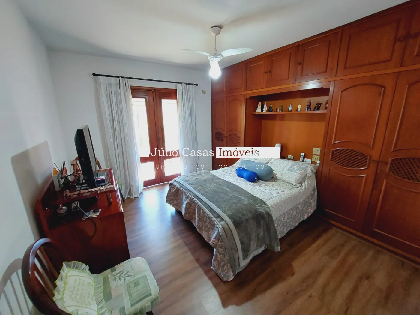 4 quartos sendo 2 suítes amplas com closet e 2 quartos com banheiros compartilhados. Quartos em piso laminado . Escritório e dependência de empregada completa.