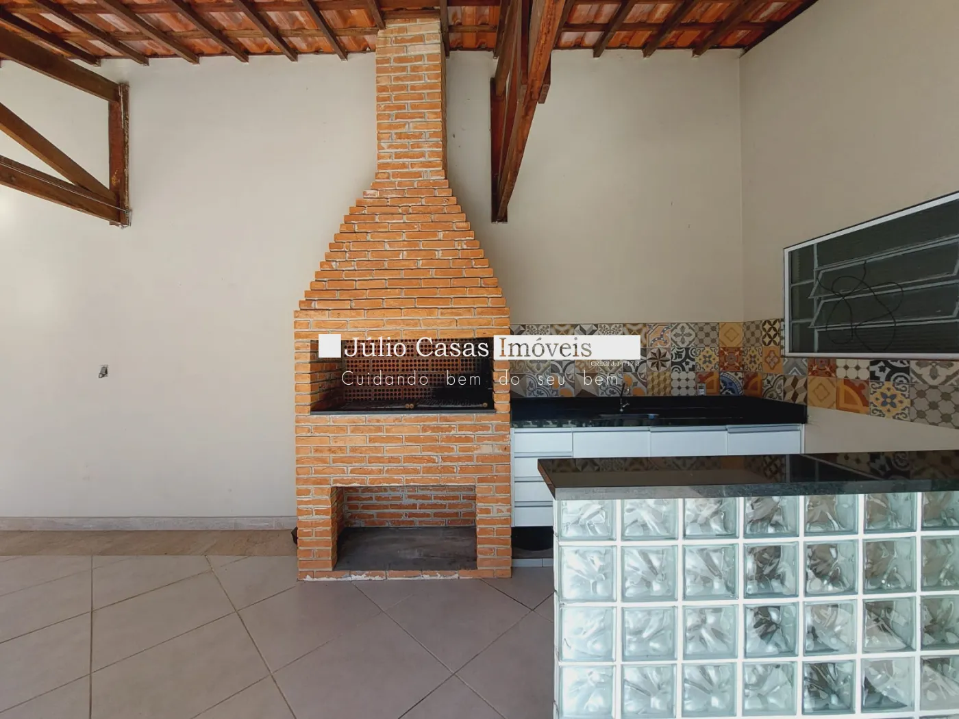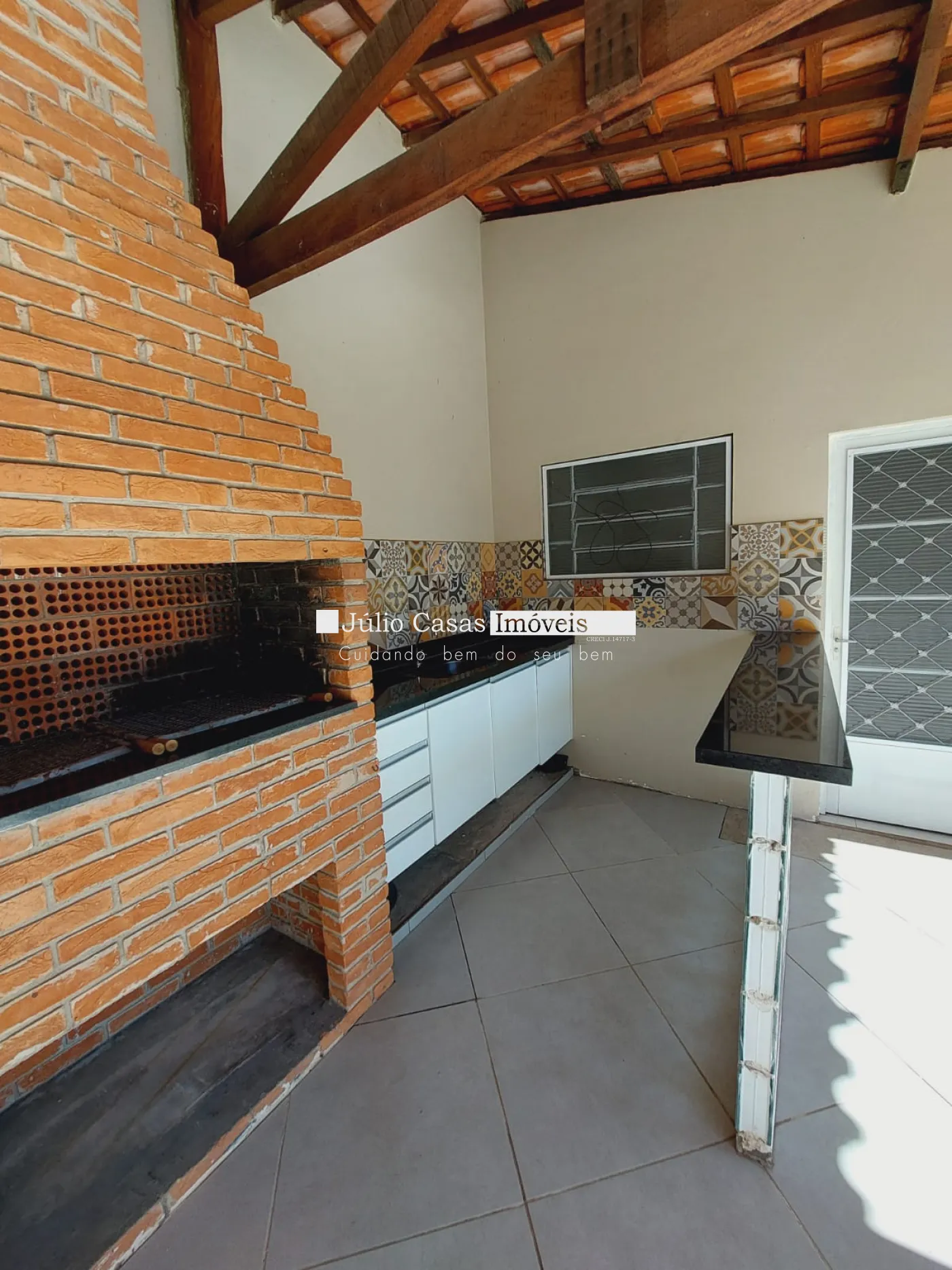 Espaço gourmet com pia em pedra granito, churrasqueira e suíte.