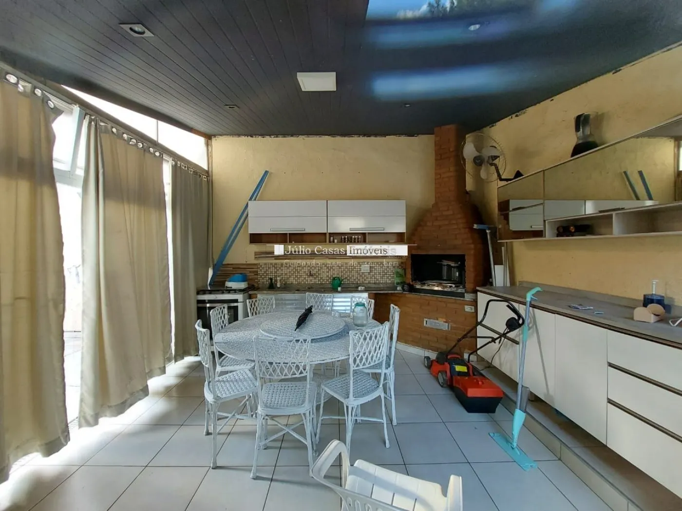 Ótima casa, garagem para 2 carros cobertos, entrada independente para o escritório e este com acesso interno para a sala. 2 salas, estar com piso em madeira e ótima iluminação, sala de jantar com piso cerâmico, cozinha bem ampla com armários, pequena lavanderia. No andar principal há 3 quartos, onde 1 serve como sala de TV, outro é uma suíte com armário, banheiro com banheira e todo azulejado, outro dormitório com pequeno armário, banheiro social com box em blindex e gabinete estes 2 dormitórios dão para uma sacada com portas em alumínio e pintura eletrostáticas. No andar superior há outra suíte e um escritório também com armários, ar condicionado e banheiro com Box em blindex , gabinete. No andar inferior temos uma área que serve como garagem para 6 carros cobertos ou uma área para festa, temos uma pequena área gourmet, banheiro e quarto de despejo, piscina, canil e entrada independente lateral Estamos à disposição para te atender. Gostaria de saber mais informações ou agendar uma visita?