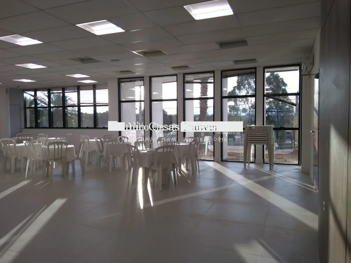 Todas as janelas com persianas, pisos em porcelanatos, ar condicionado em todos os ambientes, vaga de estacionamento para 30 veículos e 7 motos.