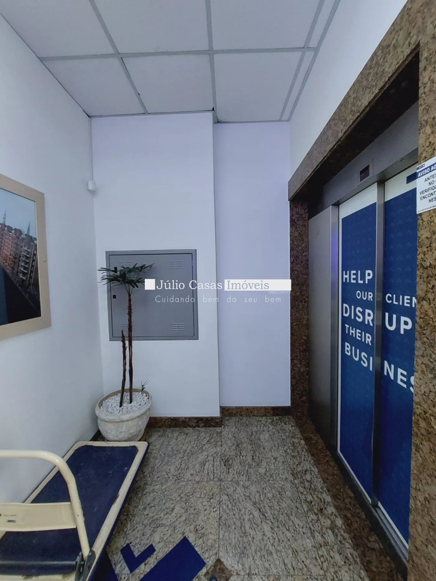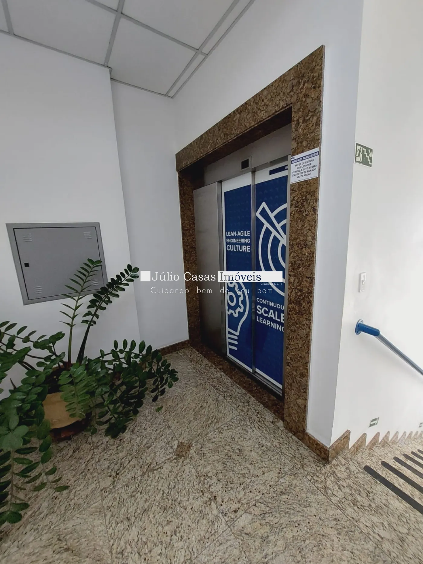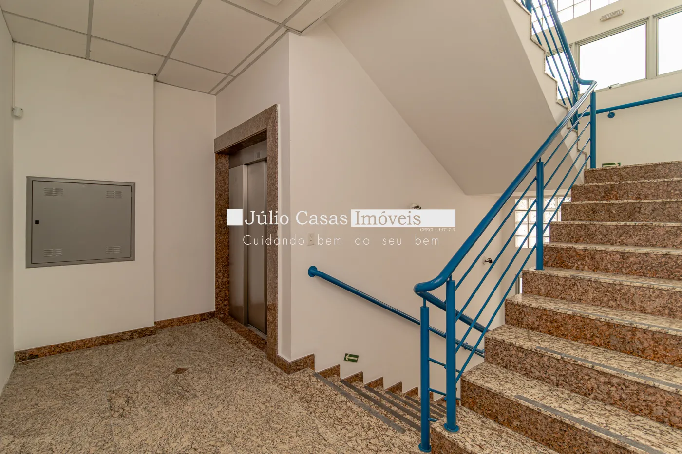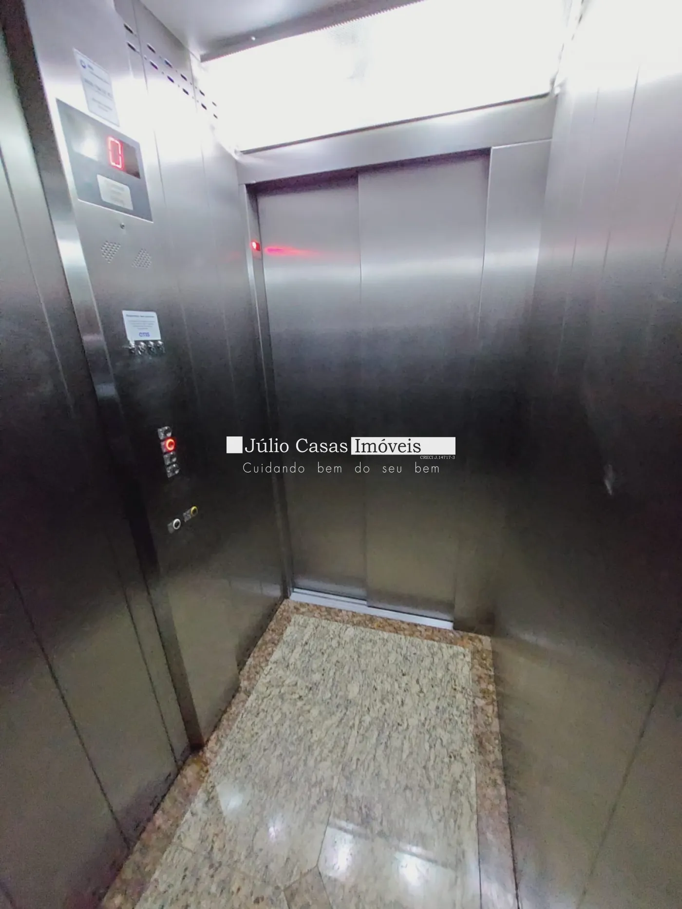 Elevador com capacidade para maca que vai da garagem ao segundo pavimento.