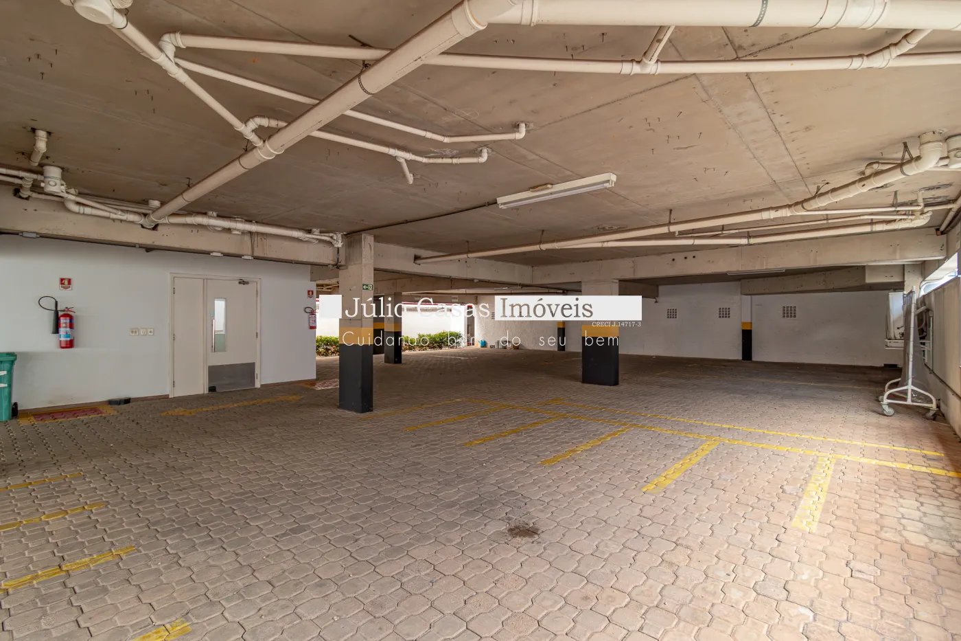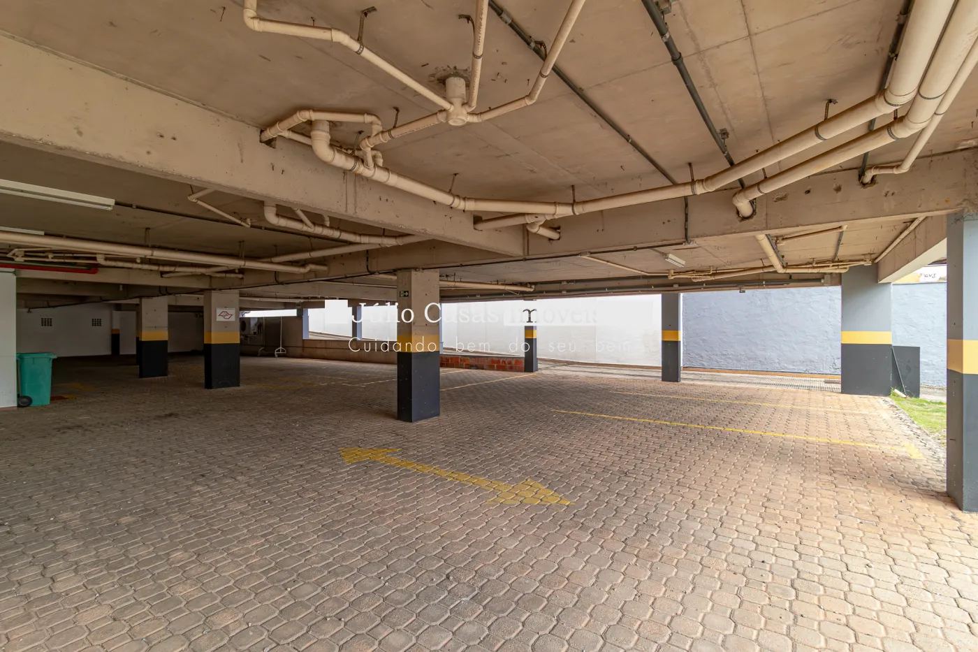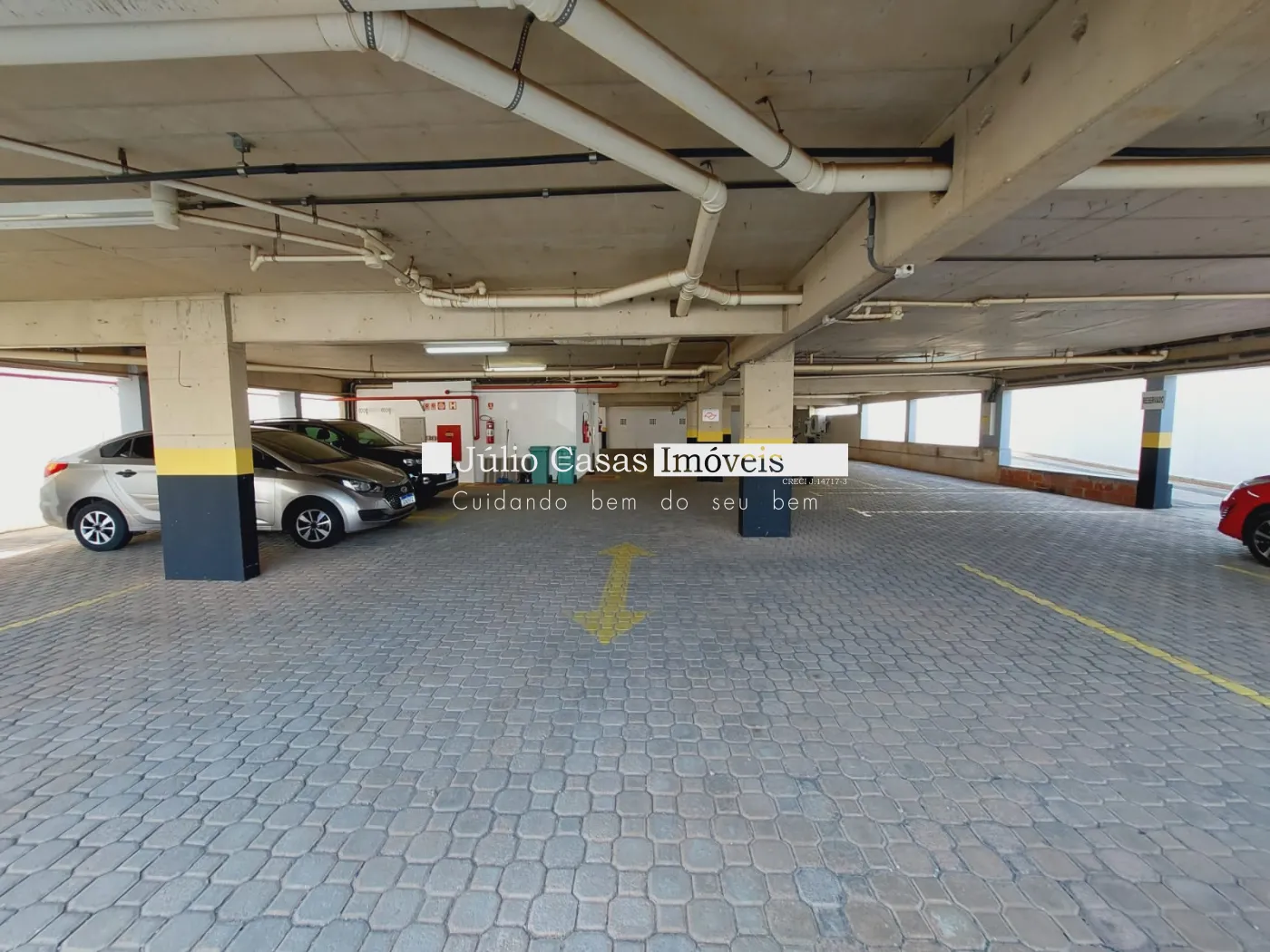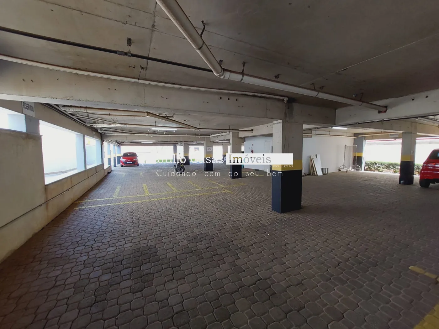 Andar inferior com 12 vagas para motos, 16 vagas cobertas e mais 15 descobertas.