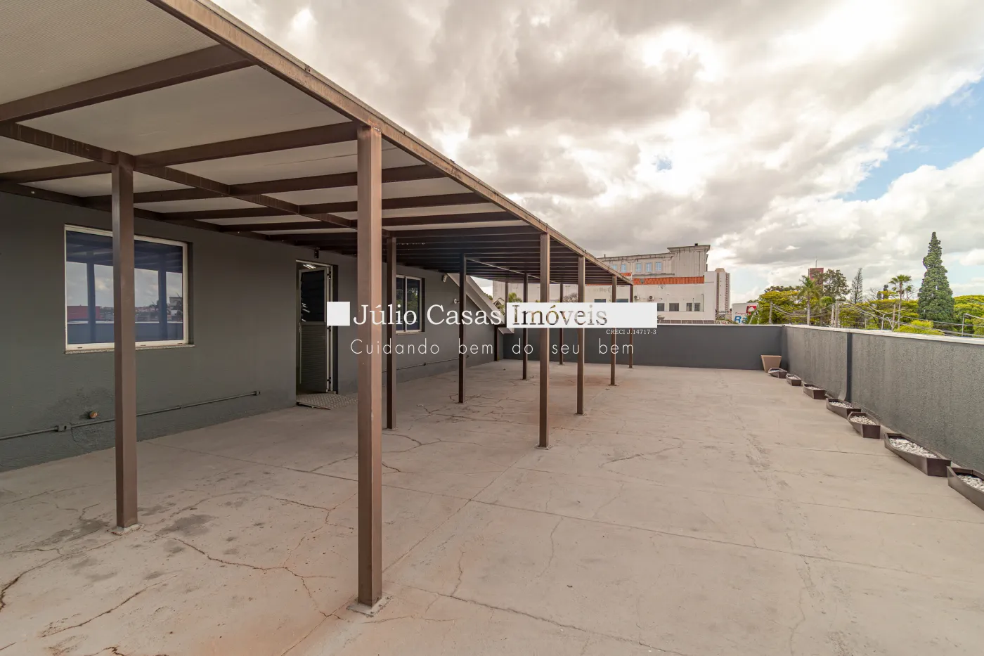 Segundo pavimento com 281,24m², varanda descoberta, salão amplo com dois ambientes e 2 depósitos.