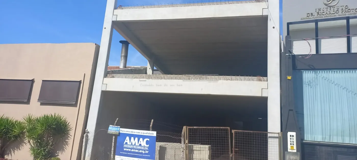 Prédio comercial em construção com 835 m² sendo piso térreo que pode ser um estacionamento, 1° andar e roof top.