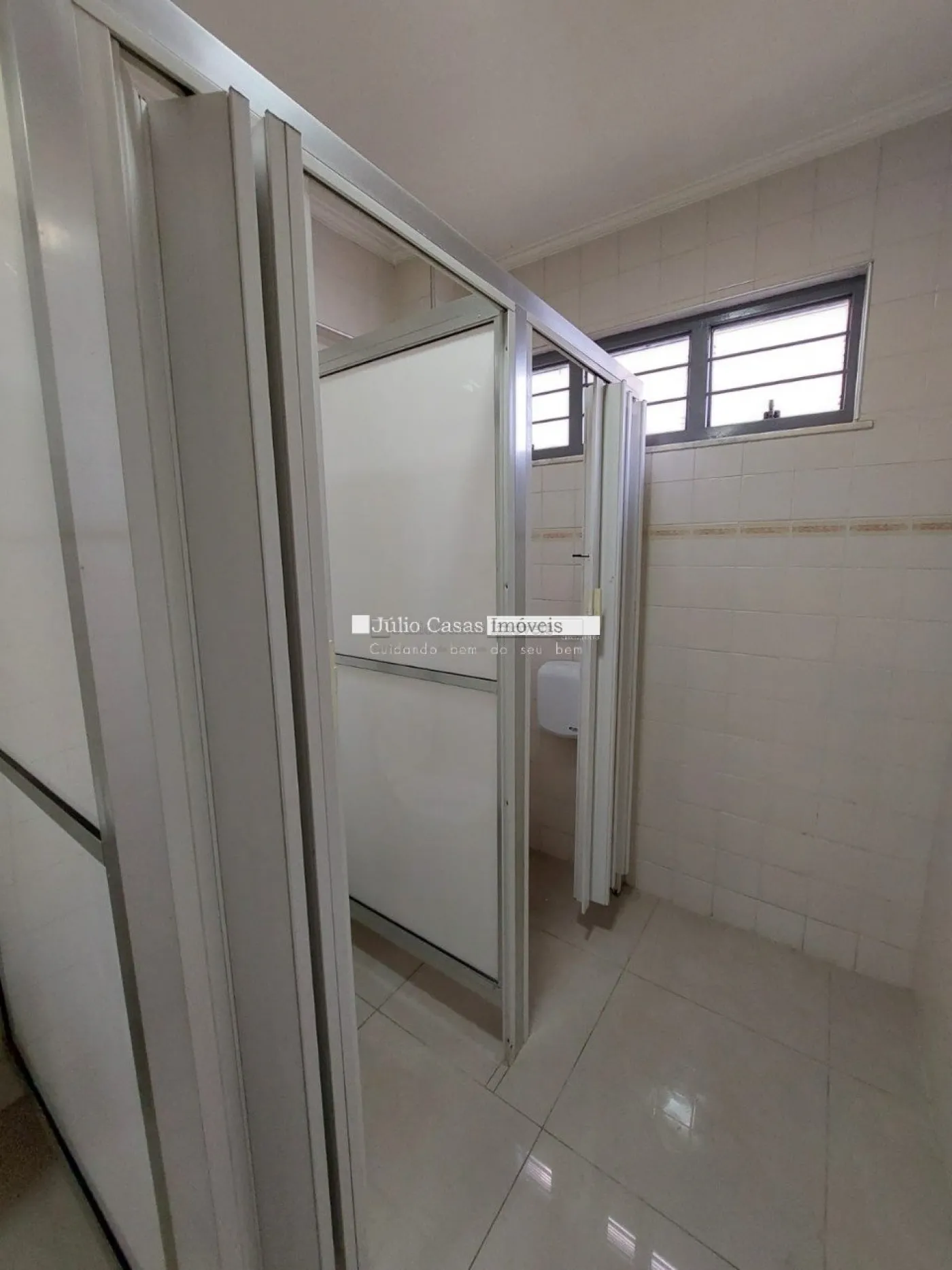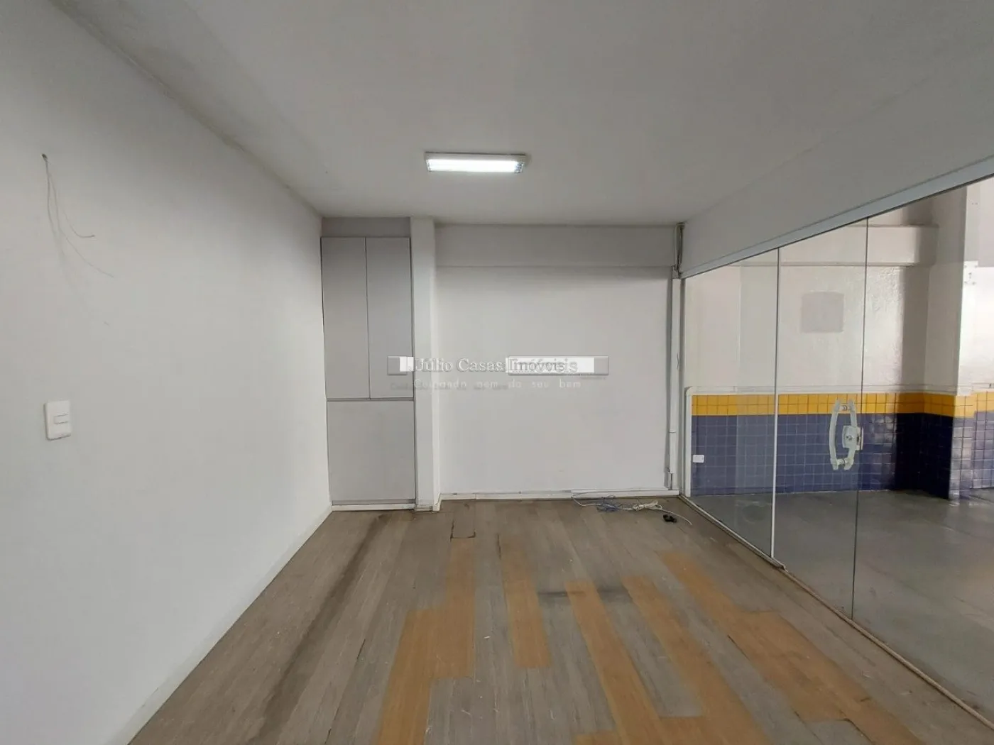 Salão em conjunto comercial com portas de vidro temperado incolor, amplo salão principal com pé direito de /- 8 metros, todo em piso cerâmico, teto em gesso rebaixado com iluminação embutida todo climatizado, copa, 5 banheiros com gabinete armário sendo 2 com ponto de chuveiro, sendo 2 no primeiro piso para deficientes físicos, mais 1 comum, porta aos fundos para pequena área de depósito, escada metálica com acesso ao amplo mezanino. 6 vagas de estacionamento fixas mais 16 rotativas. salão pode ser locado parcial. conjunto comercial com portaria.