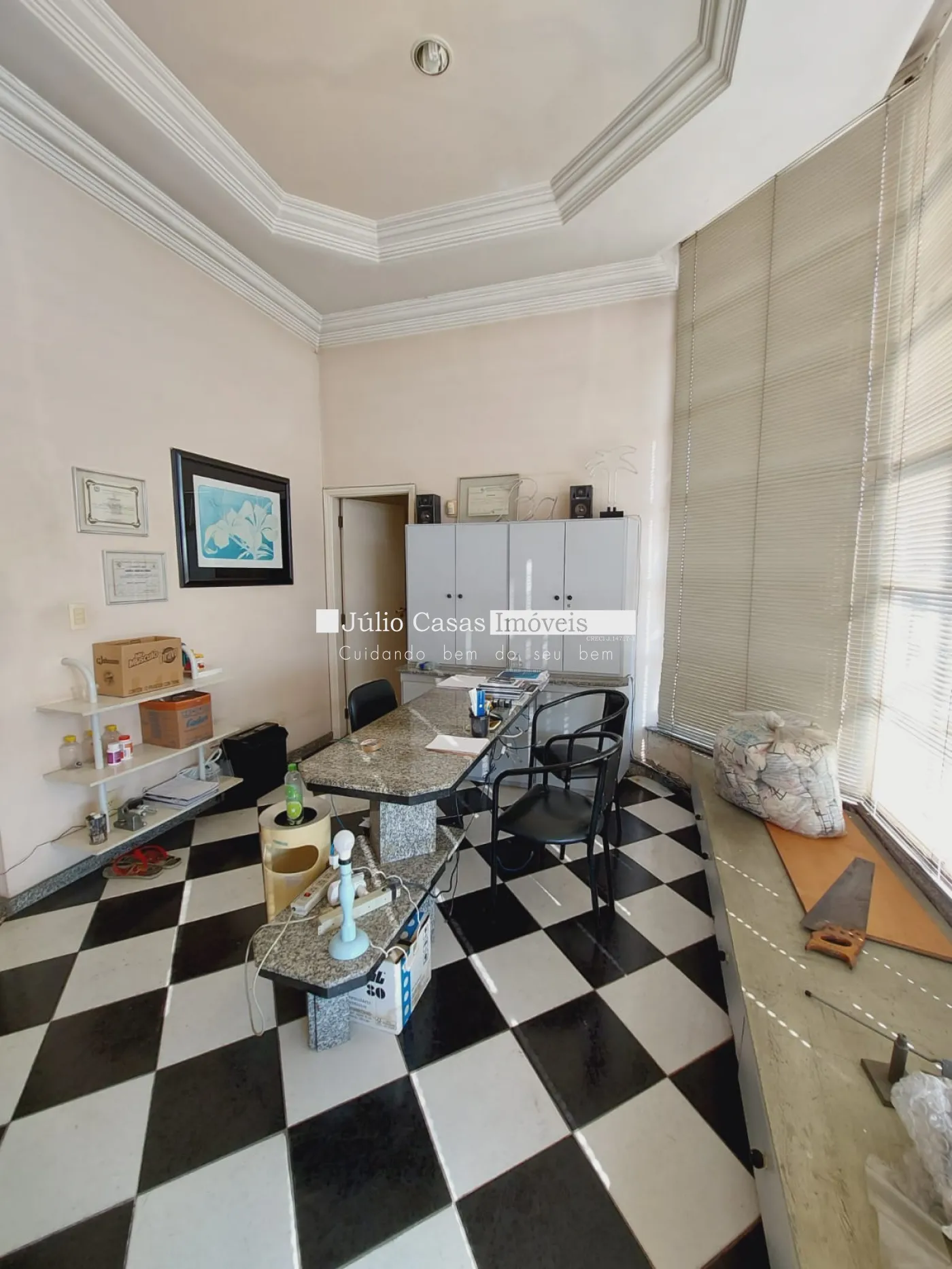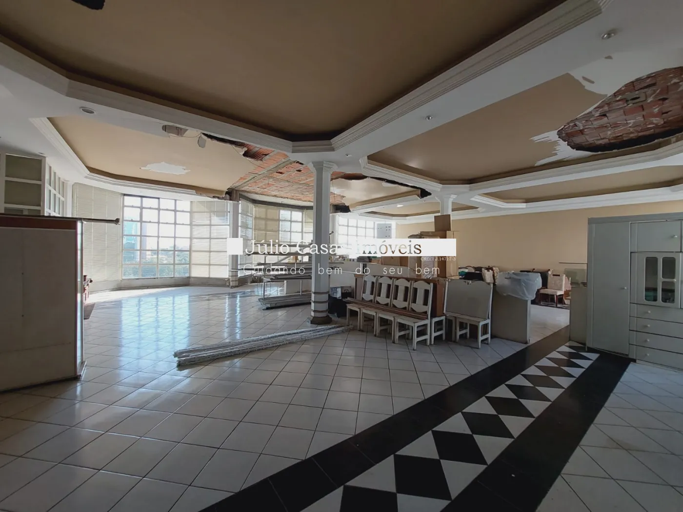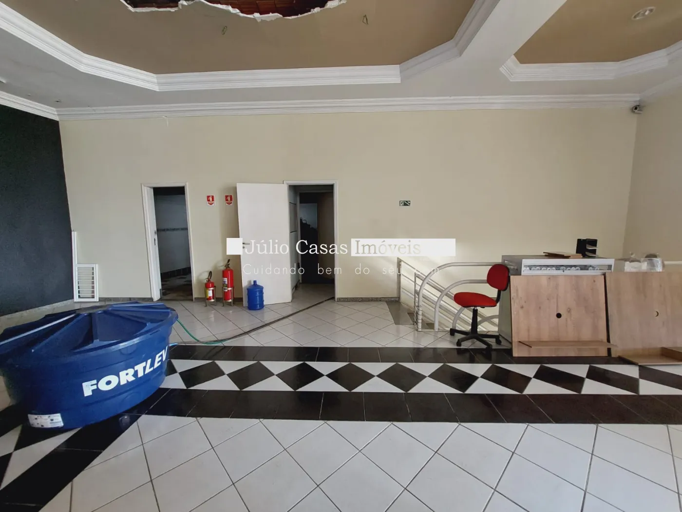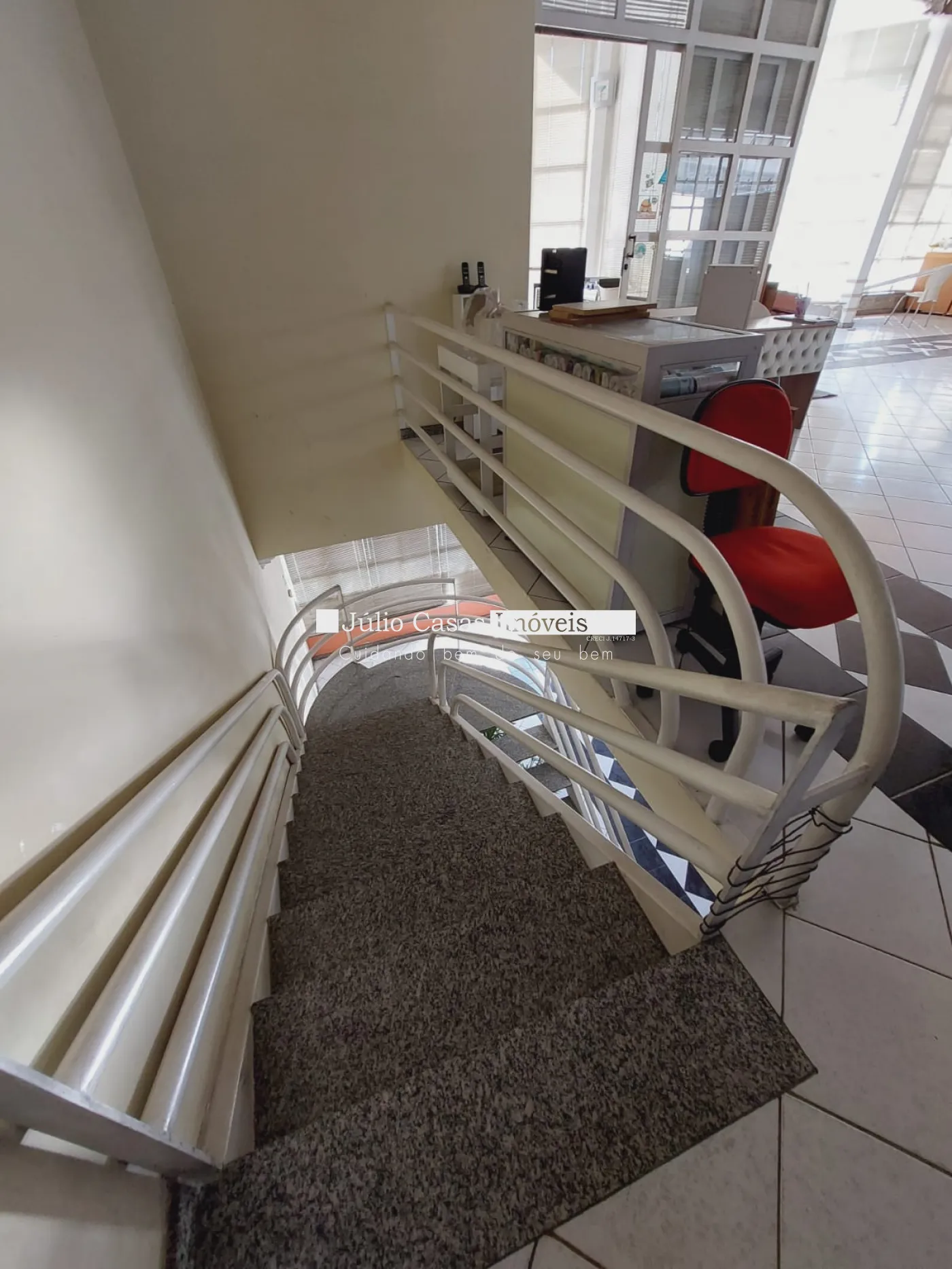 Salão em conjunto comercial com portas de vidro temperado incolor, amplo salão principal com pé direito de /- 8 metros, todo em piso cerâmico, teto em gesso rebaixado com iluminação embutida todo climatizado, copa, 5 banheiros com gabinete armário sendo 2 com ponto de chuveiro, sendo 2 no primeiro piso para deficientes físicos, mais 1 comum, porta aos fundos para pequena área de depósito, escada metálica com acesso ao amplo mezanino. 6 vagas de estacionamento fixas mais 16 rotativas. salão pode ser locado parcial. conjunto comercial com portaria.