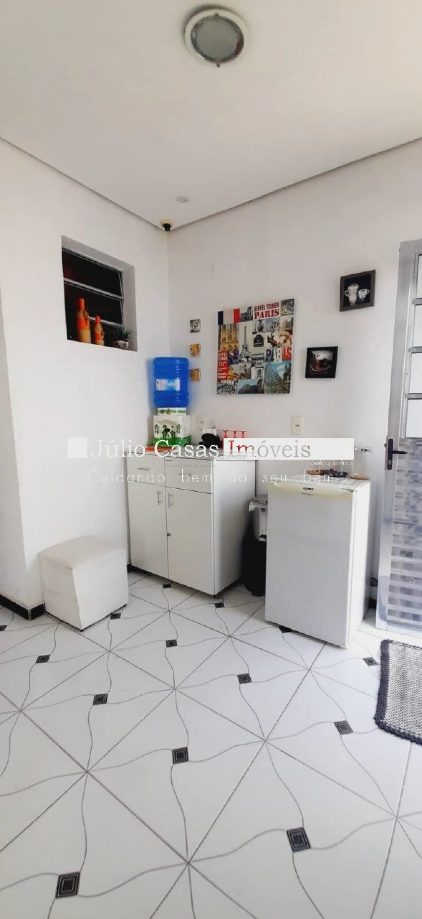 O acabamento é em piso porcelanato, oferecendo um visual moderno e de fácil manutenção.