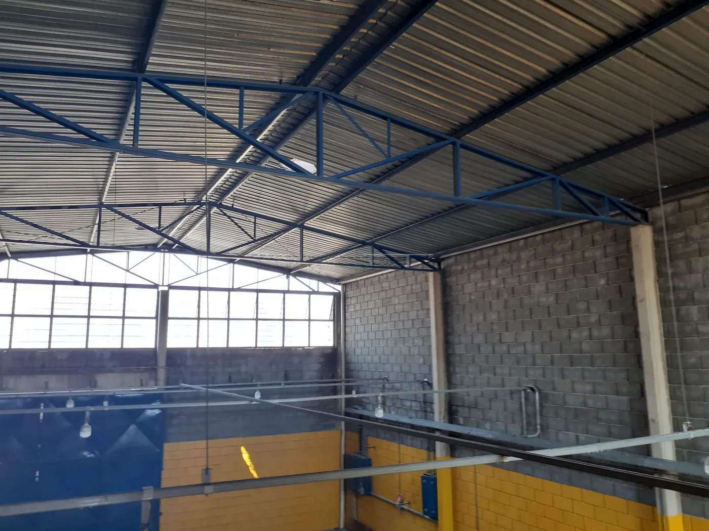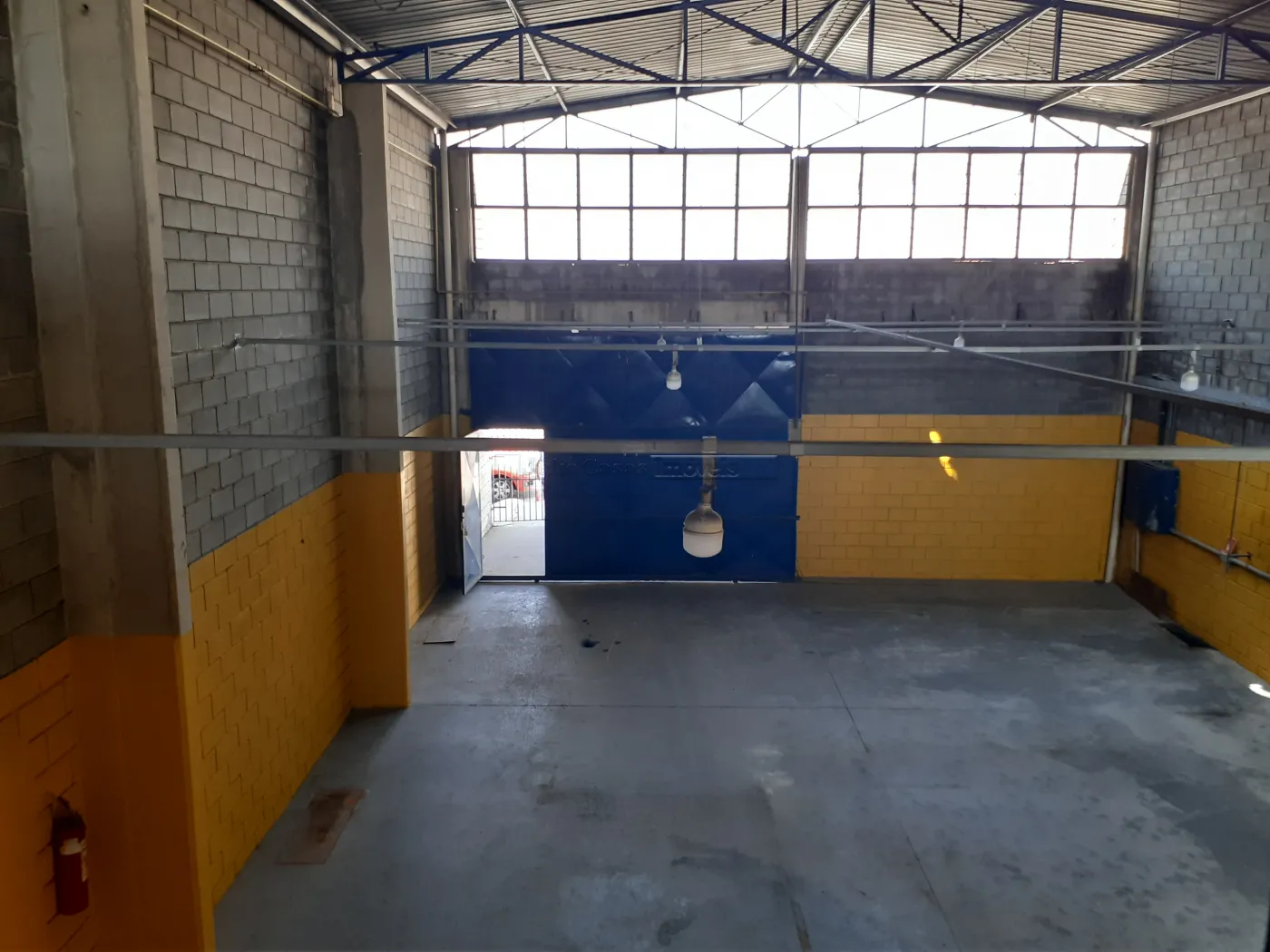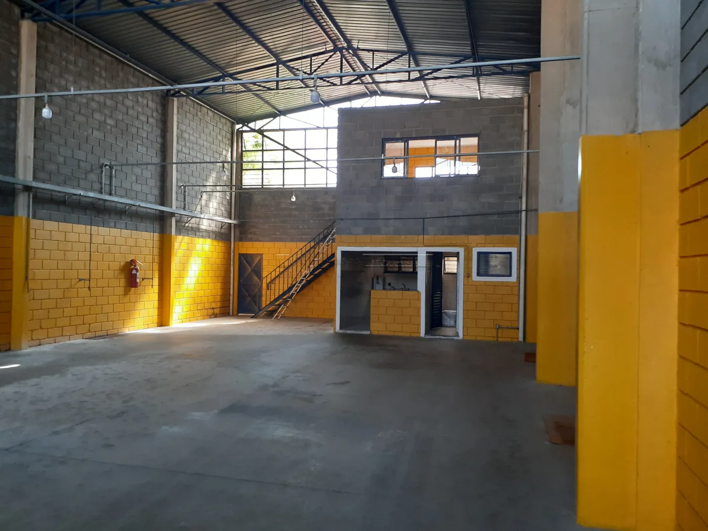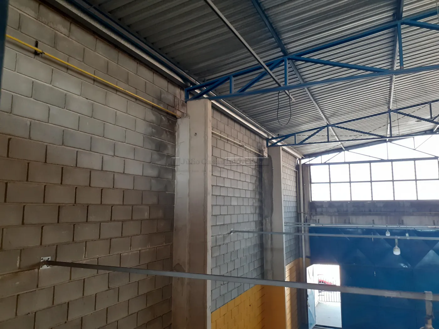 Galpão Comercial pronto para uso, construído todo em colunas de concreto e paredes em alvenaria. Telhado em telhas sanduiche e estrutura metálica, na parte frontal janelas grandes acima da porta de aço.
