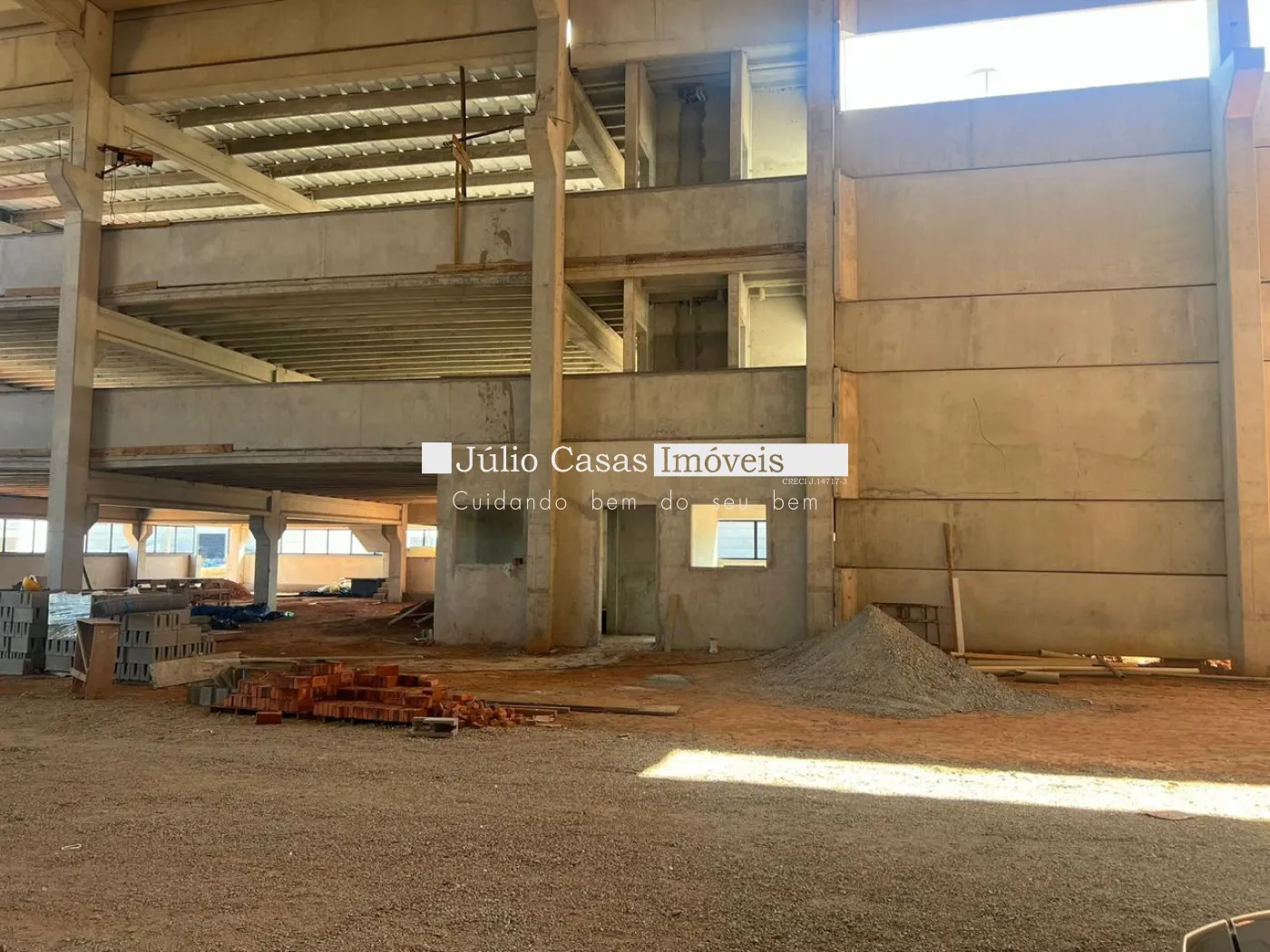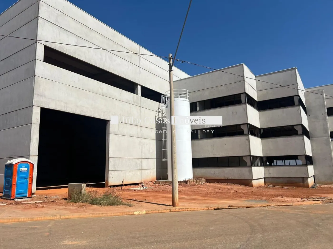 A estrutura do galpão é pré-moldada, com placas, vigas calha e terças em concreto, e a tubulação está embutida nos pilares. As telhas termoacústicas PIR garantem ótima climatização e isolamento acústico. Além disso, o galpão conta com portaria 24 horas para segurança adicional.