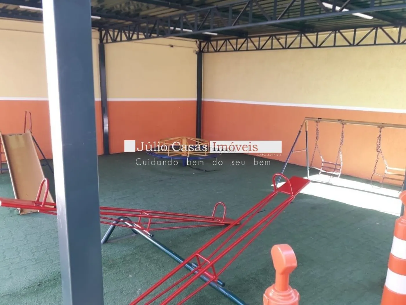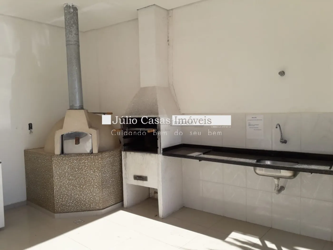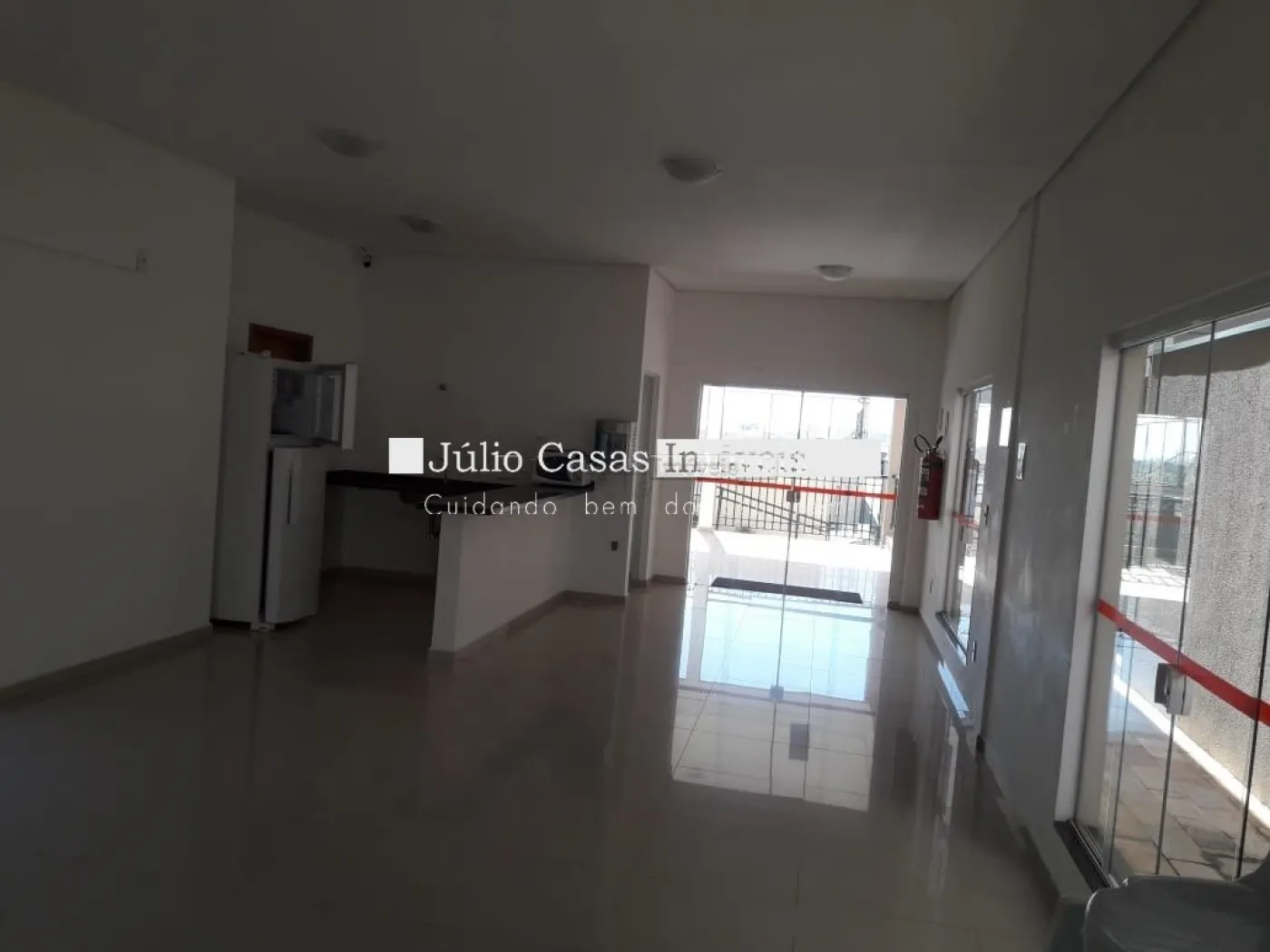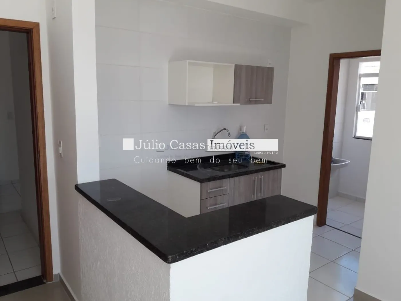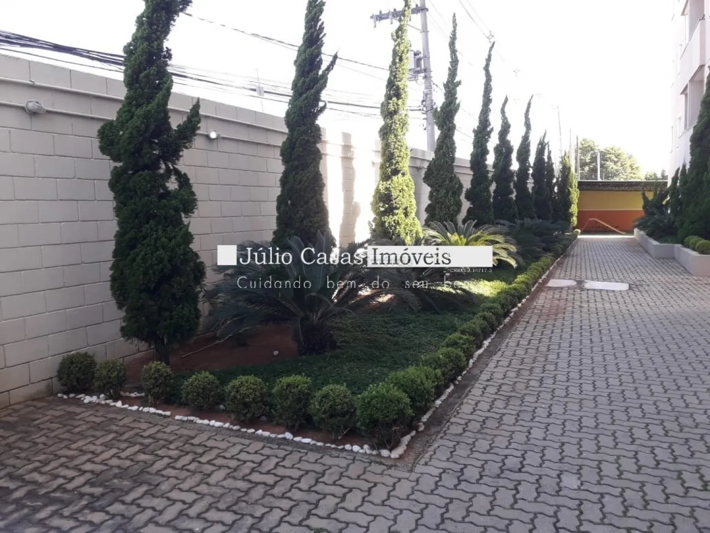 Sala de estar com sacada, integrada com a cozinha com armários e área de serviço. 2 quartos sendo 1 com armário, wc social com box em vidro e gabinete. 1 vaga de garagem rotativa, apartamento todo em piso cerâmico. 2 elevadores, mercadinho, portaria 24 h, salão de festas, piscina, playground.
