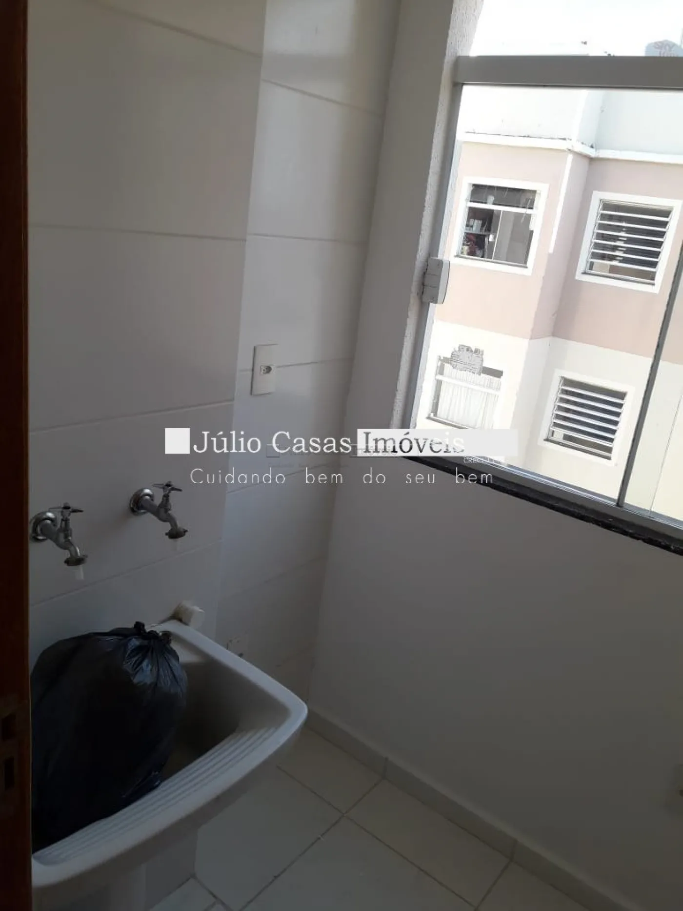 Apartamento com 75m² em andar alto, 10 andar, contém 01 sala 2 ambientes com piso cerâmico, porta balcão em alumínio com saída para sacada e vista panorâmica, cozinha americana com balcão e mureta em granito preto, 01 pia com gabinete em formica, 01 armário suspenso também em formica e uma das paredes revestida até o teto. Lavanderia com piso cerâmico e uma das paredes revestidas até a altura do teto, 1 tanque em louça. 02 quartos em piso cerâmico, janelas em alumínio, armários embutidos em formica clara, 01 banheiro com piso cerâmico, bancada em granito preto, armário em formica, espelho, box em vidro temperado, chuveiro instalado.