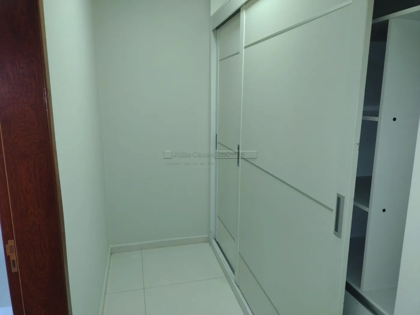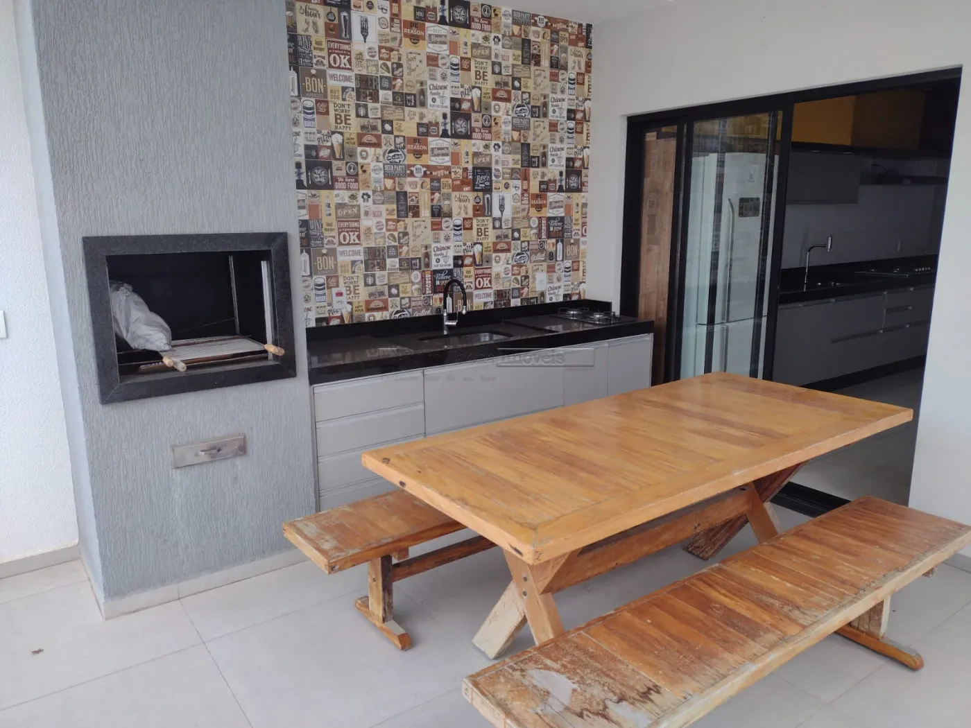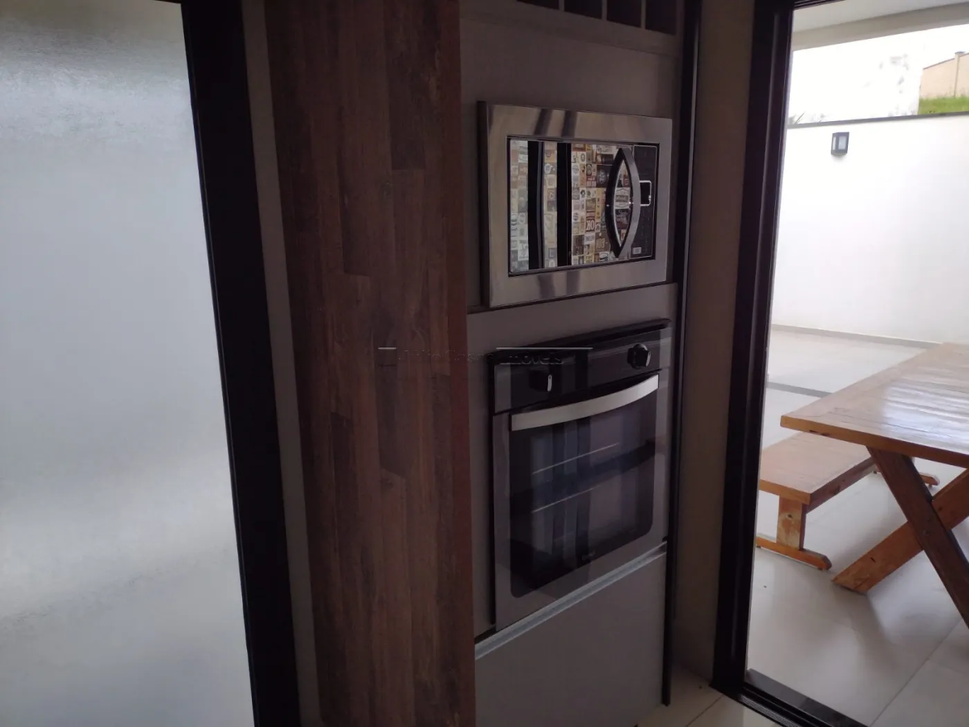 A área gourmet é completa, equipada com churrasqueira, balcão em granito preto absoluto e fogão cooktop de duas bocas. A residência dispõe de três amplas suítes, sendo uma máster com closet, porta balcão com veneziana automatizada e acesso à sacada. Todos os ambientes têm pisos e revestimentos em porcelanato, e os banheiros são equipados com cubas esculpidas em mármore e ar condicionado.