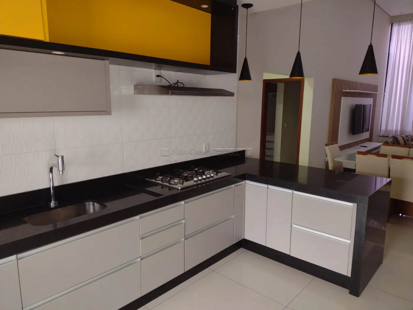 Casa assobradada com acabamento impecável e materiais de primeira qualidade. Possui sala com pé direito alto, teto em gesso e luminárias embutidas em LED. As salas de estar, jantar e cozinha são integradas, criando um espaço amplo e funcional. Conta ainda com lavabo, escritório, área de serviço e duas entradas de serviço independentes.