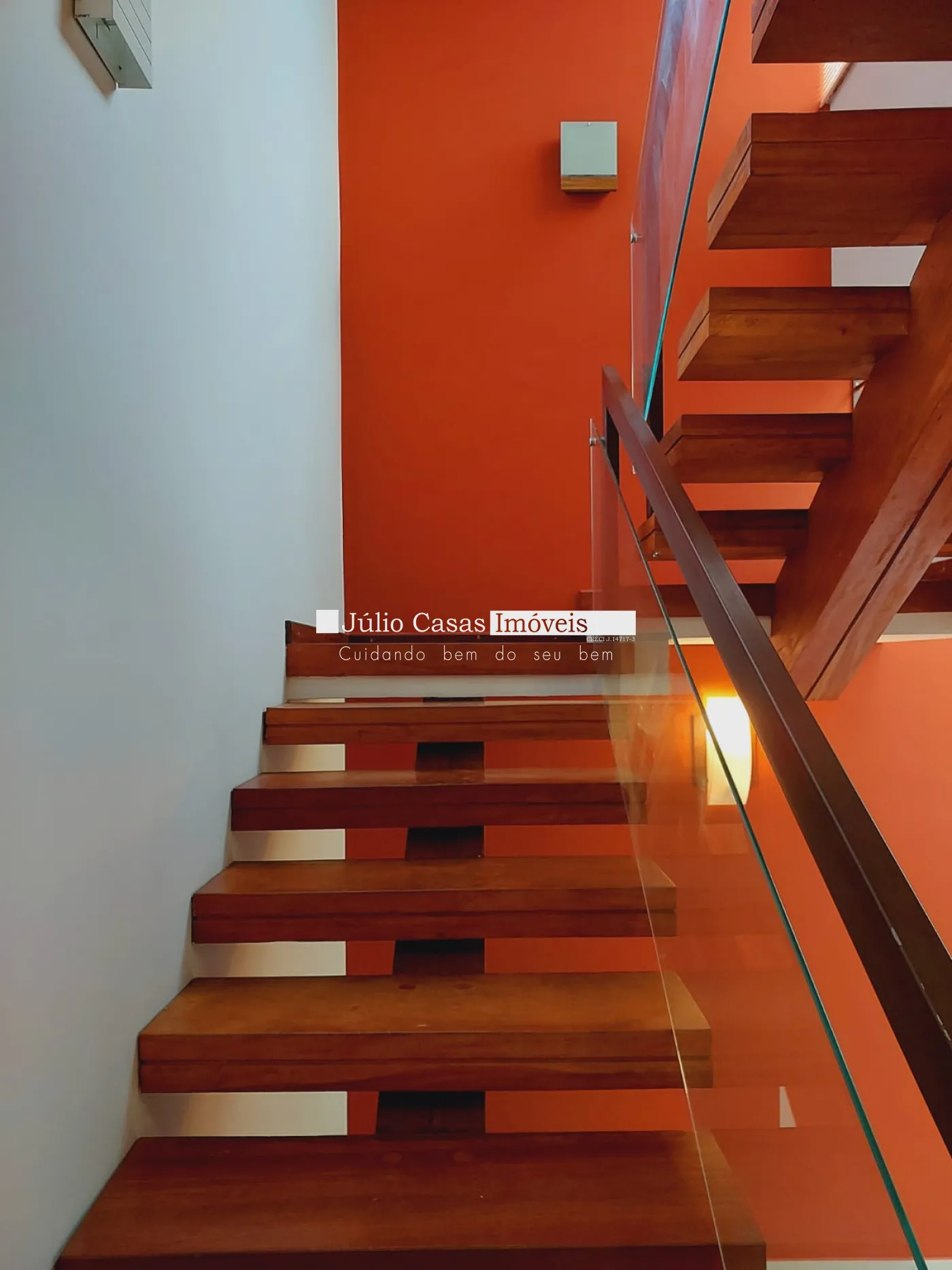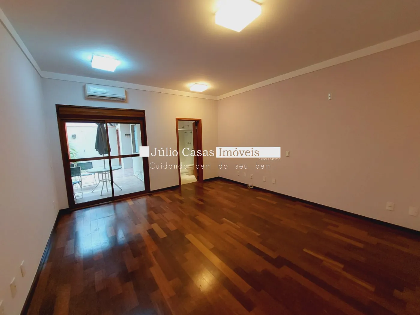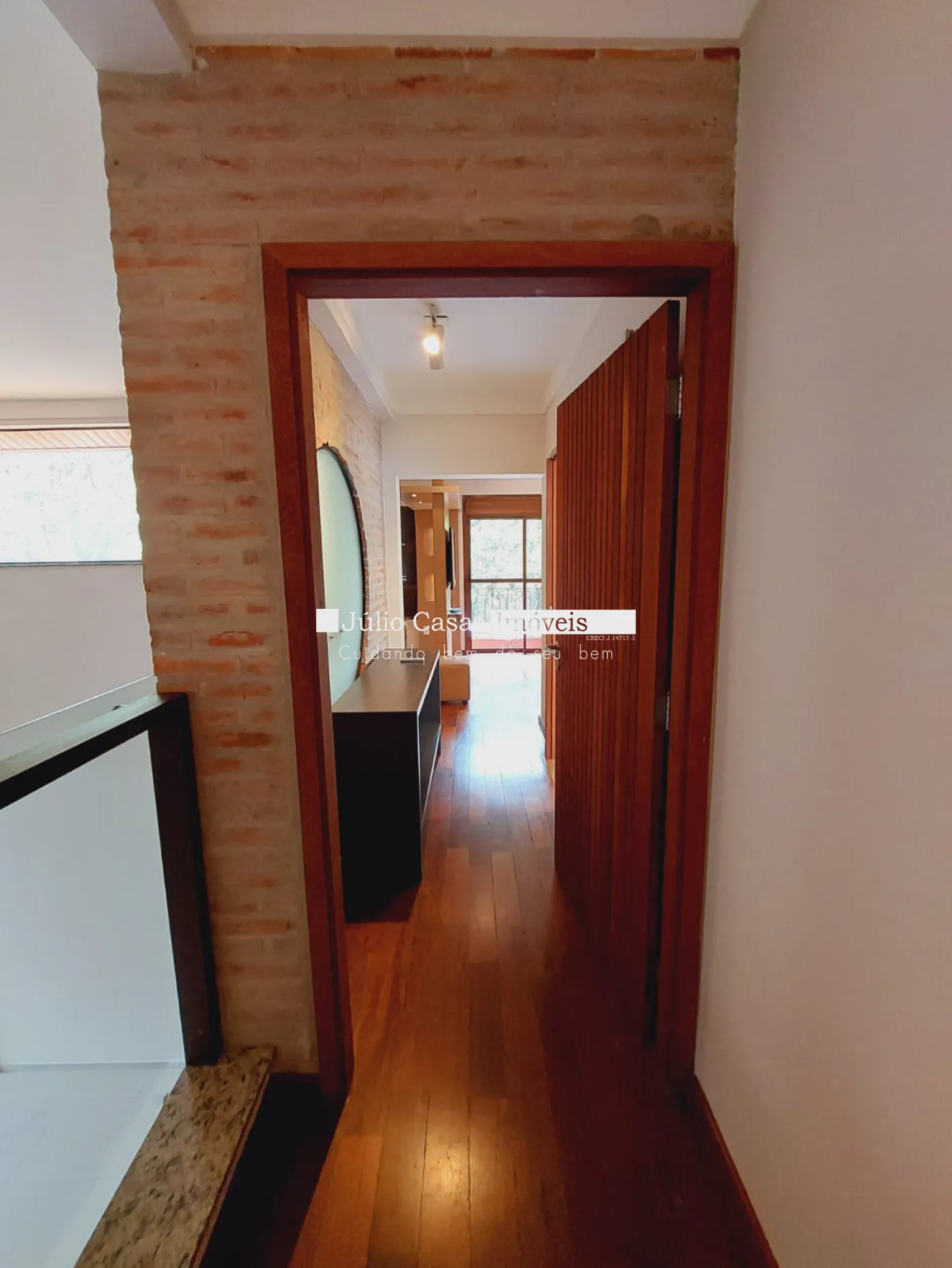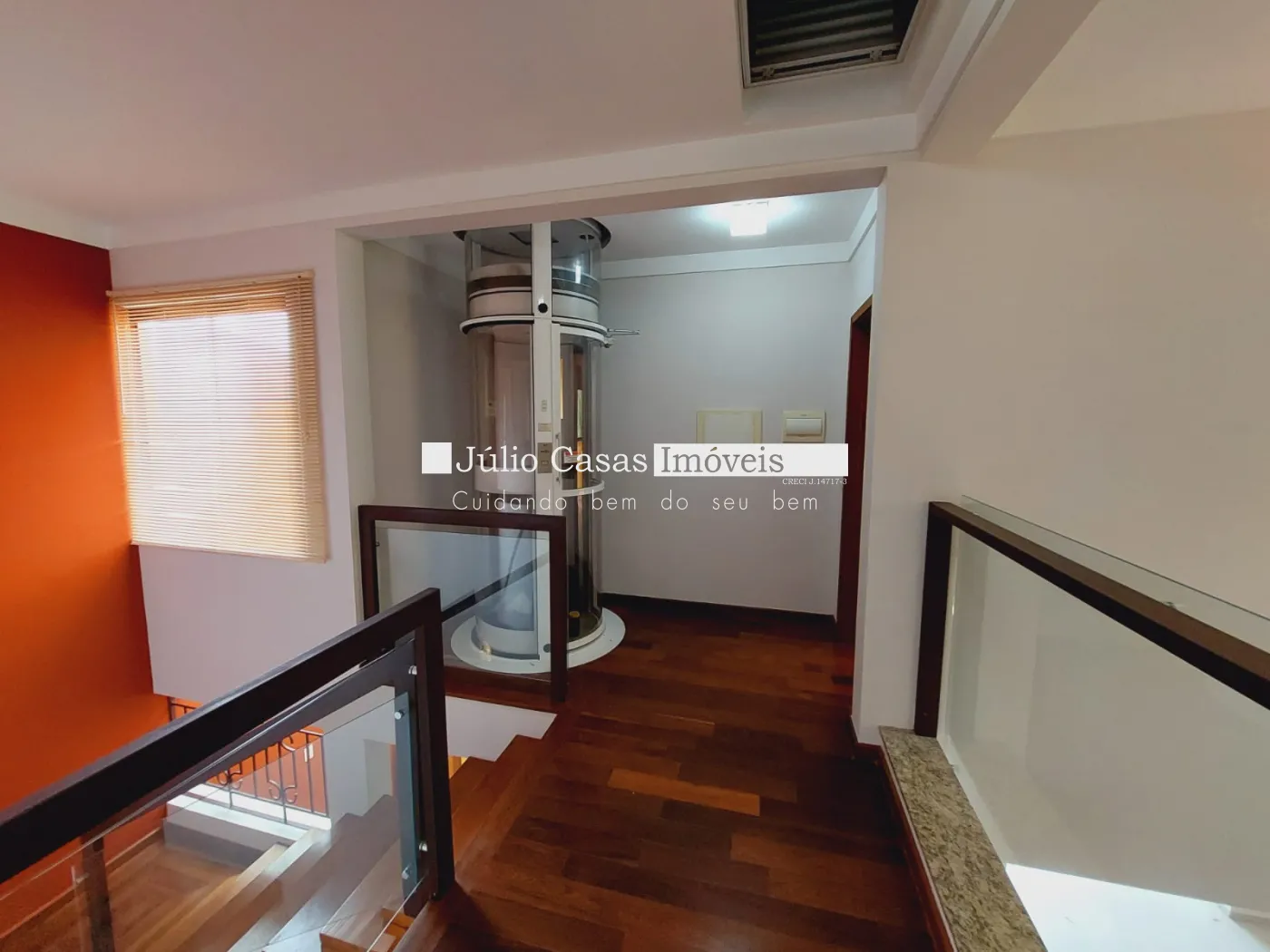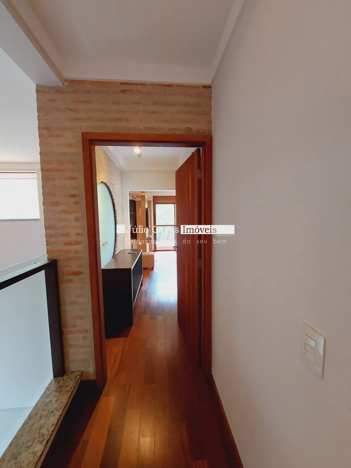 Andar superior com 3 suítes amplas 1 sendo máster com closet todas com ar condicionado, banheiros com box em vidro e gabinetes, quartos em piso madeira.
