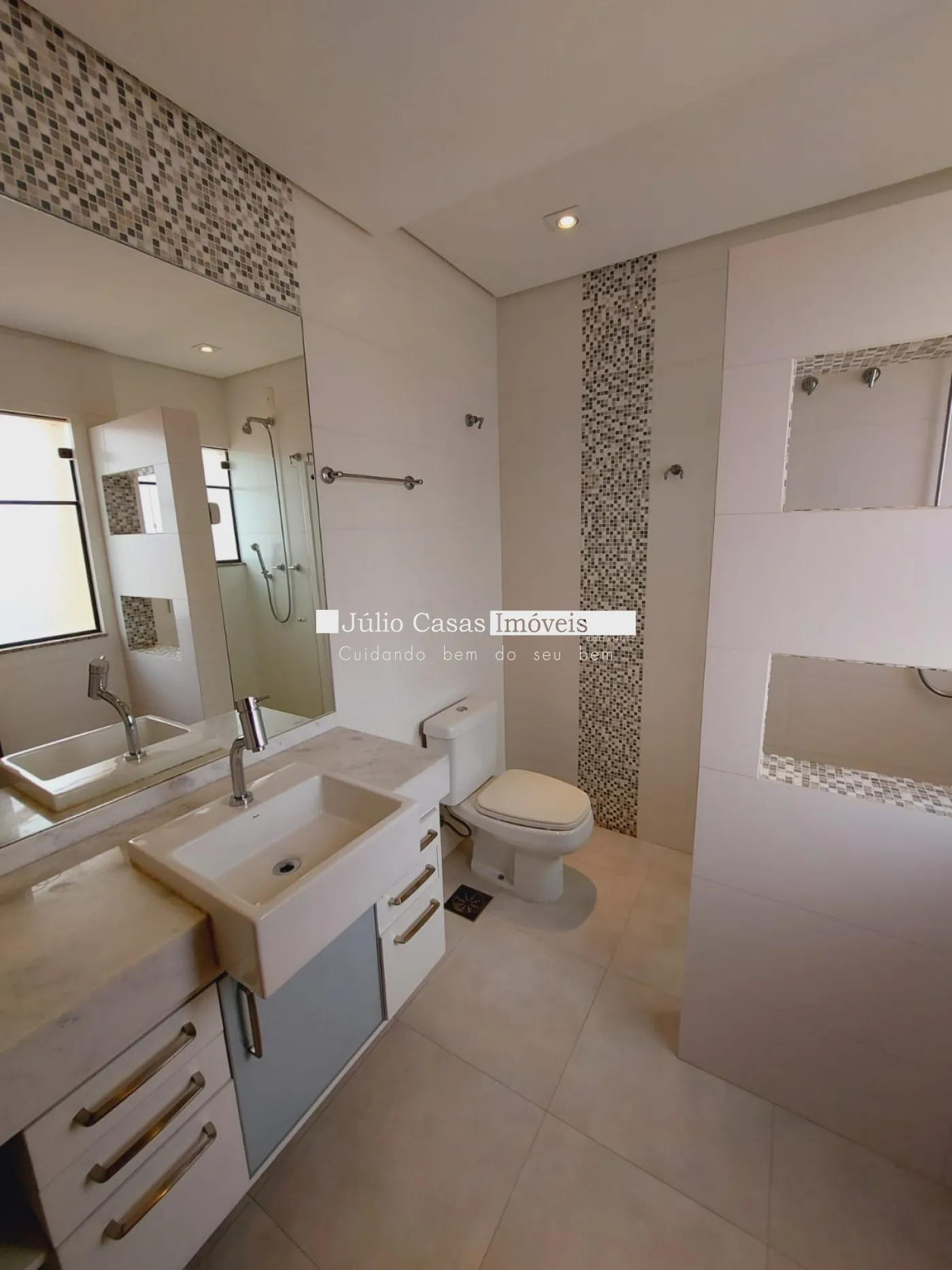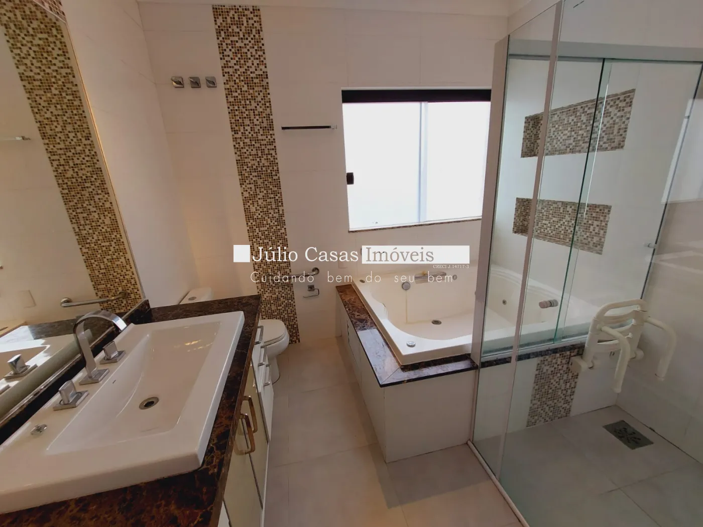 Sobrado com sala de estar e jantar com pé direito alto, cozinha ampla, área gourmet, despensa, lavanderia ampla, quarto de despejo, wc externo para suporte da piscina. wc com box em vidro até o teto, janelas com persianas automatizadas, espelhos com iluminação em LED. Piscina com preparação para aquecimento solar, piso atérmico ao redor e iluminação, sistema de energia fotovoltaica, aquecimento na casa com boiler de 600L, preparação pronta para ar condicionado nas suítes, sala de estar e sala de jantar, pisos e revestimentos em porcelanato primeira linha. 4 vagas de garagem sendo 2 cobertas.