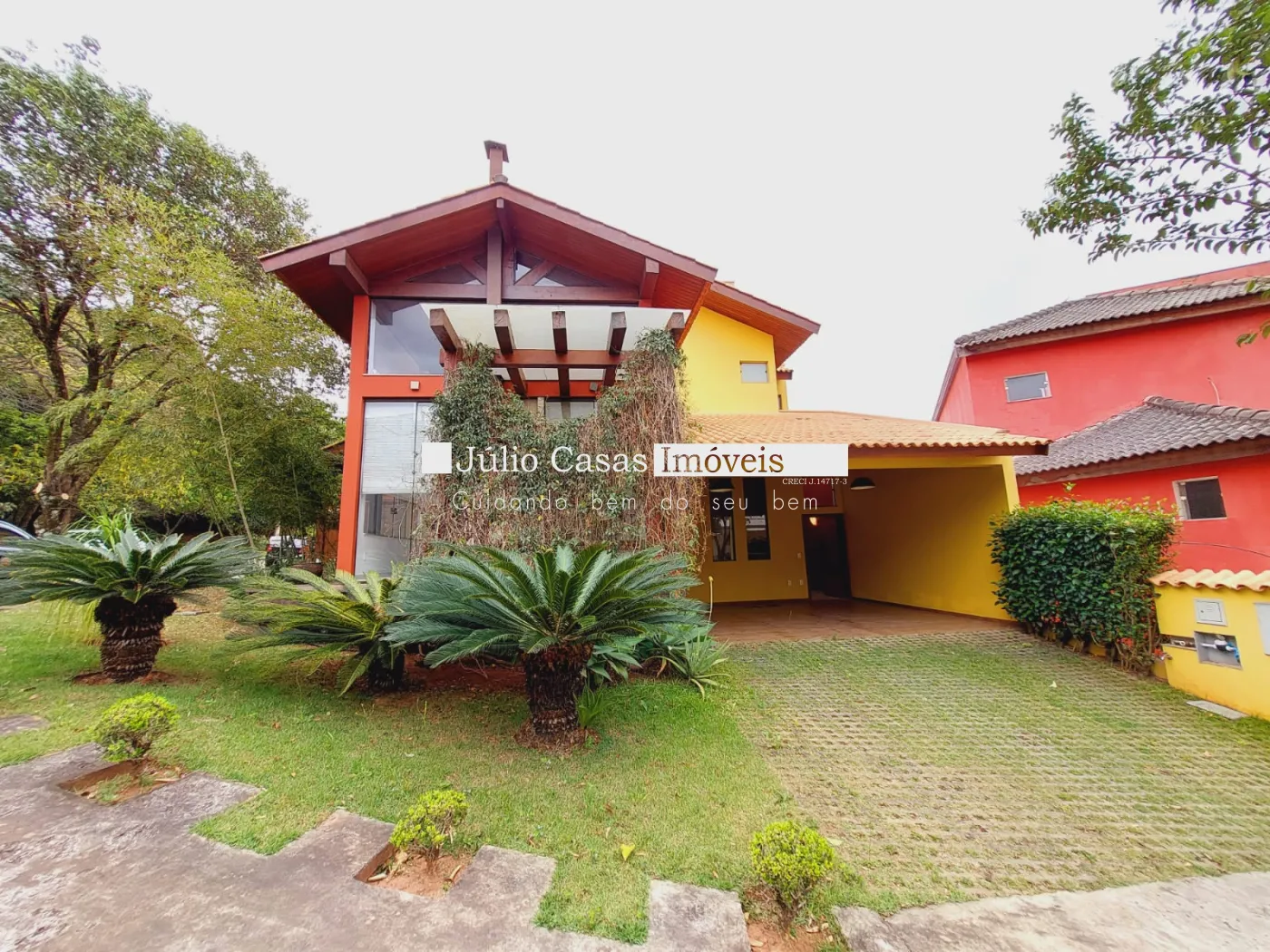 Casa a venda e aluguel no condomínio Aldeia da Mata com elevador, sala de estar com lareira com pé direito duplo, sala de jantar, sala de televisão com wc, lavabo, cozinha toda modulada e sala de almoço, área de serviço com armários, depósito e 5 vagas de garagem sendo 3 cobertas. Área gourmet com churrasqueira, pia de apoio, ofurô, quintal gramado com paisagismo.