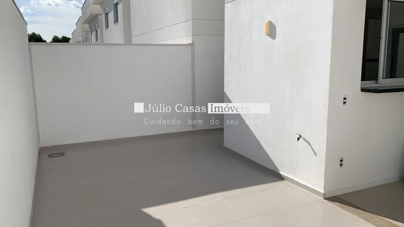 Casa em condomínio para aluguel com sala de estar e jantar, lavabo, cozinha com armários, área gourmet, 3 quartos 1 sendo suíte, wc social, área de serviço e wc externo.