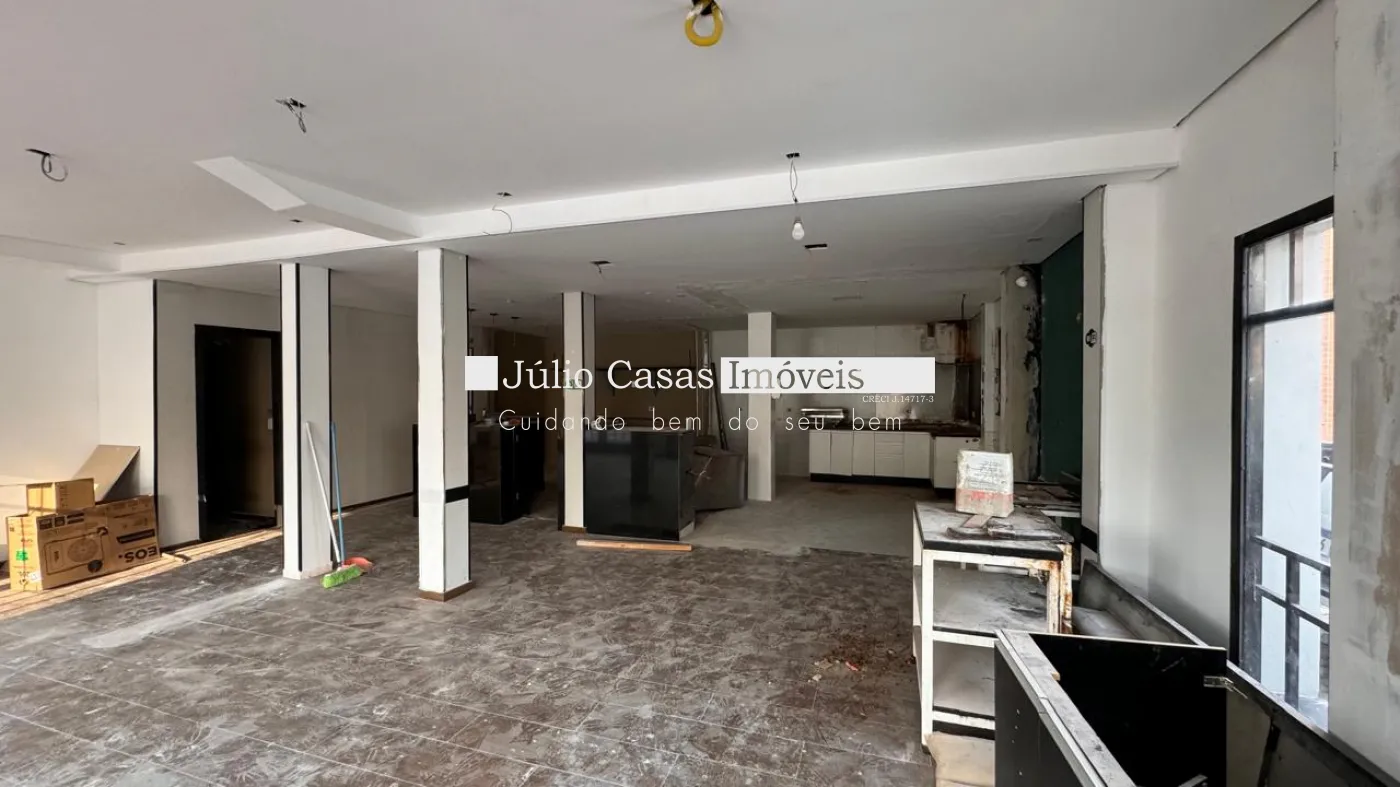 O andar superior com 200 m², inclui seis salas comerciais amplas e oferece uma vista privilegiada para a avenida.