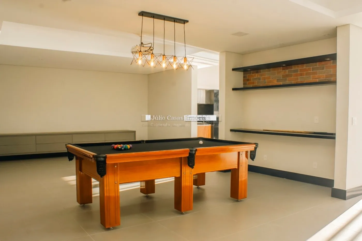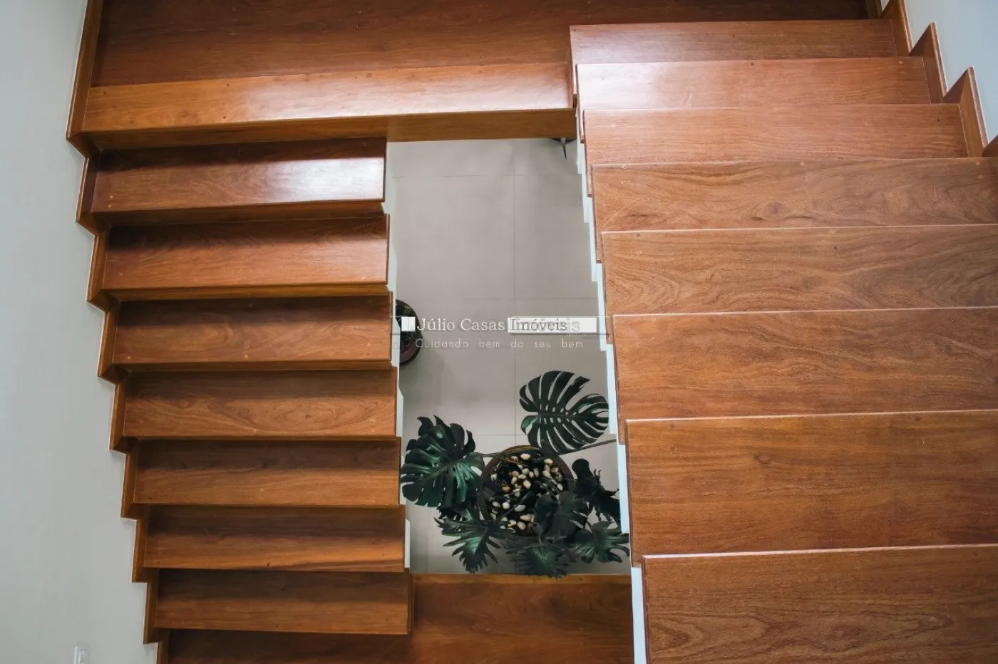 A casa possui 3 andares, 4 quartos, 6 banheiros, 7 salas (incluindo sala de brinquedo e sala de jantar), 2 cozinhas (1 gourmet e 1 normal), despensa, lavanderia com área externa para secagem de roupa, piscina de 60 m² com hidro e aquecimento, escritório, academia, sala de jogos, salão gourmet, salão de jogos, bar e uma área para adega climatizada. Adicionalmente, a casa conta com sistema de aquecimento solar com pressurizador, sistema de aquecimento solar e elétrico para a piscina com capa termostática, 60 m² de deck e sistema de som integrado nos dois andares sociais.