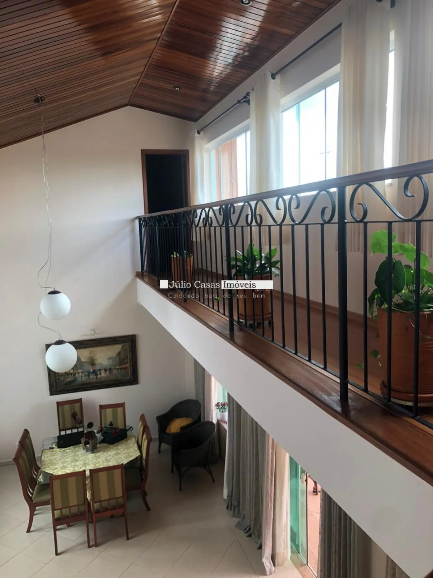 No andar superior, encontram-se quatro dormitórios com piso laminado, sendo dois deles suítes, incluindo uma suíte master. A casa também possui sauna à vapor e sistema de aquecimento solar, proporcionando conforto e sustentabilidade.