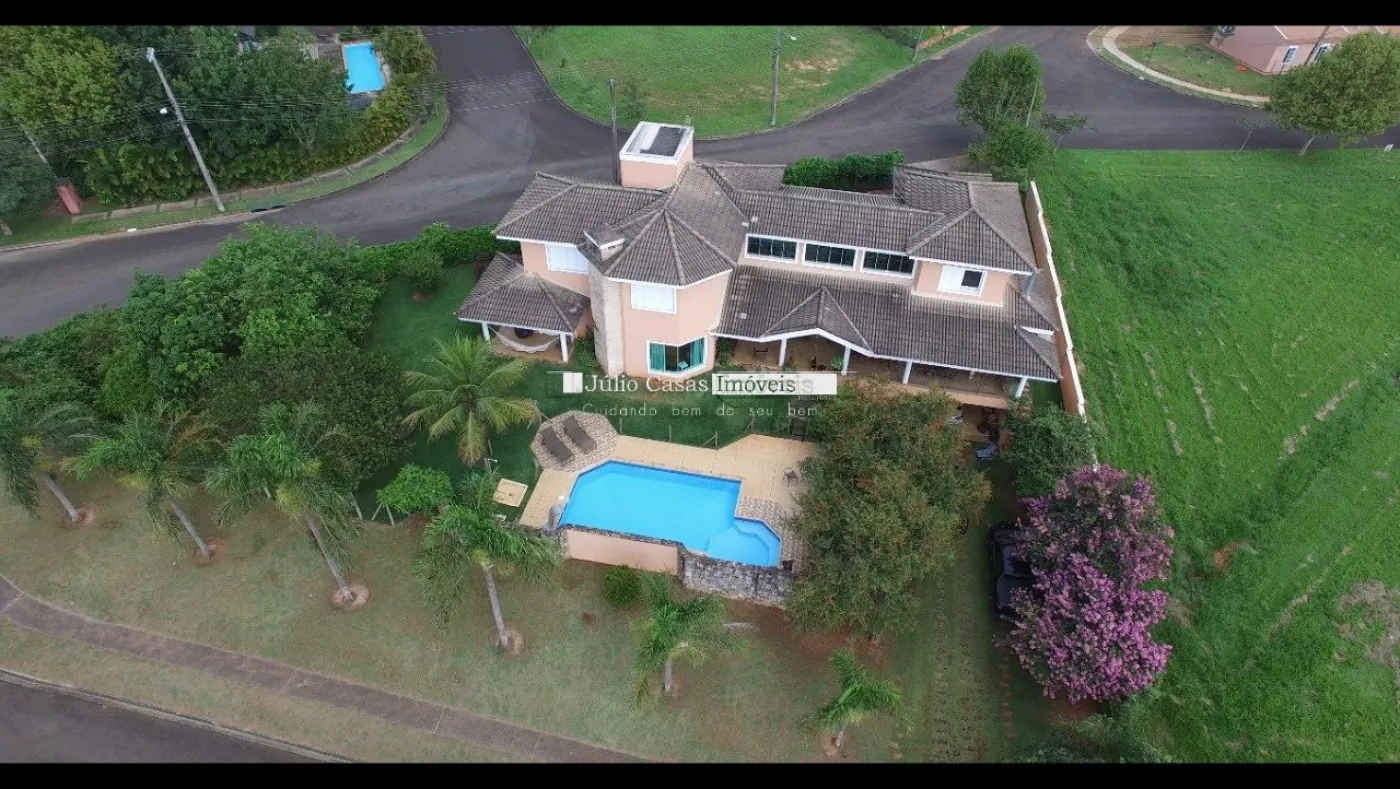 Situada em um condomínio de alto padrão, esta magnífica construção em um terreno de esquina oferece acesso por duas ruas e um excelente aproveitamento do espaço, com paisagismo encantador e uma construção primorosa. Este imóvel de 380 m² é muito bem distribuído e conta com uma ampla varanda, um lindo espaço gourmet com vista para o jardim e a piscina.