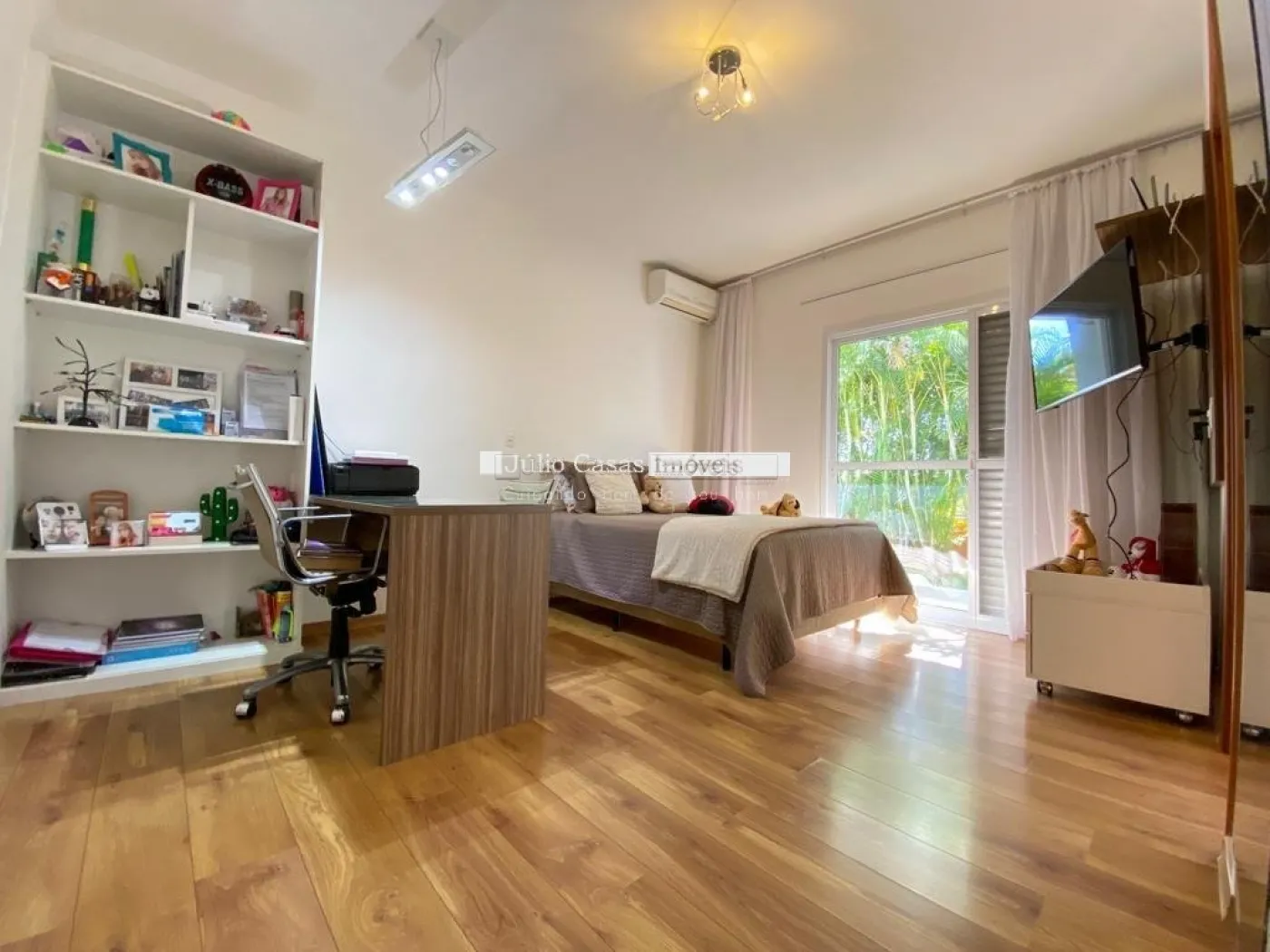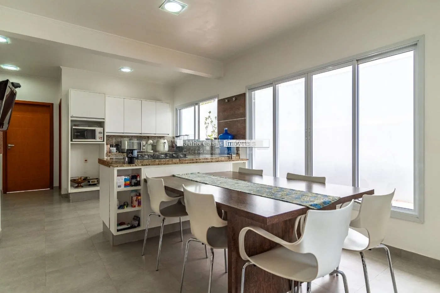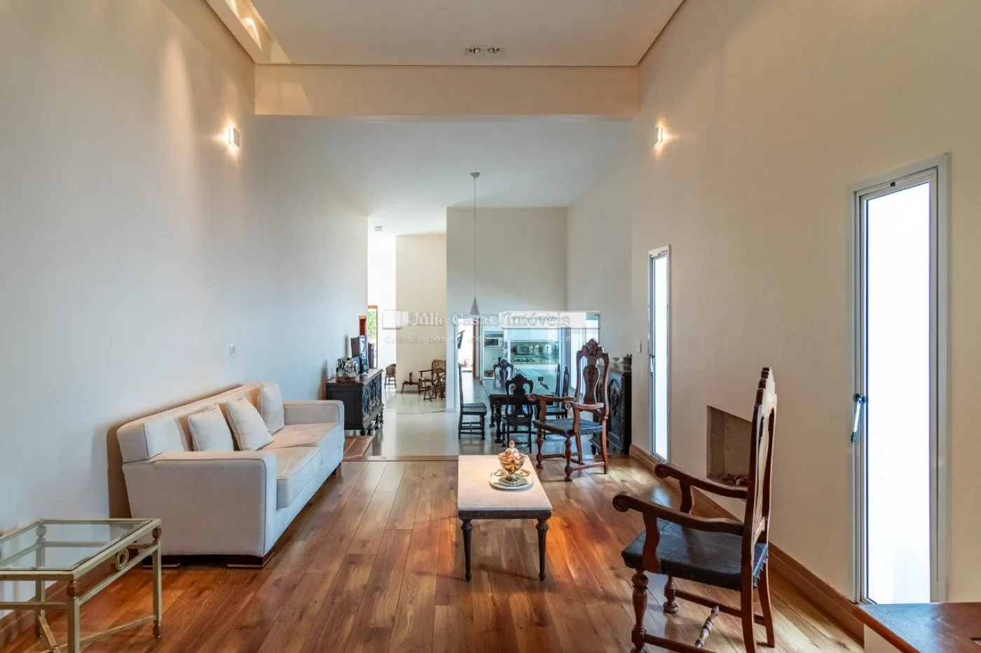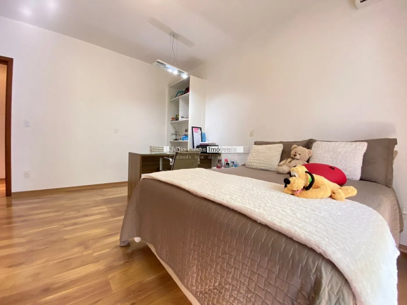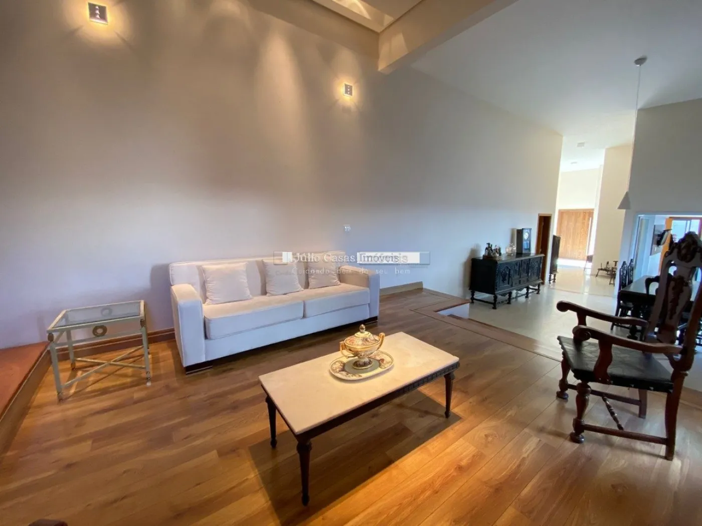Casa com 352,64 m² de área construída em um terreno de 1.000 m², oferecendo um espaço generoso e confortável. O imóvel possui uma sala com pé direito alto e três ambientes integrados: sala de jantar, sala de estar com lareira e sala de TV. O hall de entrada é elegante e acolhedor, complementado por um lavabo. São três suítes, incluindo uma suíte máster com closet e hidromassagem.