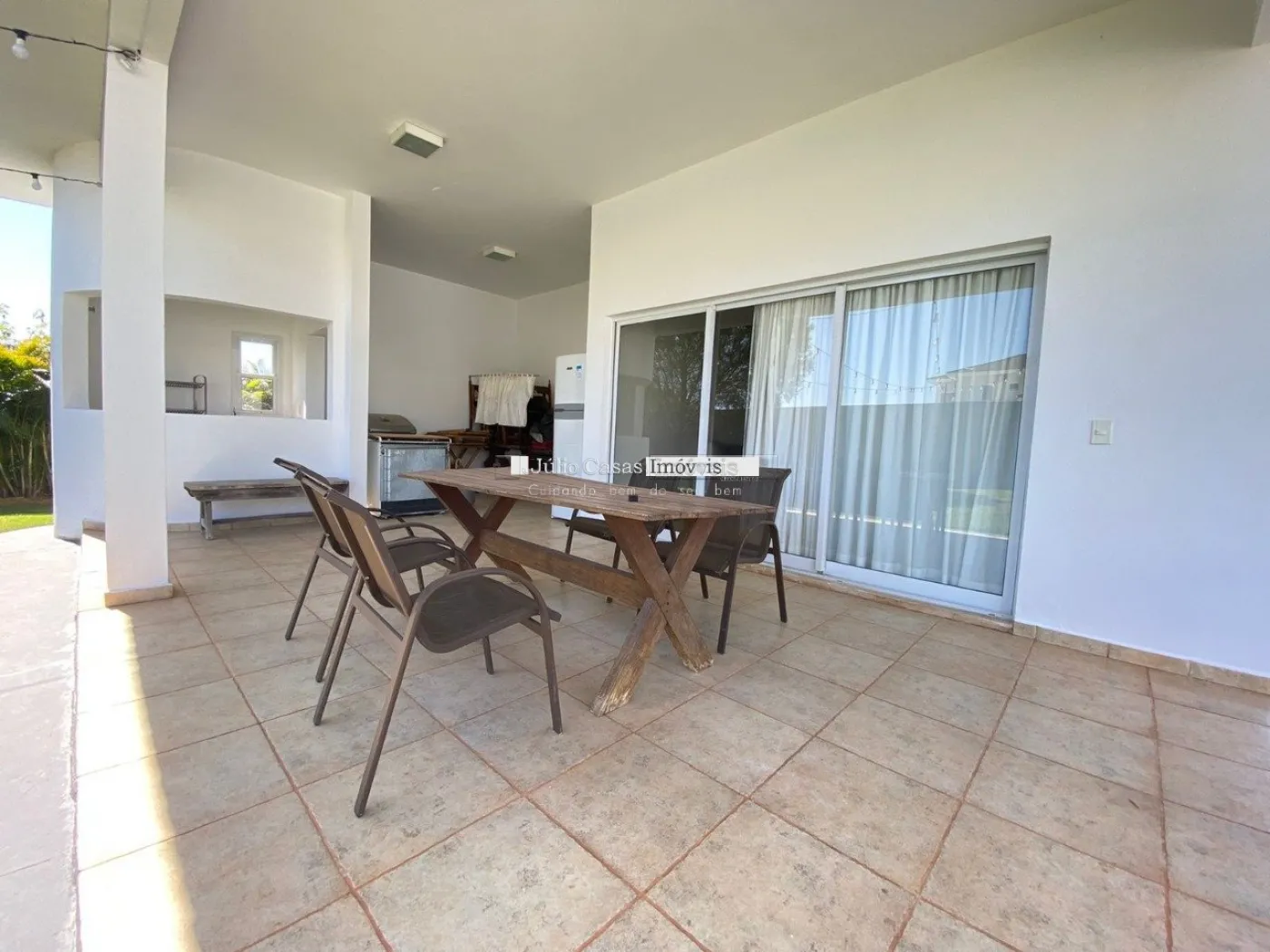 O amplo quintal possui dois acessos independentes e uma área gourmet, perfeita para receber amigos e familiares. A casa conta com seis vagas de garagem, sendo duas cobertas. O imóvel destaca-se pela excelente iluminação e ventilação natural, além de estar preparado para aquecimento solar.