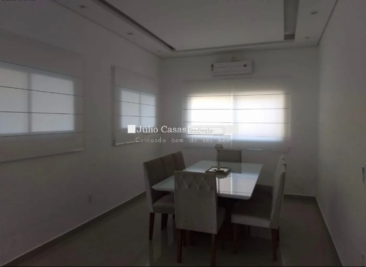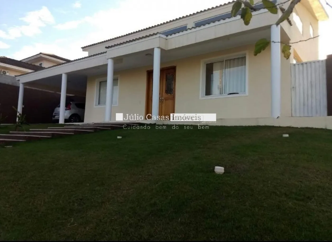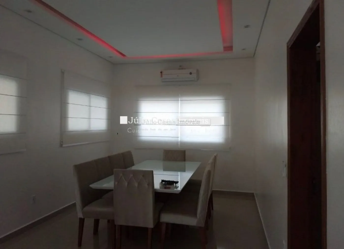 Esta casa destaca-se por sua excelente localização dentro do condomínio e pelo design sofisticado. A sala possui pé direito alto, criando uma sensação de amplitude e elegância. O piso em porcelanato de alta qualidade, presente também na sala de jantar e na sala de TV, proporciona um acabamento moderno e durável.